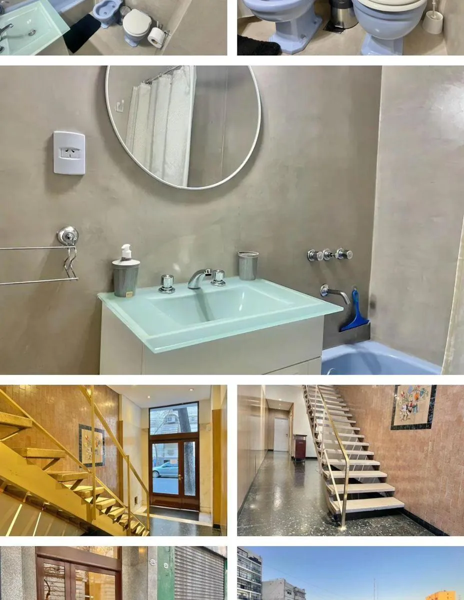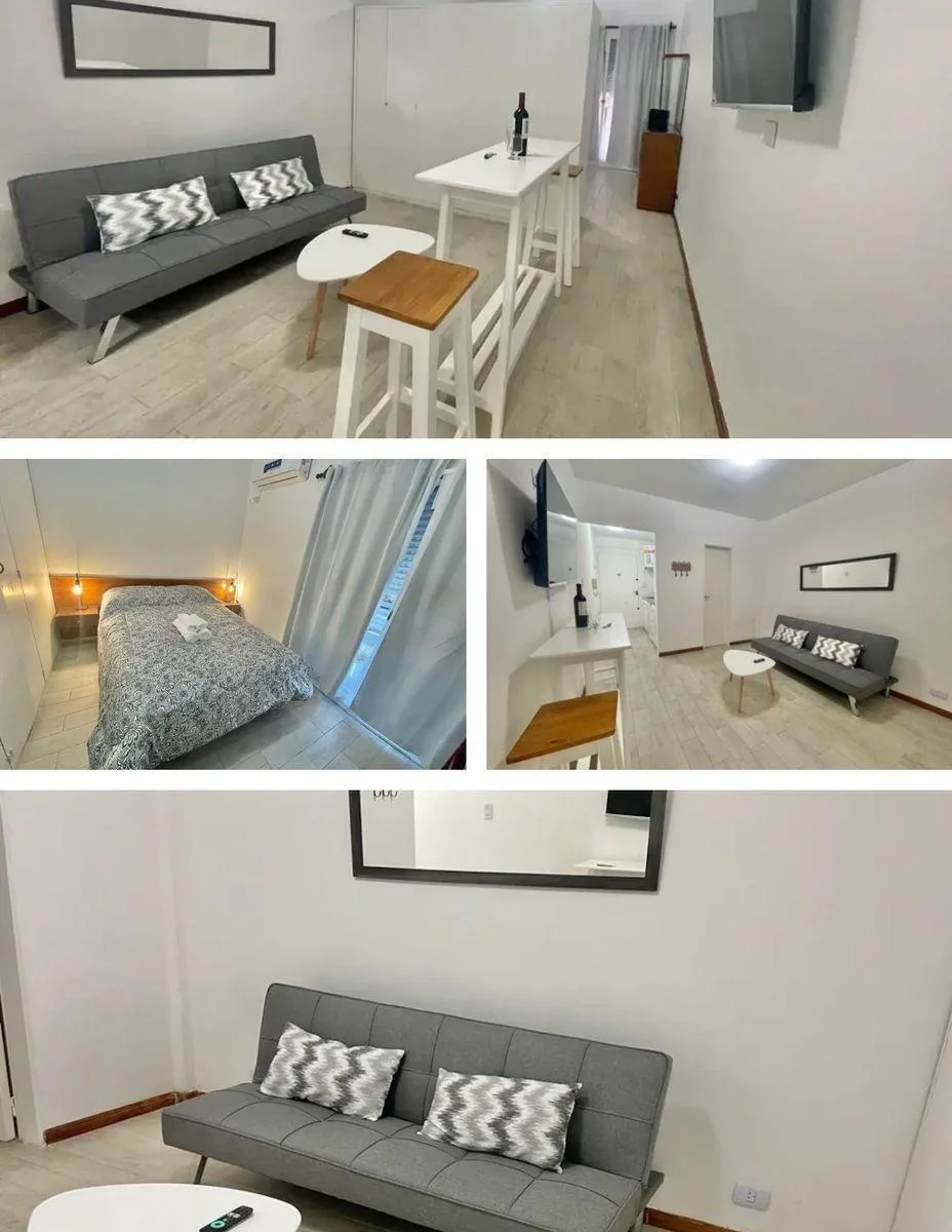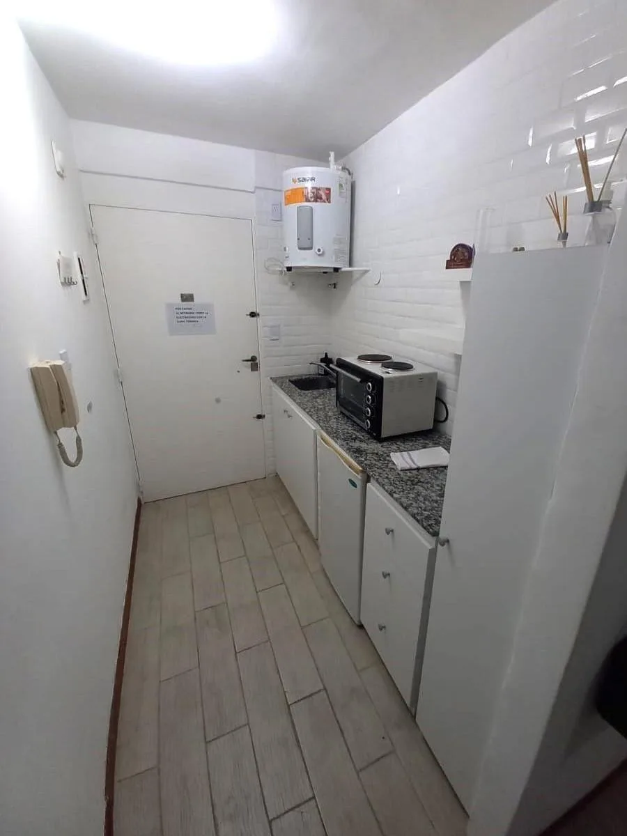 Kitnet mobiliada com 1 ambiente, localizada no 9º andar, de fundos. Em prédio de 1968, com 28,21 m² totais. Inclui cozinha tipo kitchenette equipada, banheiro completo e varanda do tipo francesa. Condomínio (expensas) aprox. $150.000 e ABL aprox. $19.500; eletricidade conforme consumo. Aluguel temporário de $400.000 mensais.