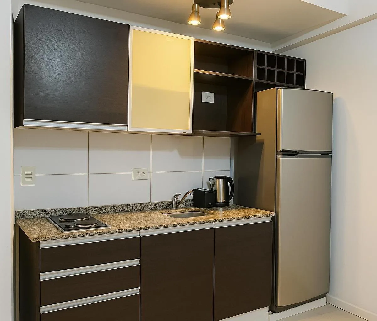 Apartamento para alugar em Balvanera, Buenos Aires, localizado entre as ruas Junín e Uriburu. Conta com sala e área de jantar, 1 banheiro completo e cozinha completa. Superfície total de 28,05 m². O prédio tem piscina descoberta. Aluguel de $450.000 e condomínio de $160.000.