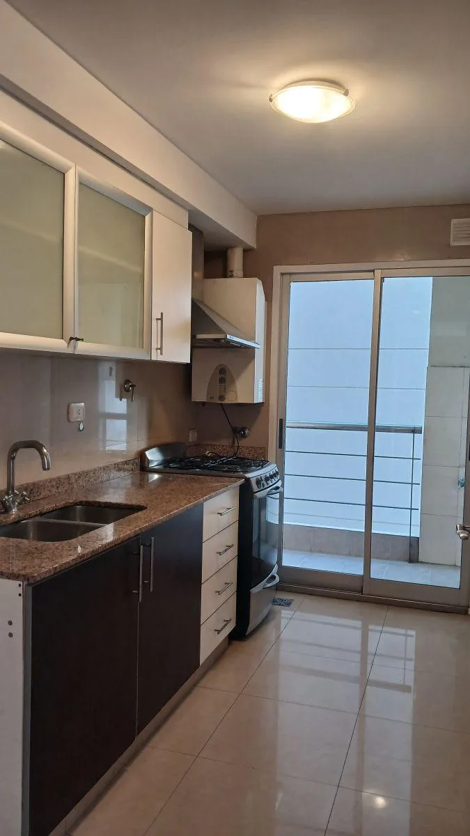 Apartamento de 2 ambientes com vaga de garagem fixa coberta, no 1º subsolo, com acesso por elevador. Possui cozinha a gás, aquecedor (calefón), 2 ar-condicionados frio-quente e armários com espelhos. O edifício tem piscina com duchas, área de churrasco, salão de festas, academia e segurança 24 horas. O condomínio inclui AySA.
