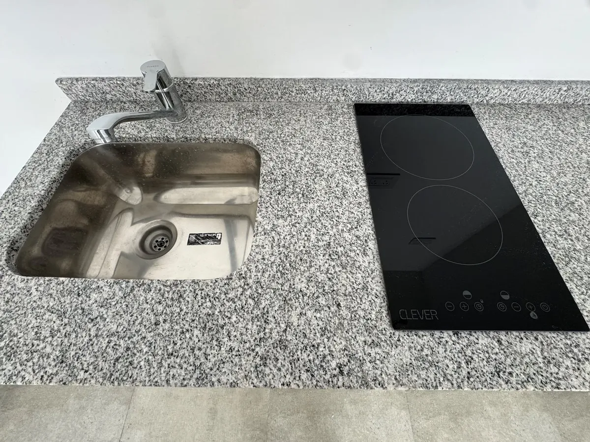 Kitnet de 1 ambiente novo (nunca habitado) com varanda, com armário embutido com interiores completos e pontos de luz instalados. O prédio tem piscina, salão de festas, área de churrasco e lavanderia. Fica na Alsina 2100, entre as ruas Rincón e Pasco, a 1 quadra do Shopping Spinetto e a 2 quadras da Av. Rivadavia e da Av. Belgrano; linhas de subte A, B e H passam na região.