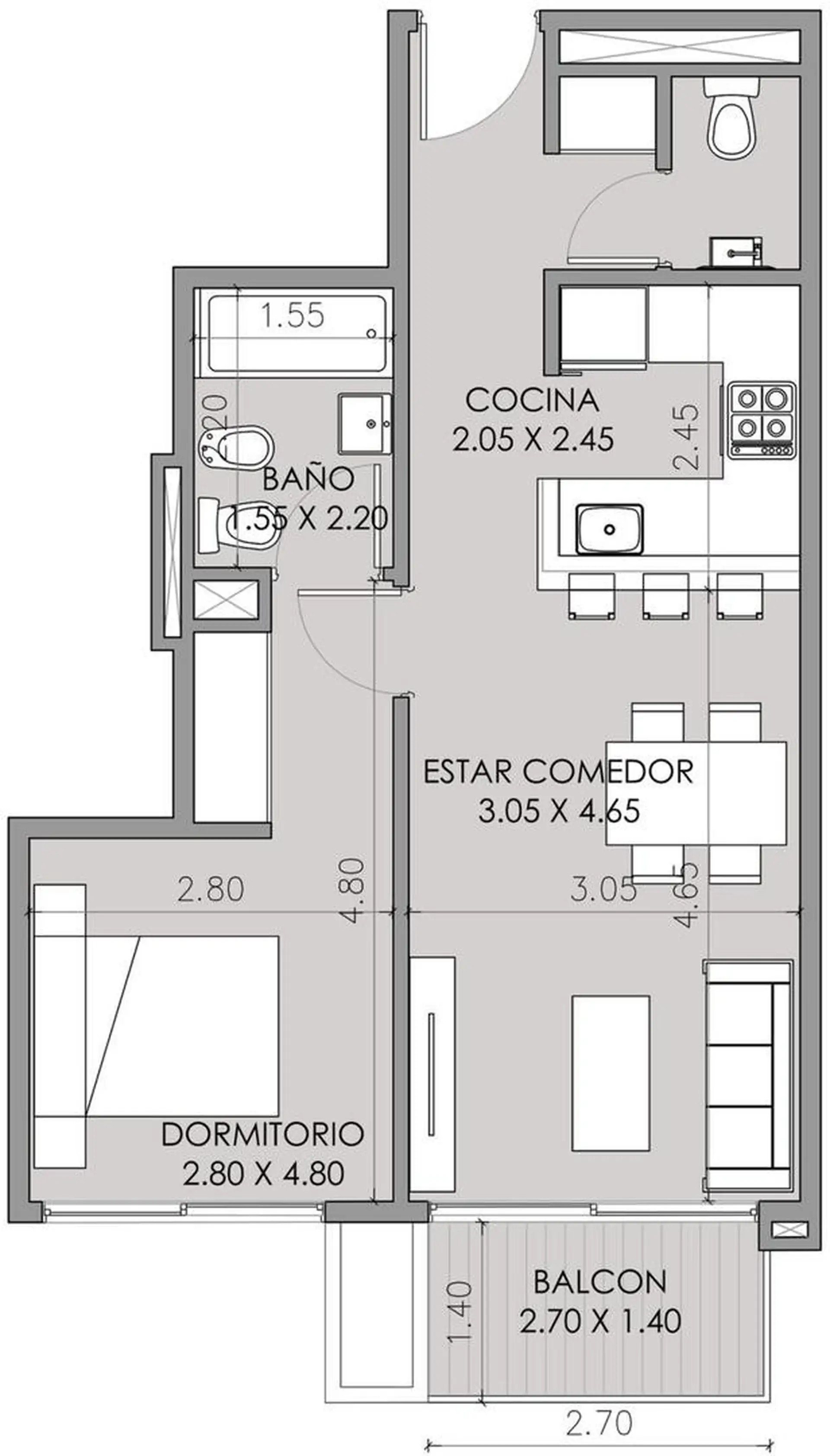 Apartamento de 2 ambientes em Balvanera
