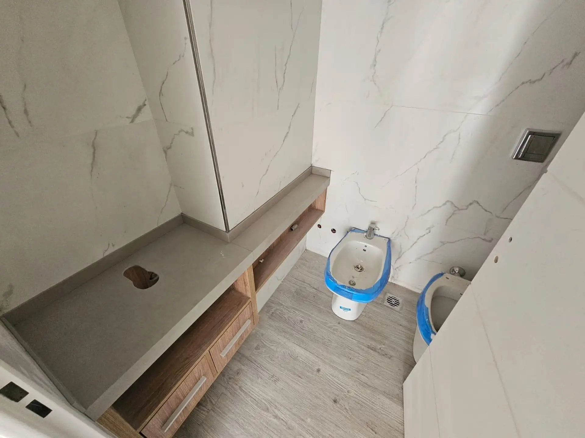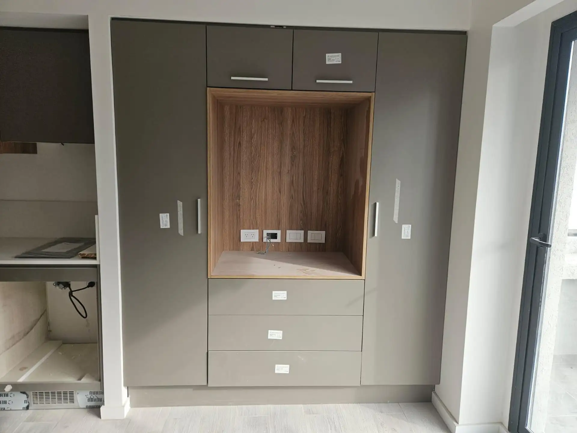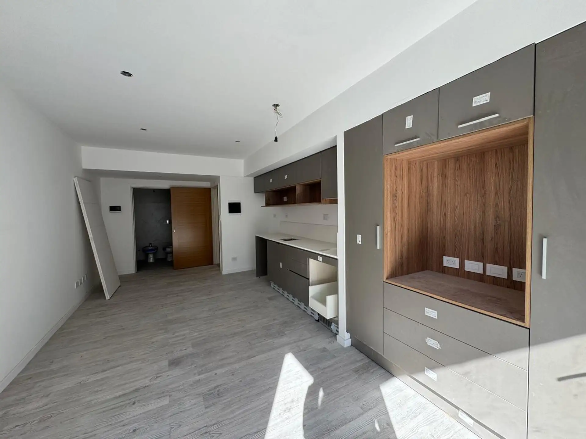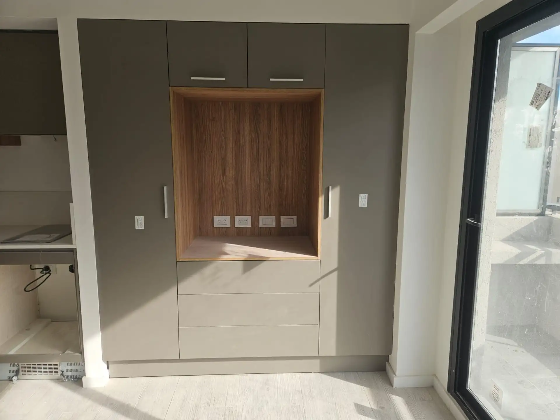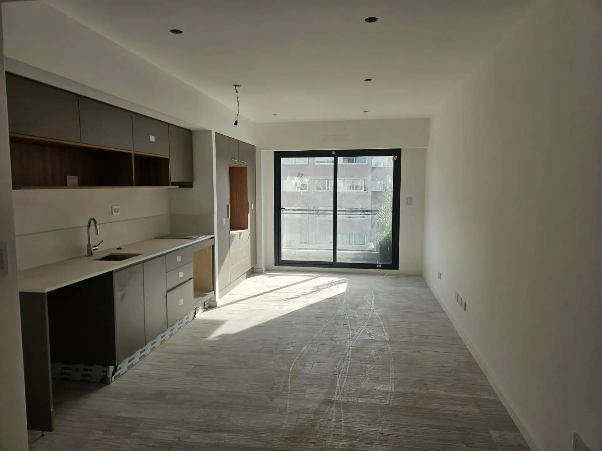 Apartamento de dois ambientes em WeLive Venezuela, em Monserrat, a 1 quadra da Av. Belgrano e a poucas quadras da Plaza del Congreso. Há balcões e terraços privados. Cozinha com bancada em purastone branco nube, pia de aço inox, bancada e armários inferiores e aéreos em melamina texturada e fogão com 4 bocas e forno elétricos. Pisos em estar, sala de jantar e dormitório com piso flutuante similar a madeira; guarda-roupa do piso ao teto com portas de correr e trilhos em alumínio; janelas e portas