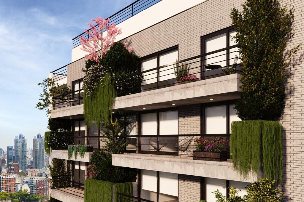 Apartamento de 2 ambientes com 1 quarto, 1 banheiro e 1 lavabo, com medidas aproximadas de 76 a 128 m² e com varanda e terraço. Entrega com ar-condicionado, pisos e aparelhos de cozinha instalados. Há piscina, academia, salão de festas com área de churrasco, microcinema, setor de churrasco ao ar livre, lavanderia e banheiros, sauna e vestiários no condomínio.