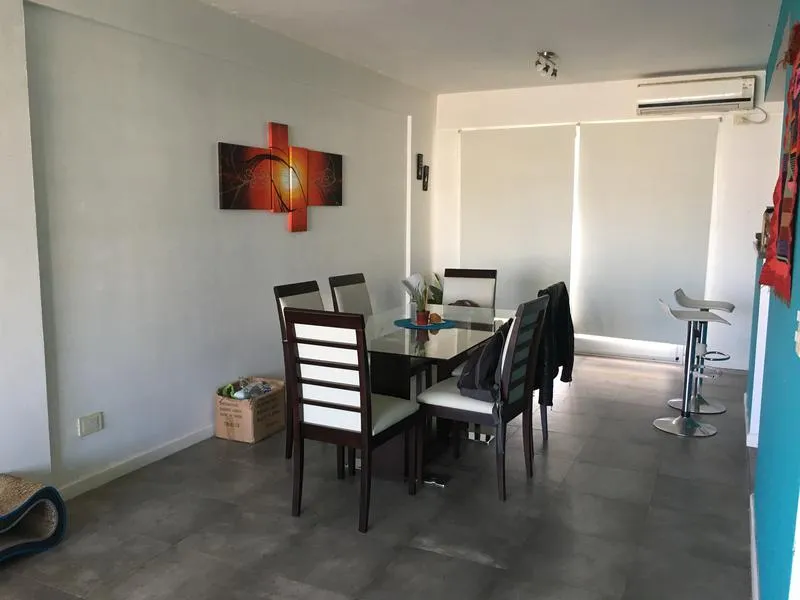 Apartamento de 2 ambientes para aluguel em Barracas, com vaga de garagem coberta. O imóvel tem quarto com armário, banheiro completo e cozinha com desayunador, além de living com varanda de frente e varanda francesa nos fundos. Conta com ar-condicionado frio-calor e funciona por sistema elétrico; sem mobília (as fotos são apenas ilustrativas). O prédio oferece piscina com solarium, salão de festas e lavanderia. Em março, o condomínio do apartamento foi de ARS 173.028 e o condomínio da vaga de ga