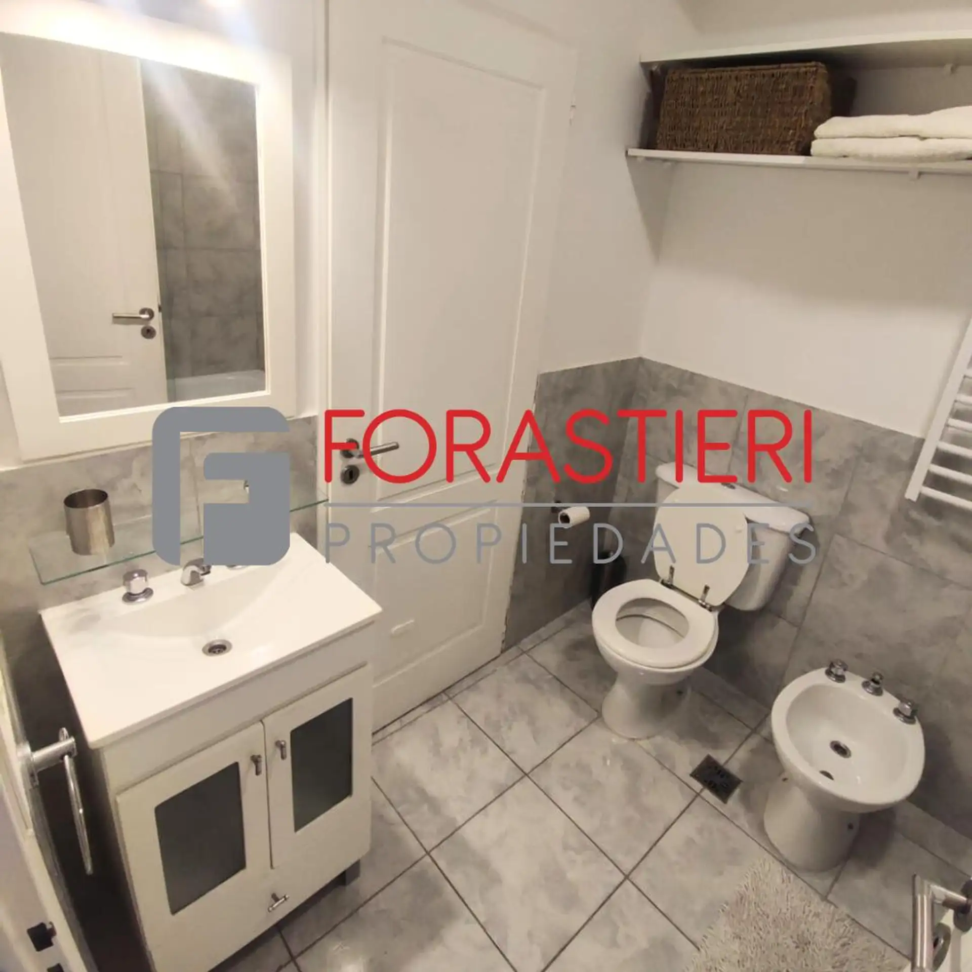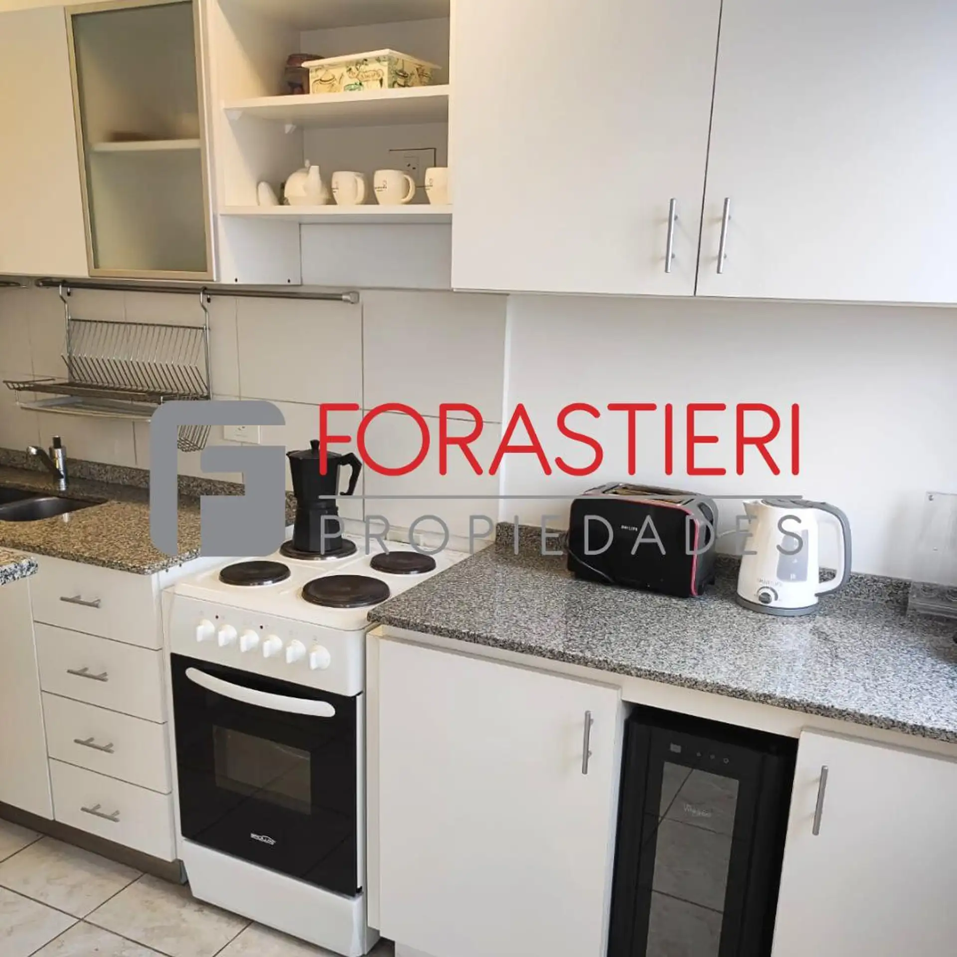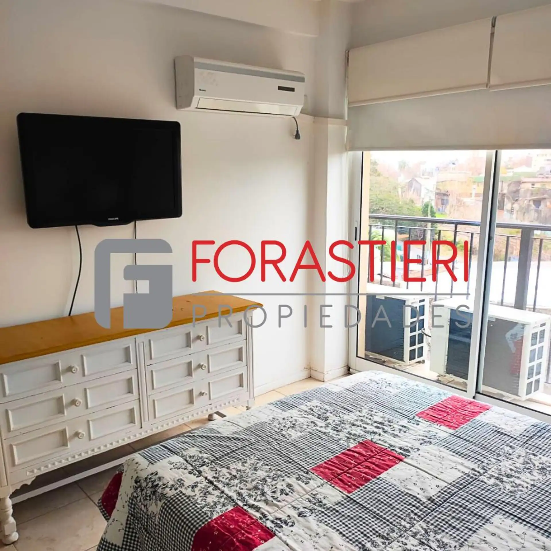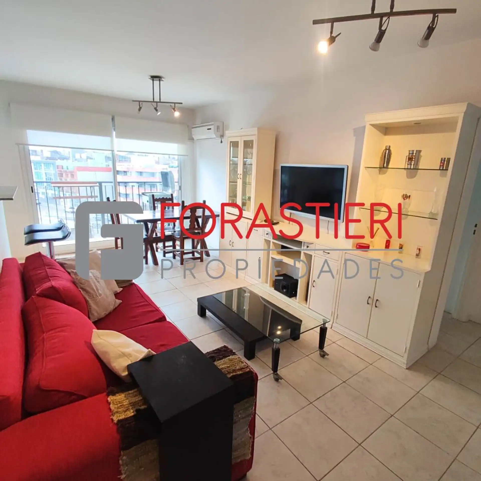 Apartamento de dois ambientes em Beccar, Partido de San Isidro, disponível a partir de junho, em edifício na Av. Centenario. Tem sala integrada com cozinha equipada, dormitório com cama queen, banheiro completo com banheira, varanda com parrilla e área de lavanderia com lavadora. A unidade conta com janelas com cortinas black out, dois ar-condicionados frio/calor, TV em sala e no dormitório, e cozinha com termotanque, geladeira, cafeteira(s), forno elétrico, adega para vinhos, torradeira e liqui