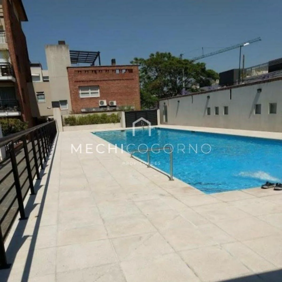 Apartamento de dois ambientes no complexo Beccar Plaza 1, no 1º andar, com vista para Neyer, em rua com entorno arborizado. Conta com living com acesso a varanda com espaço para mesa e cadeiras, cozinha integrada com bancada e equipada com móveis debaixo da pia e armários aéreos, 1 quarto com guarda-roupa e banheiro completo. Possui 2 aparelhos de ar-condicionado (1 em cada ambiente) e caldeira dual para aquecimento e água quente. Inclui vaga de garagem fixa no subsolo, portaria e segurança 24 h