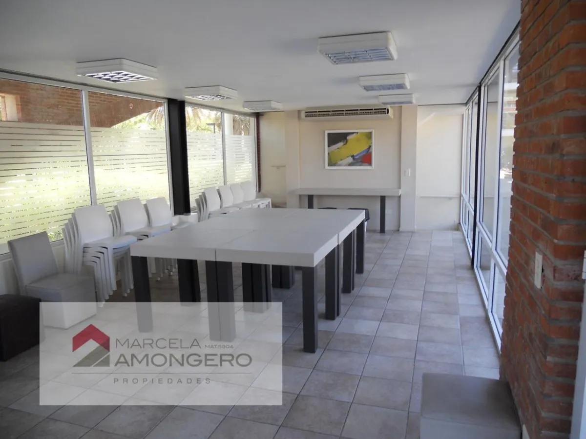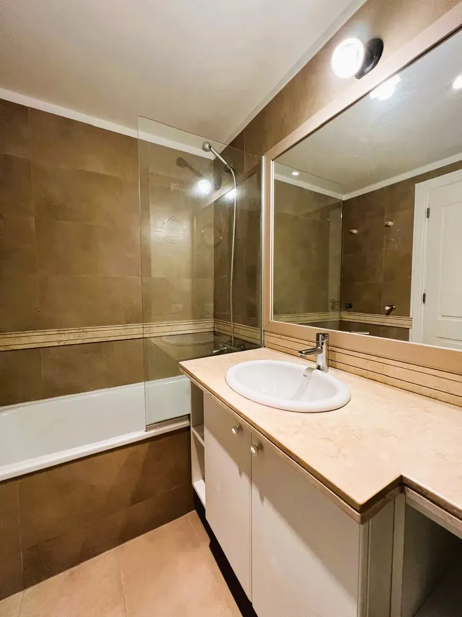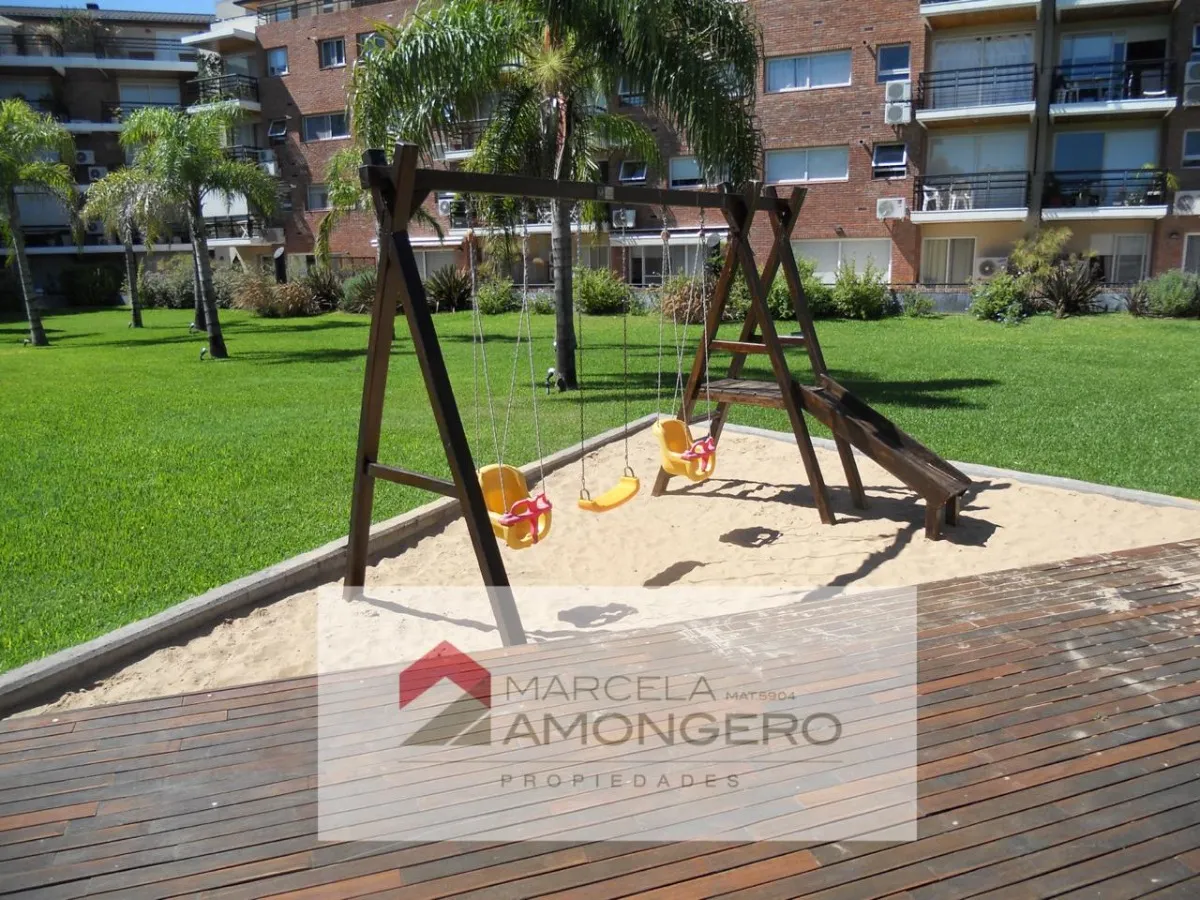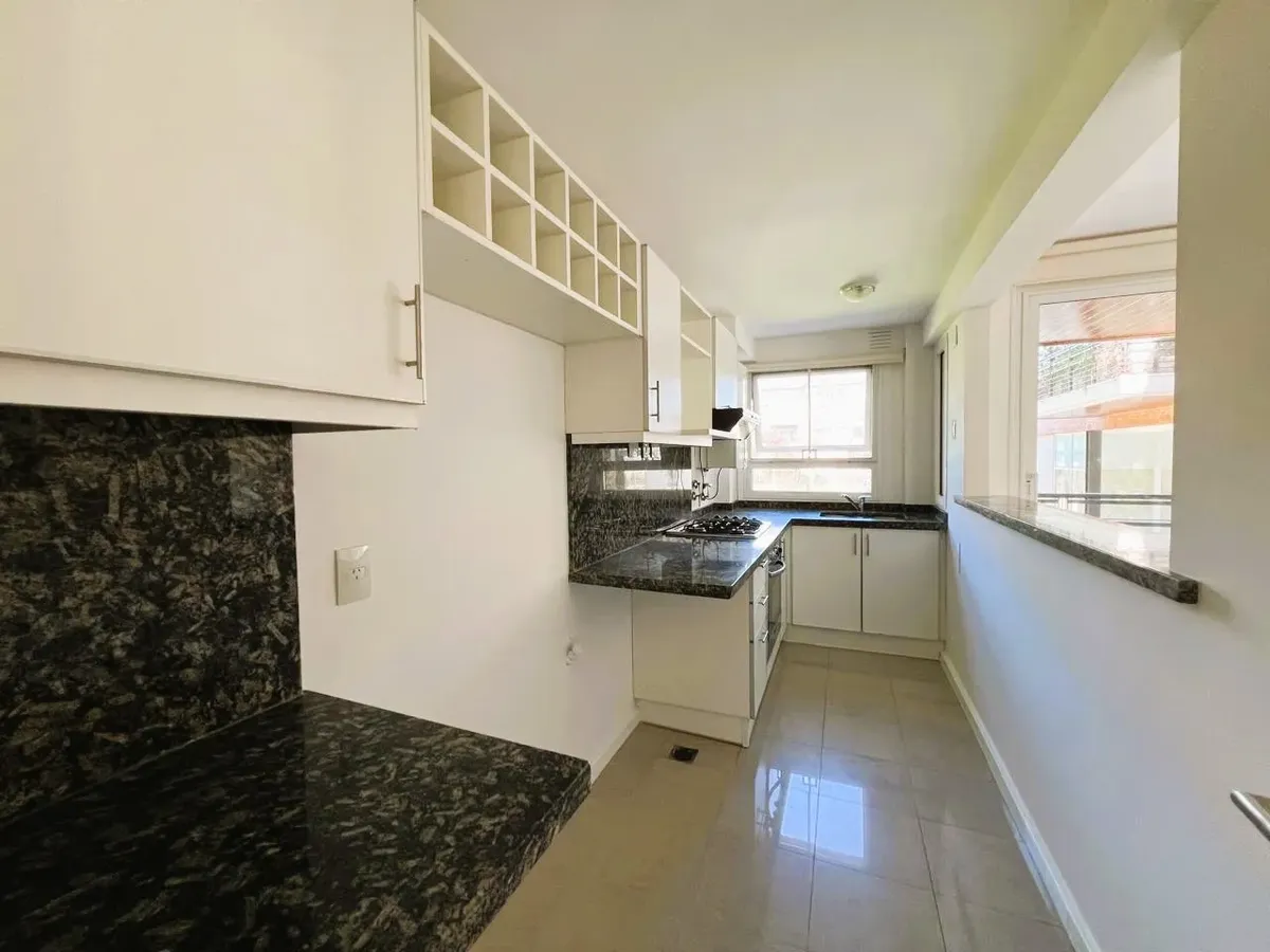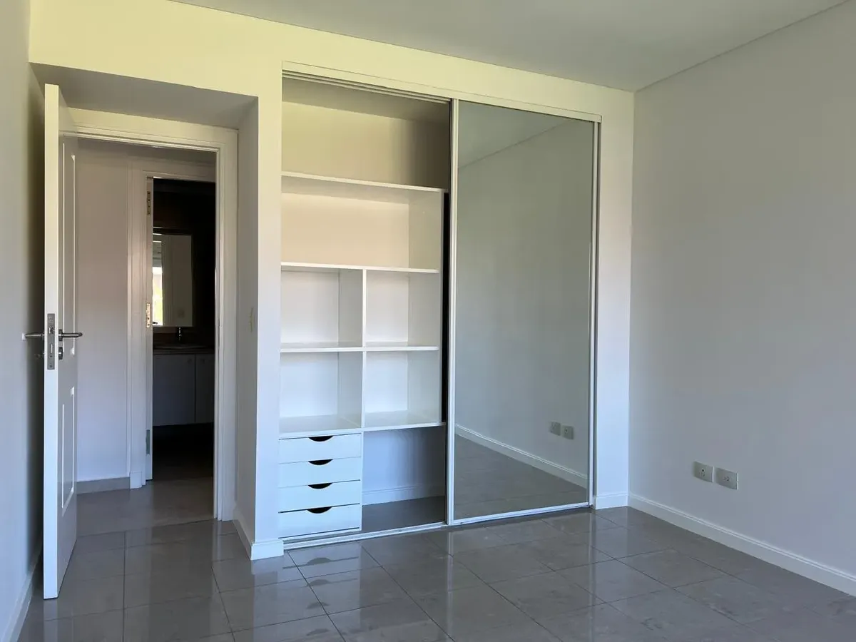 Apartamento de 2 ambientes, 1 quarto, com vista para o jardim central do complexo Beccar Plaza. Living e sala com saída para varanda (2,60 x 1,60 m) e cozinha semi-integrada com bancada, com móveis sob e sobre a pia e espaço para lavadora. O quarto tem armário completo com portas espelhadas e interiores novos; o banheiro completo inclui box e armário para roupa branca. O imóvel é alugado com 1 vaga de garagem coberta no primeiro subsolo, incluída no preço, e conta com 2 aparelhos de ar-condicion