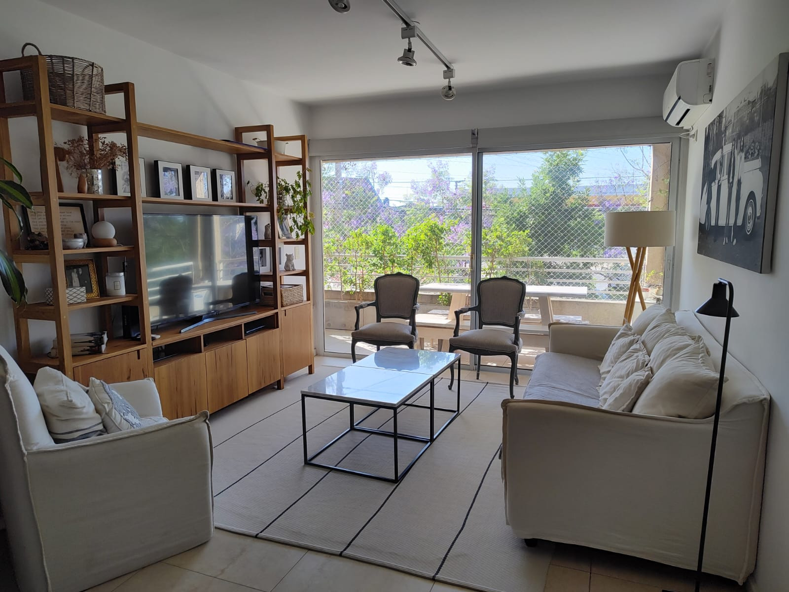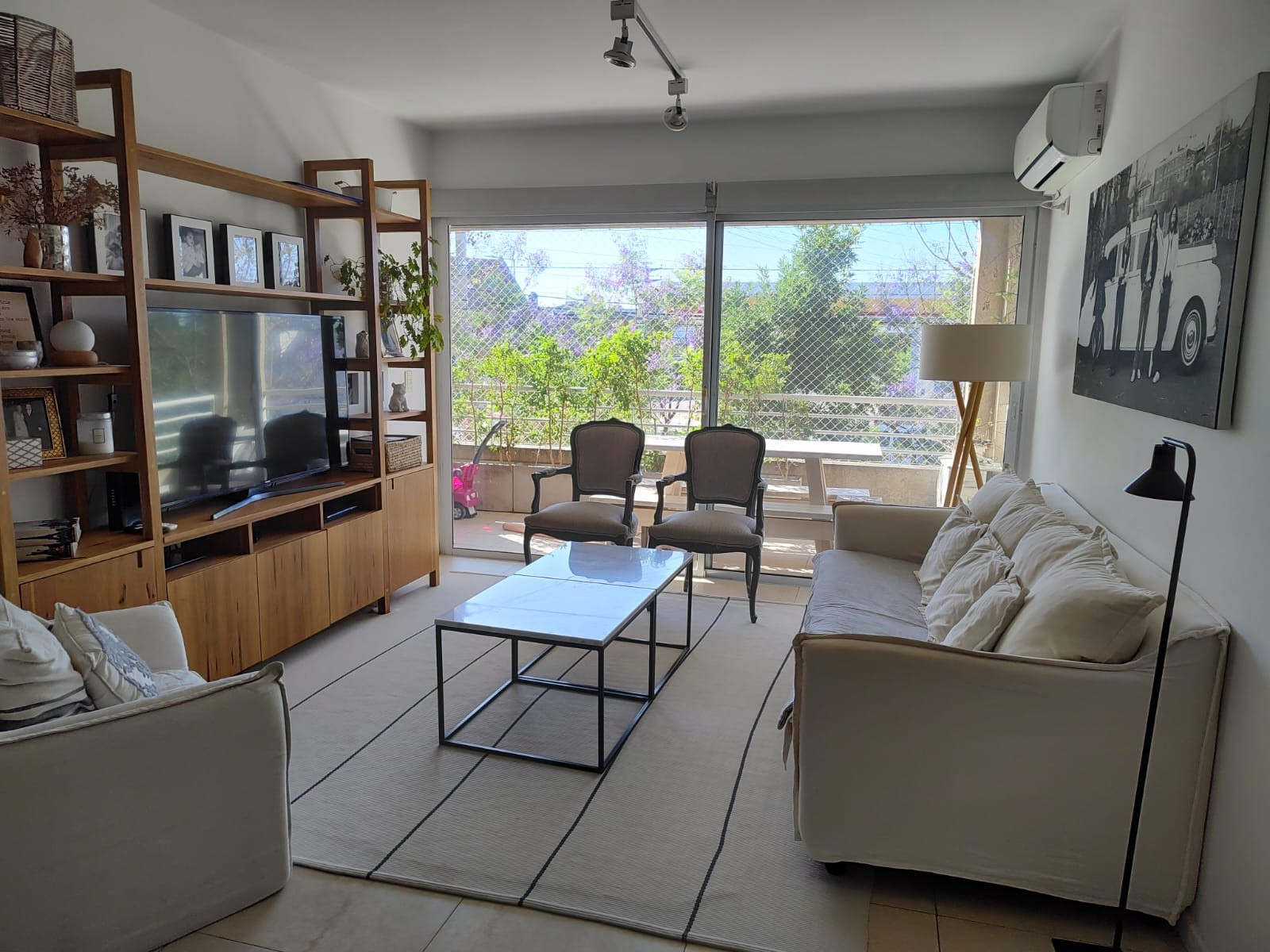 Apartamento de 3 ambientes em Beccar Alto, com varanda de frente para a rua e área de churrasco. Possui living e sala de jantar com acesso à varanda, hall de distribuição, cozinha com móveis sob e sobre a bancada, lavadero separado, 2 banheiros completos e 2 dormitórios. O dormitório principal é em suíte com closet; o segundo dormitório tem mais espaço. Inclui ar-condicionado, caldeira dual, aquecimento por piso radiante, vaga de garagem coberta dupla e depósito (baulera), além de segurança 24 h