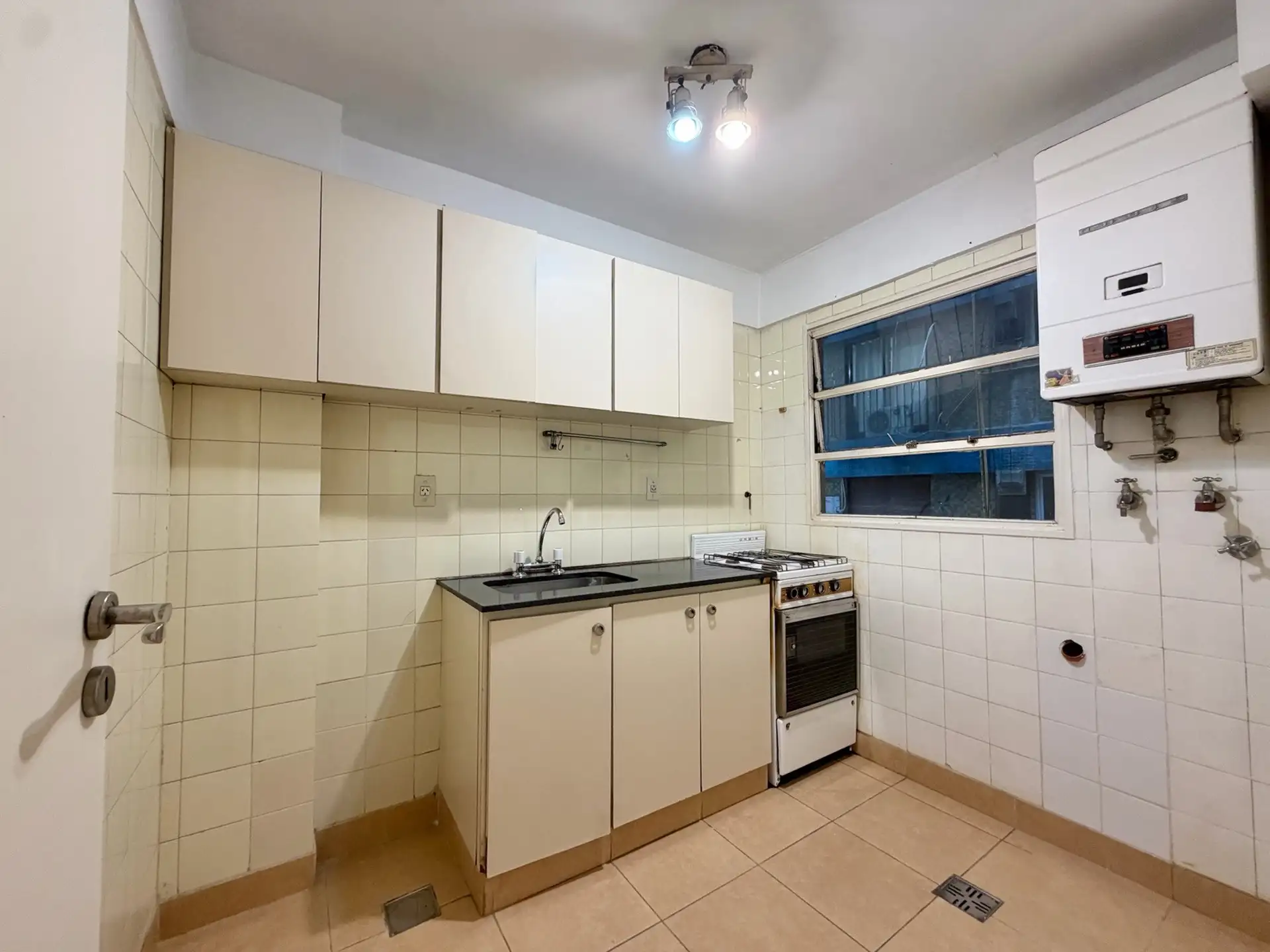 Apartamento de 2 ambientes em Belgrano, com 1 quarto. Unidade sem mobília, entregue recém-pintada. Sala de estar e jantar, cozinha com conexão para máquina de lavar e banheiro completo. Quarto com armário embutido. O condomínio inclui AYSA; informações de expensas no anúncio.