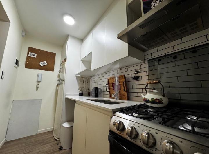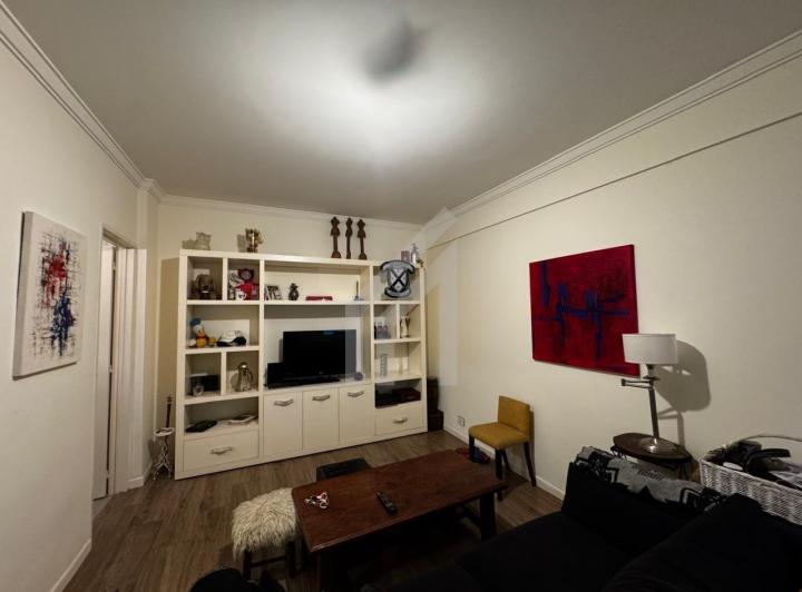 Apartamento de dois ambientes em Belgrano, com 40 m² totais, unidade reformada. Fica em andar baixo, com janelas no living e no dormitório voltados para um vão interno. Possui ar-condicionado inverter frio e quente no living-comedor, cozinha a gás e aquecedor de água (calefón), além de espaço para máquina de lavar roupa. O dormitório tem armário embutido de ponta a ponta e o banheiro tem banheira. Condomínio de $120.000 e a unidade é apta para uso profissional.