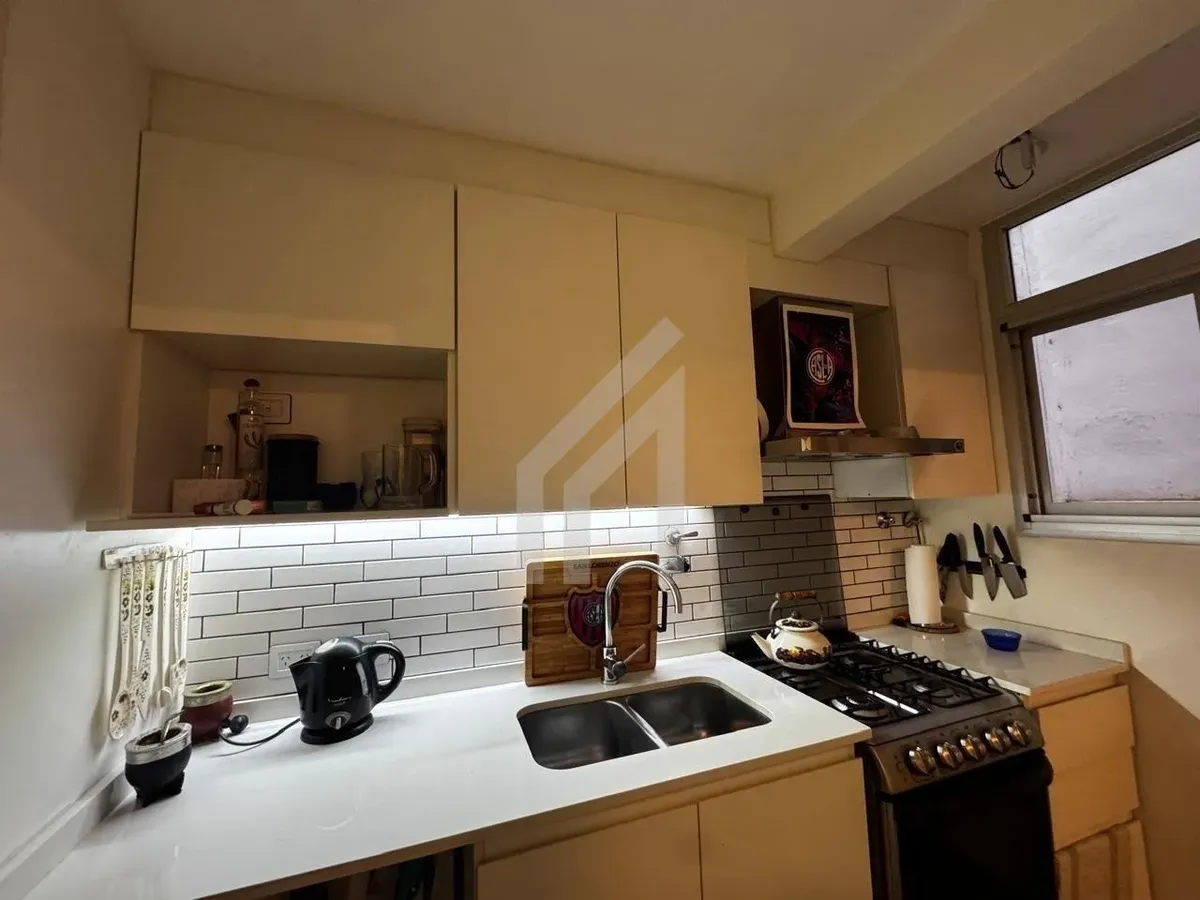 Apartamento de dois ambientes em Belgrano, Av. Cramer, com 40 m² totais, totalmente reformado. Fica no piso baixo e é interno, com janelas no living e no dormitório, ambos com saída para o pátio interno do prédio e iluminação desse espaço. Tem ar-condicionado inverter frio/calor no living, cozinha a gás e calefone; há espaço para máquina de lavar. O dormitório conta com armário com interiores completos de parede a parede e o banheiro tem banheira. A unidade permite uso profissional e tem condomí