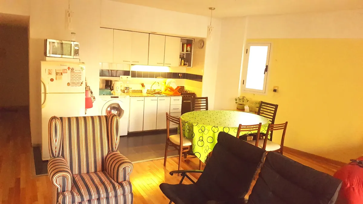 Kitnet de 1 ambiente em Belgrano, com grande varanda. Possui área de estar/refeição com saída direta para a varanda. Cozinha integrada com fogão a gás, fogão e conexão para lavadora, além de amplo armário de parede. Fica a 3 quadras de Av. Cabildo e Juramento (Subte D) e a 2 quadras de Barrancas de Belgrano (Tren Mitre), na proximidade de Av. del Libertador. Solicita-se certificação de firmas, fiança de aluguel, aluguel adiantado e depósito, sem comissão e sem outros custos de entrada.