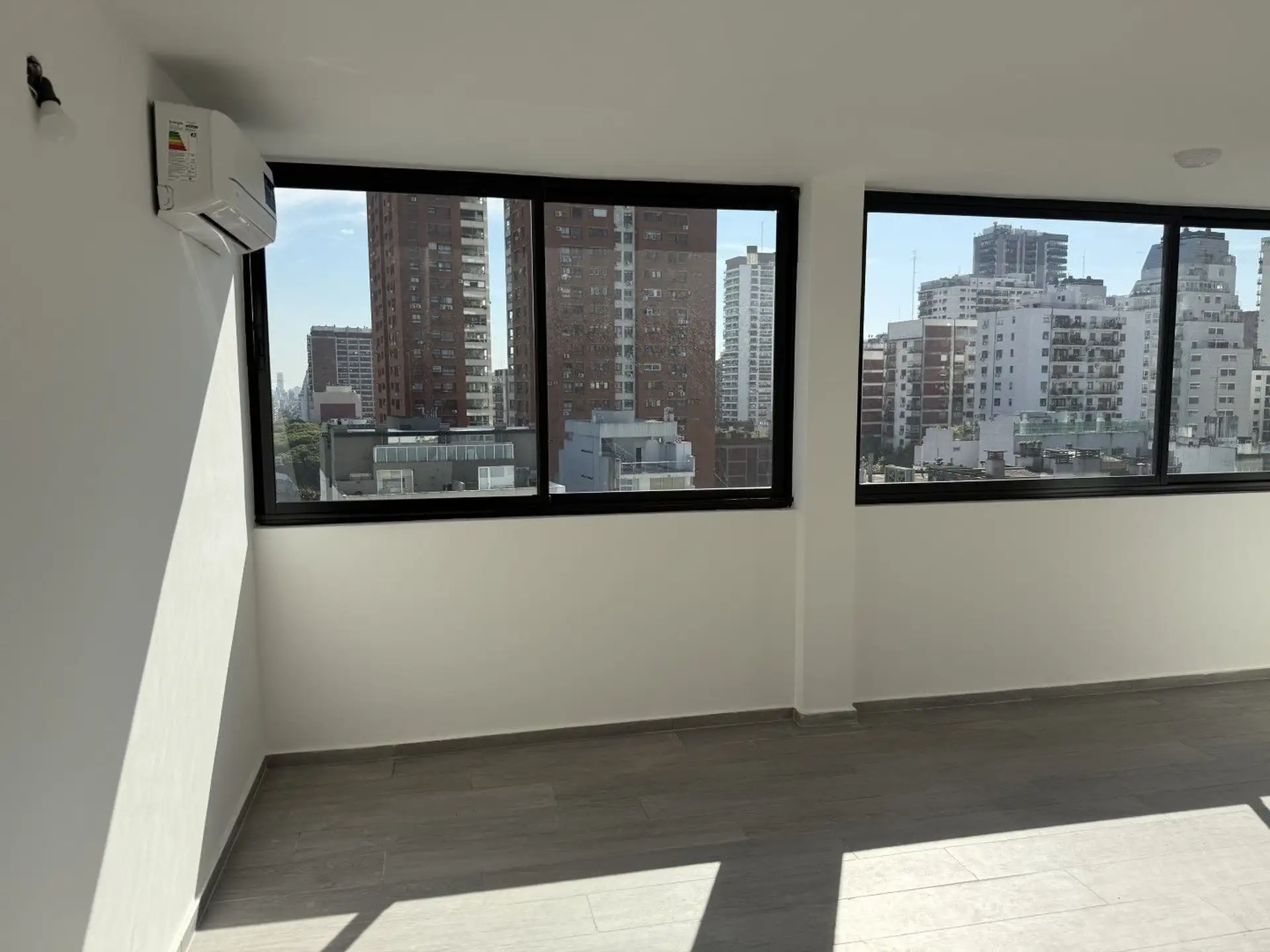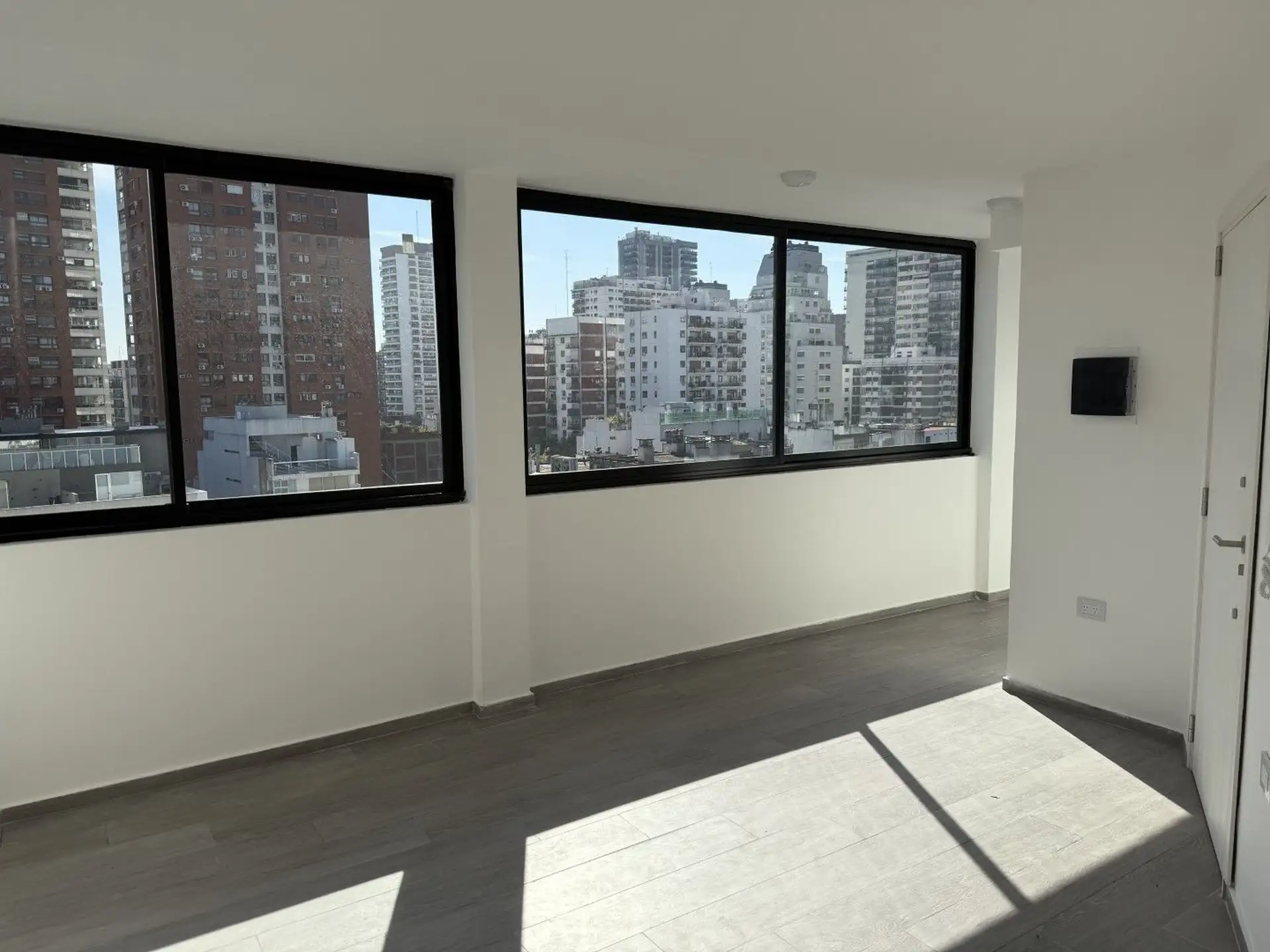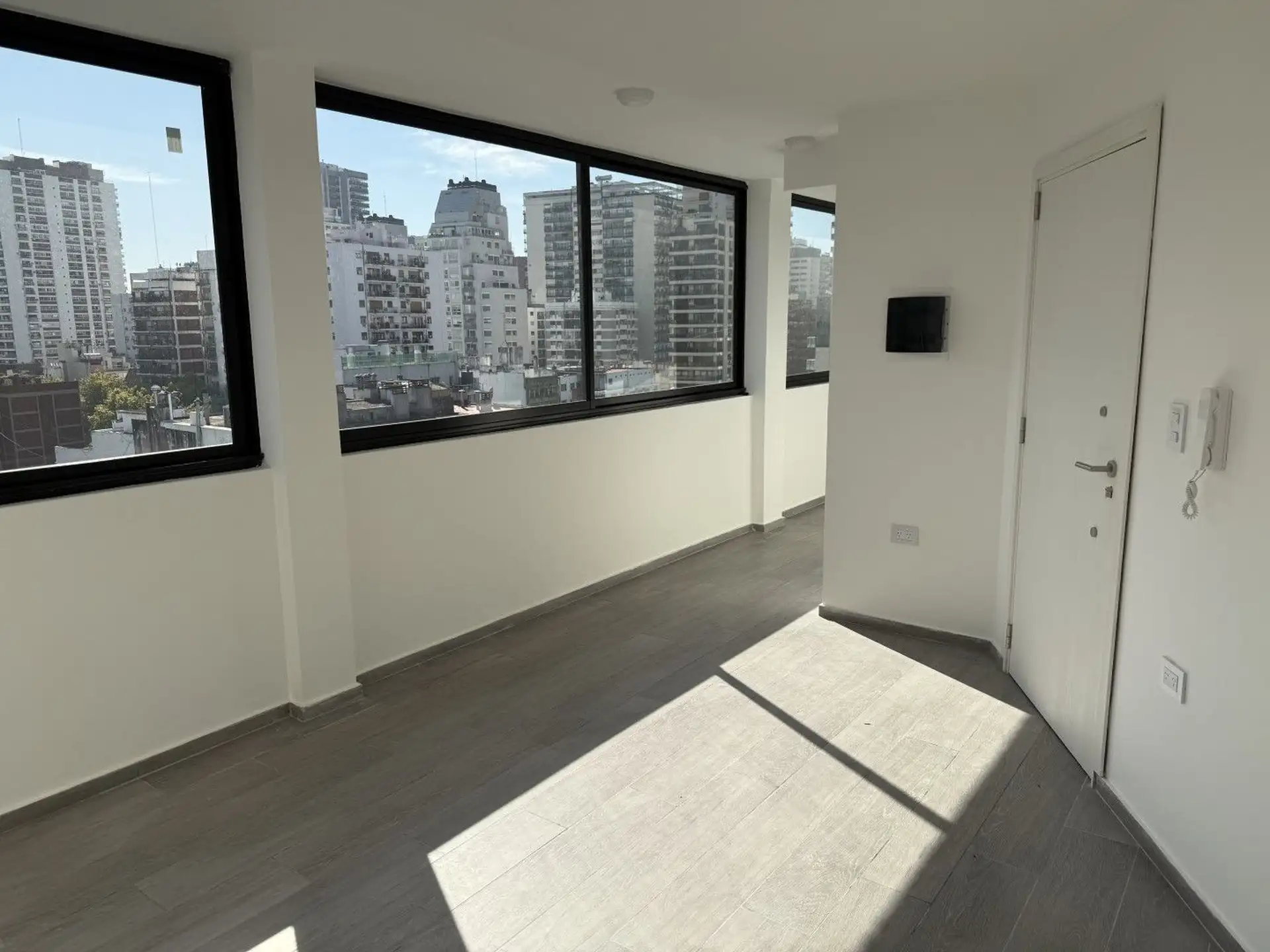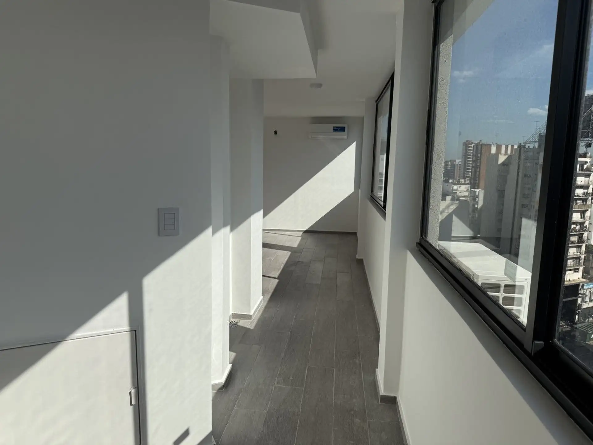 Apartamento em Belgrano, novo (nunca habitado), no 13º andar, de frente para a rua, com palier privado. Área aberta para o ambiente principal, banheiro e um segundo ambiente com conexões e pontos de esgoto que permitem a instalação de uma kitchenette. O aluguel inclui condomínio, ABL e AYSA; o prédio tem totem com vigilância 24 h e fica a meio quarteirão da Av. Cabildo, perto da Subte D, estação José Hernández, e do Metrobus, e dispõe de ar-condicionado split frio/calor.