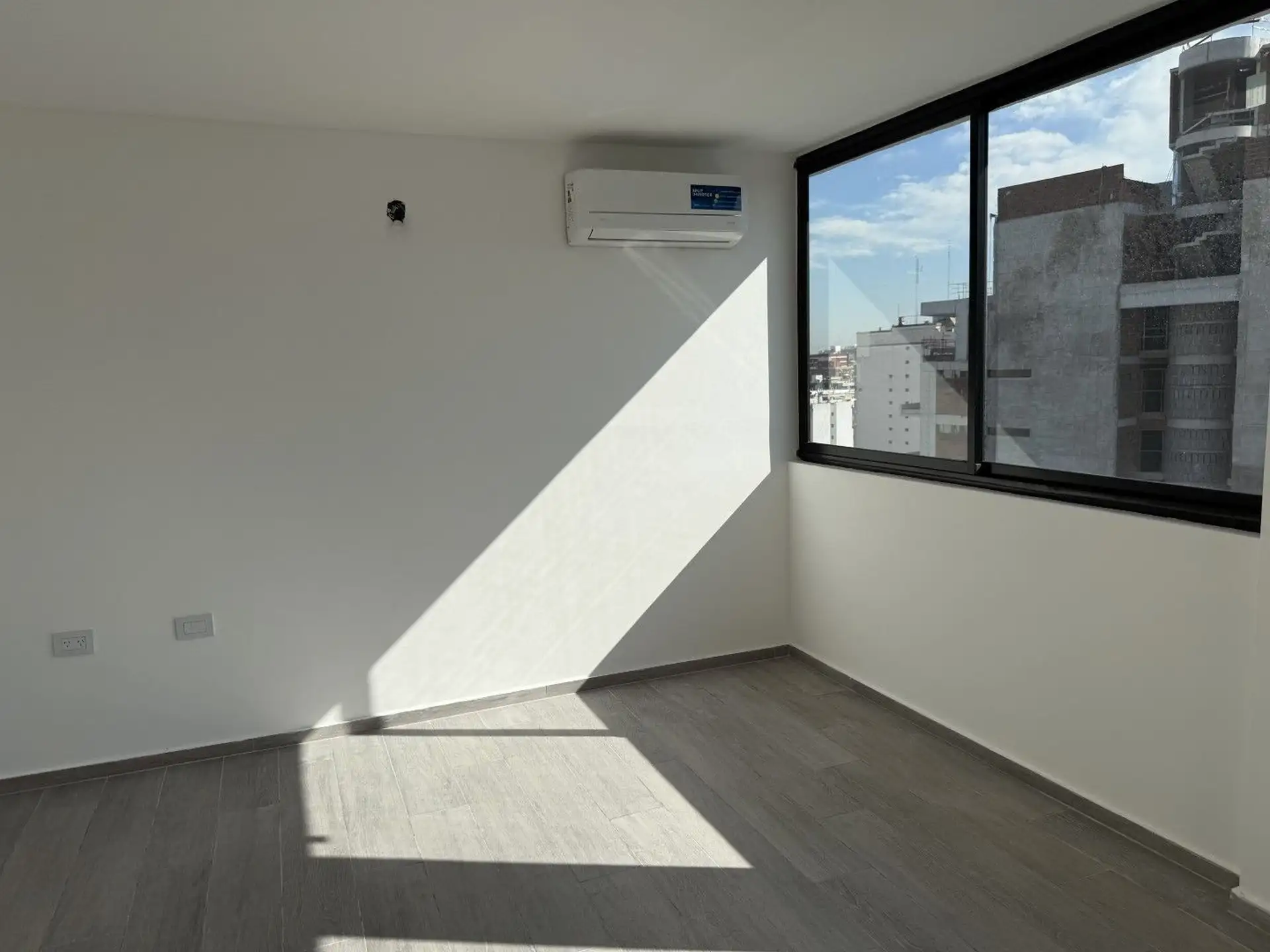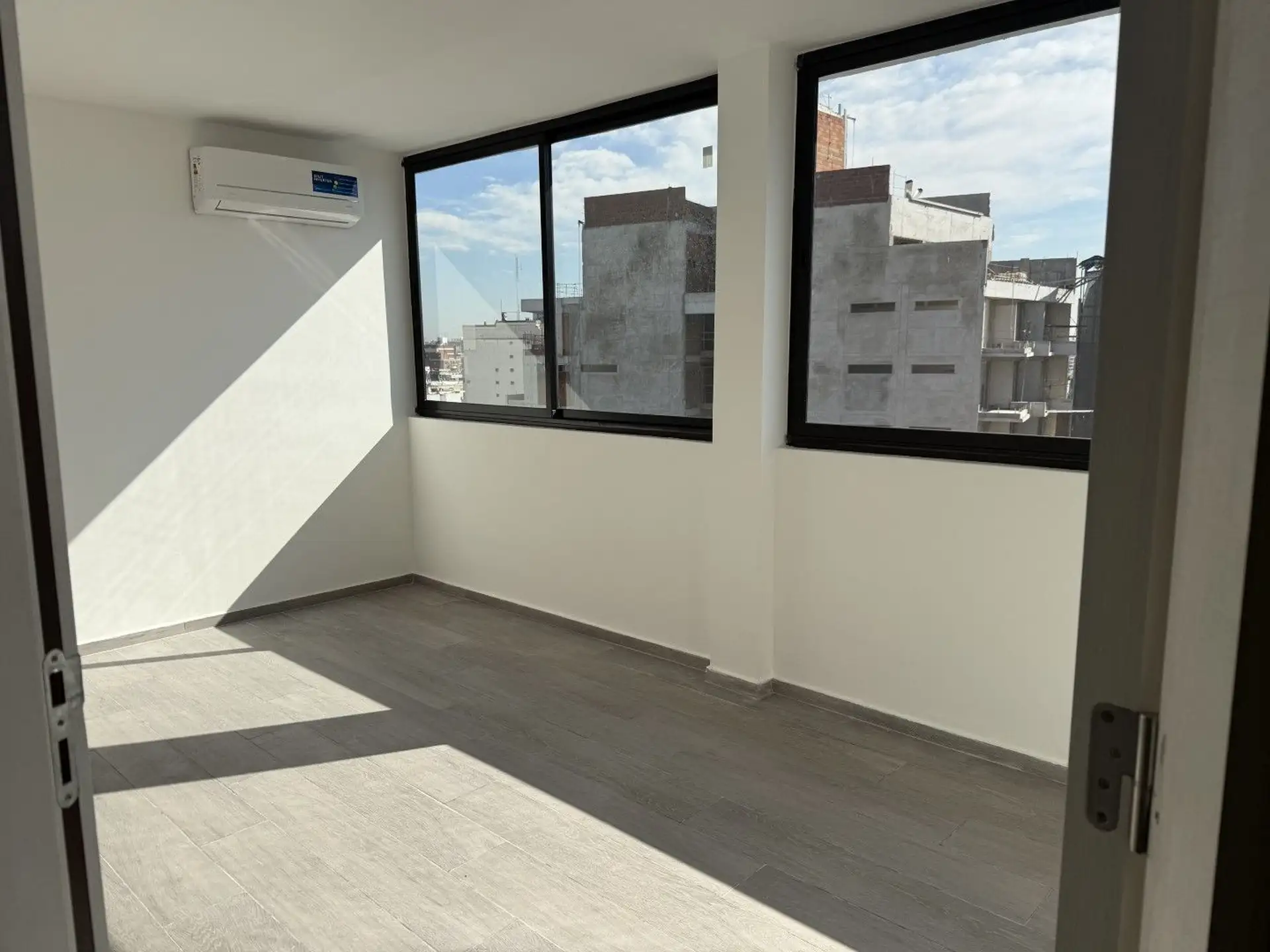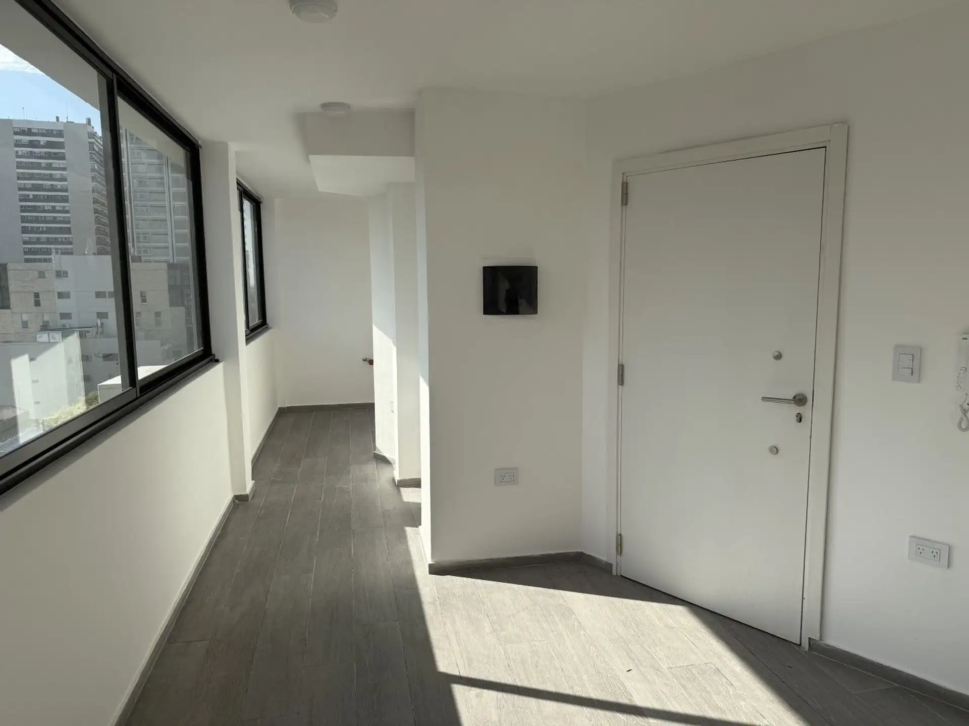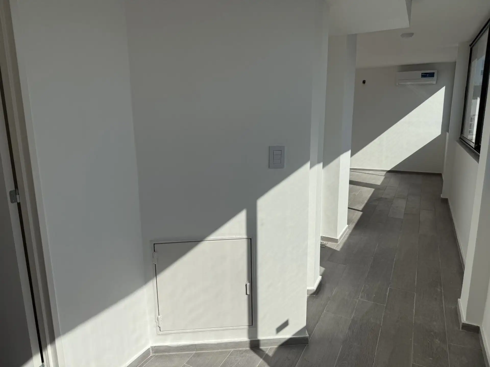 Apartamento em Belgrano, novo (nunca habitado), no 13º andar, de frente para a rua, com palier privado. Área aberta para o ambiente principal, banheiro e um segundo ambiente com conexões e pontos de esgoto que permitem a instalação de uma kitchenette. O aluguel inclui condomínio, ABL e AYSA; o prédio tem totem com vigilância 24 h e fica a meio quarteirão da Av. Cabildo, perto da Subte D, estação José Hernández, e do Metrobus, e dispõe de ar-condicionado split frio/calor.