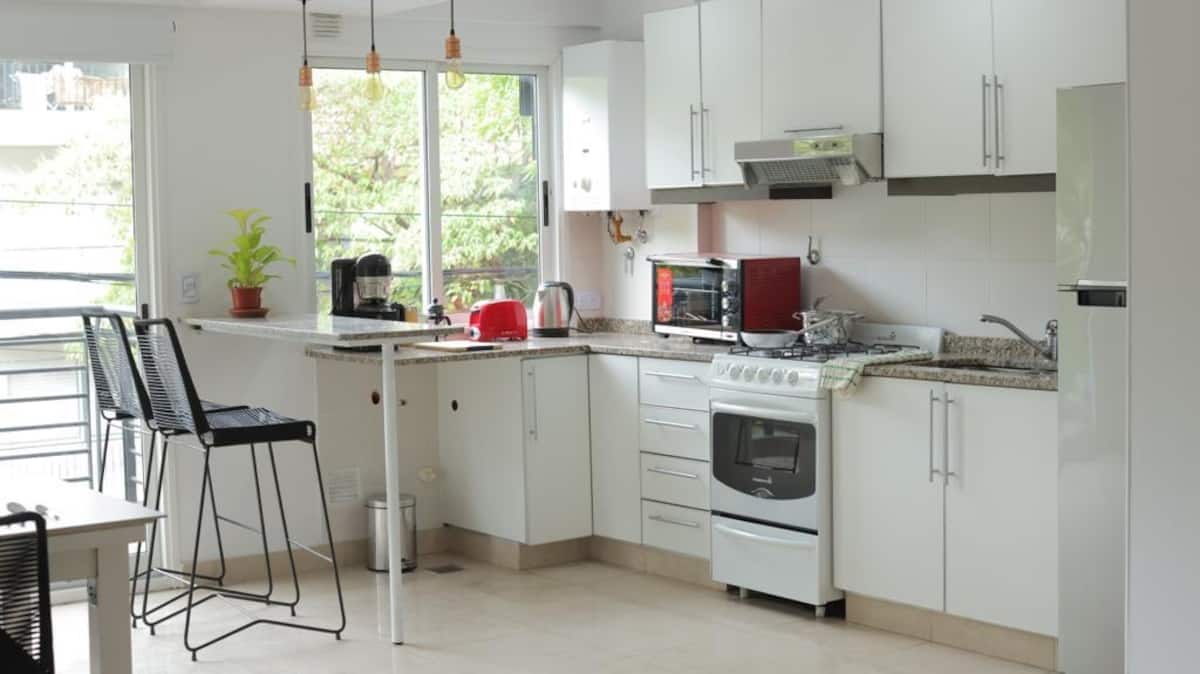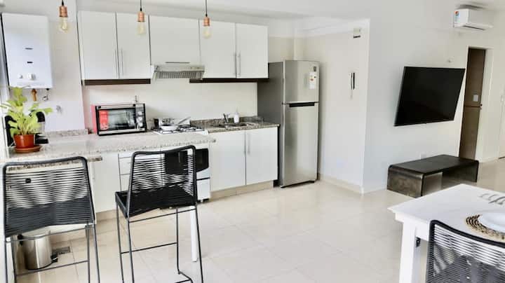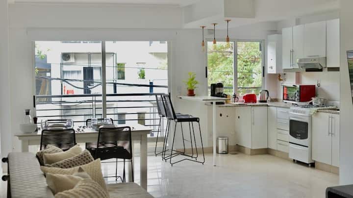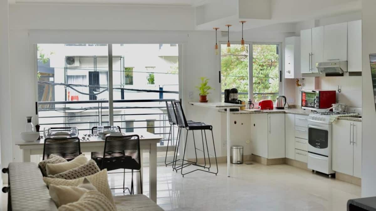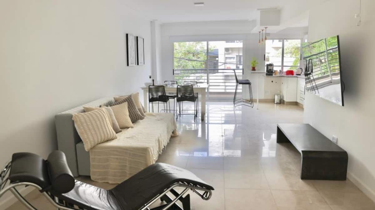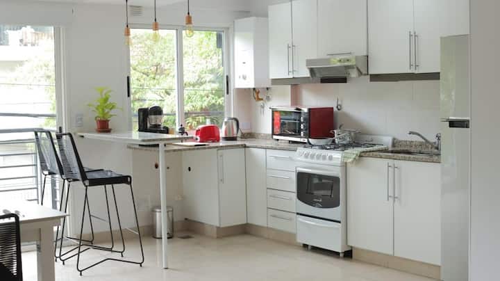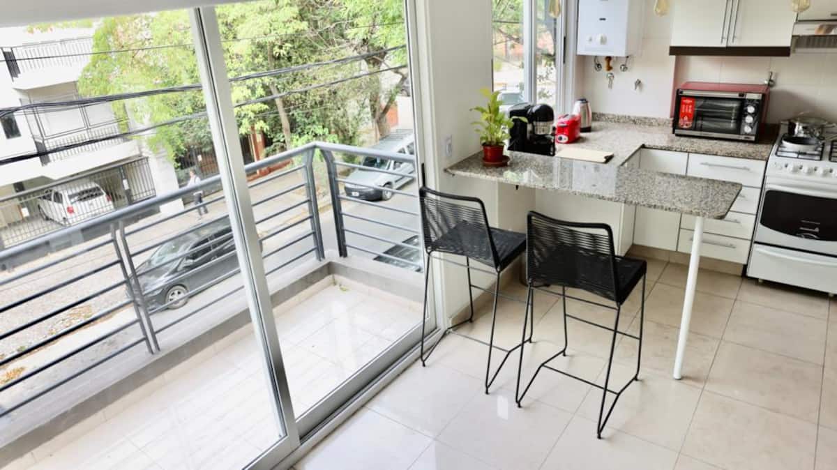 Apartamento mobiliado em Belgrano, para estadias temporárias. A ocupação é para até 4 pessoas. Há varanda, Wi-Fi e ar-condicionado frio/calor; inclui TV smart e opção de vaga de garagem coberta. O prédio tem área de lavanderia. O valor inclui condomínio e serviços.