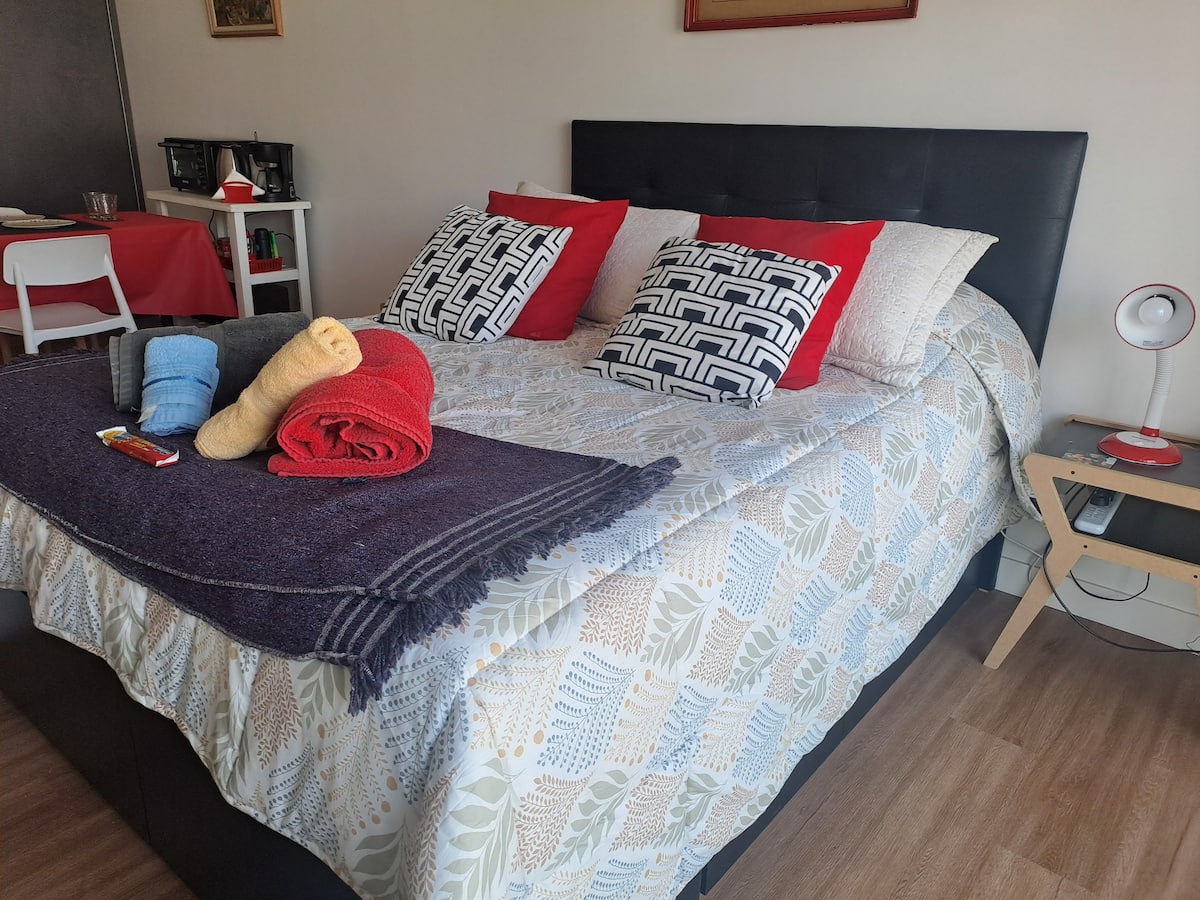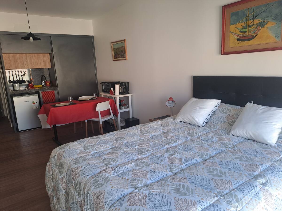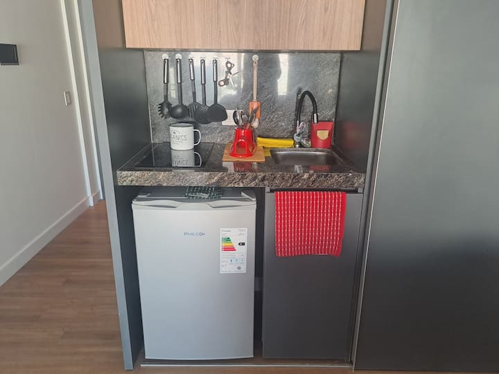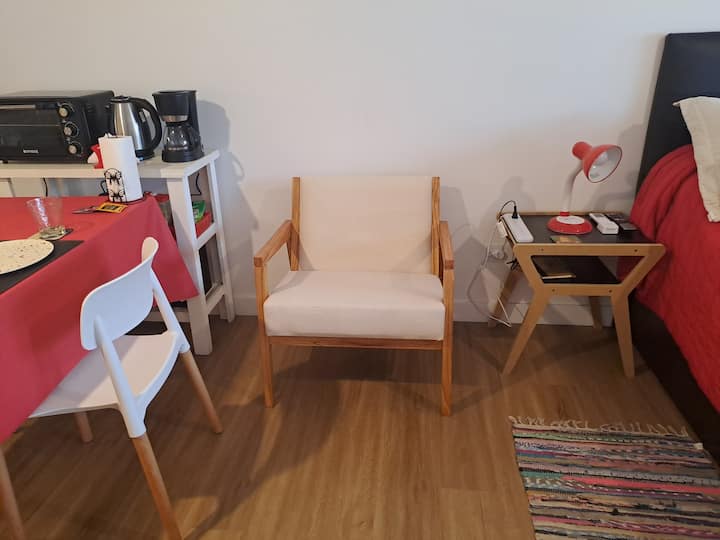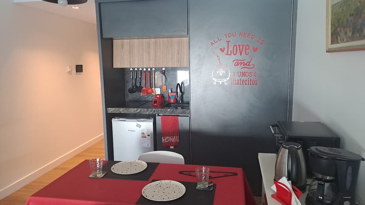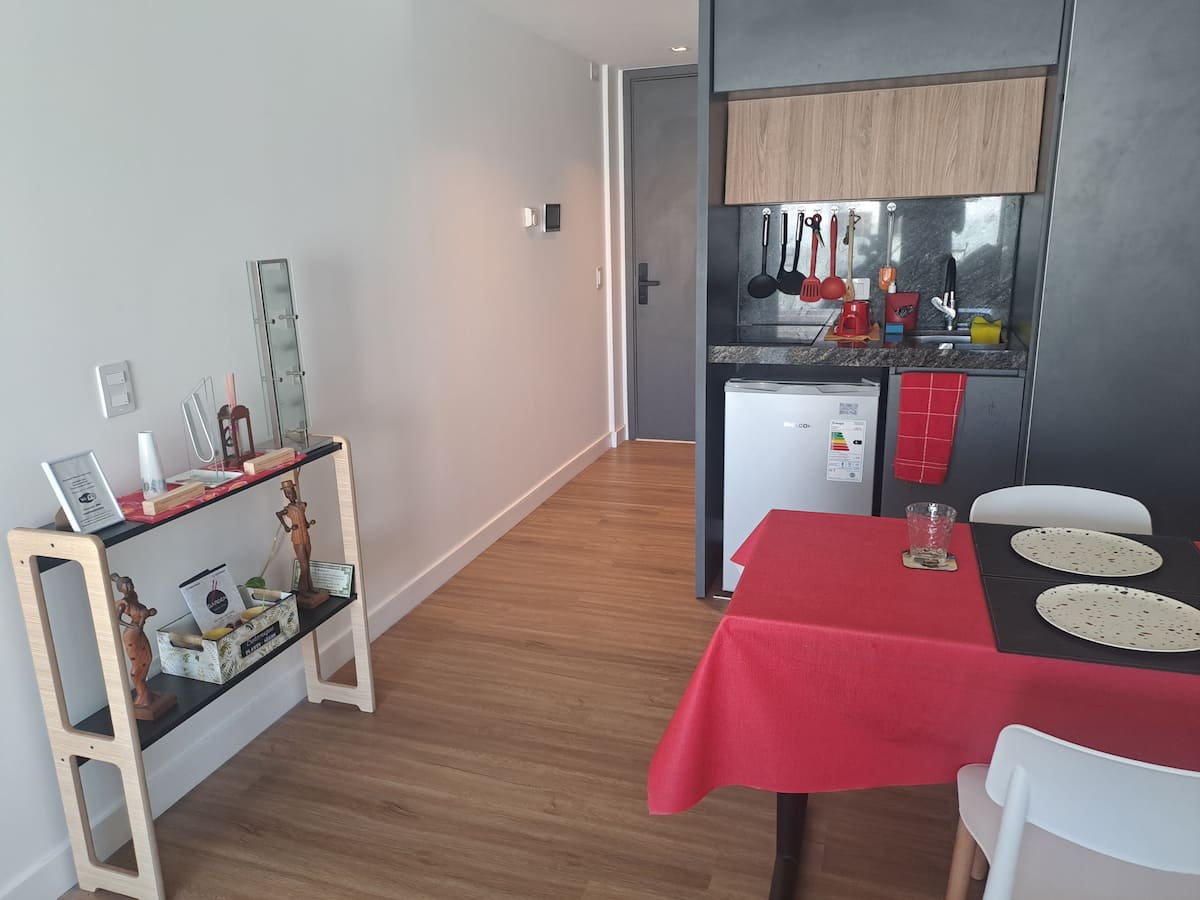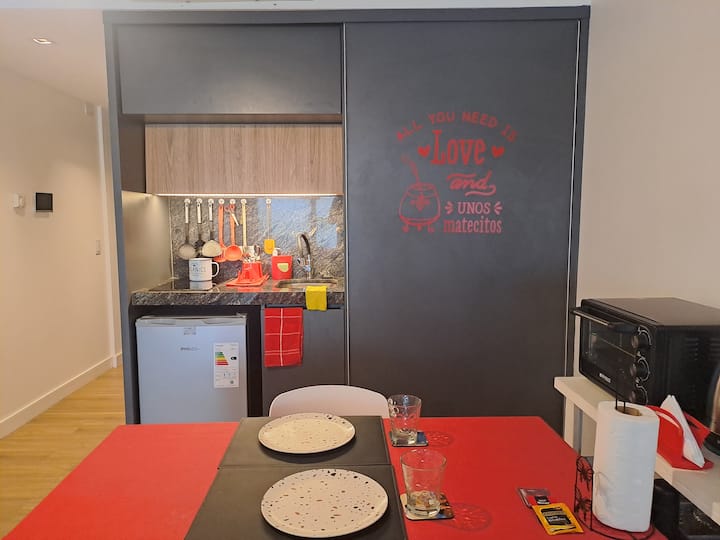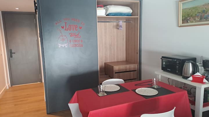Apartamento de 1 quarto em Belgrano, com 30 m². Quarto integrado à sala. Possui ar-condicionado com controle remoto e aquecimento por piso radiante. O imóvel tem varanda com vista aberta e acesso a piscina no prédio.