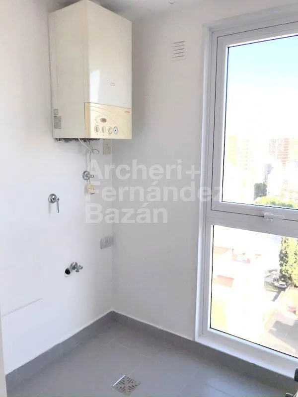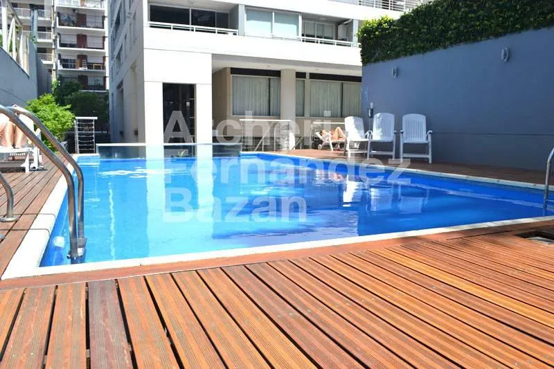 Apartamento de 2 ambientes com 48 m², de fundos (contrafrente), no térreo de um prédio em torre em Belgrano. O imóvel tem sala de estar e jantar com grandes janelas, cozinha completa semi-incorporada com barra e espaço para máquina de lavar, amplo balcão corrido, 1 dormitório com ar-condicionado e armários, 1 banheiro completo. Possui aquecimento individual por piso radiante com termostato e caldeira individual, além de ar-condicionado no living e no dormitório. O prédio oferece piscina com sola