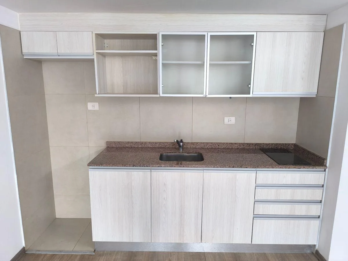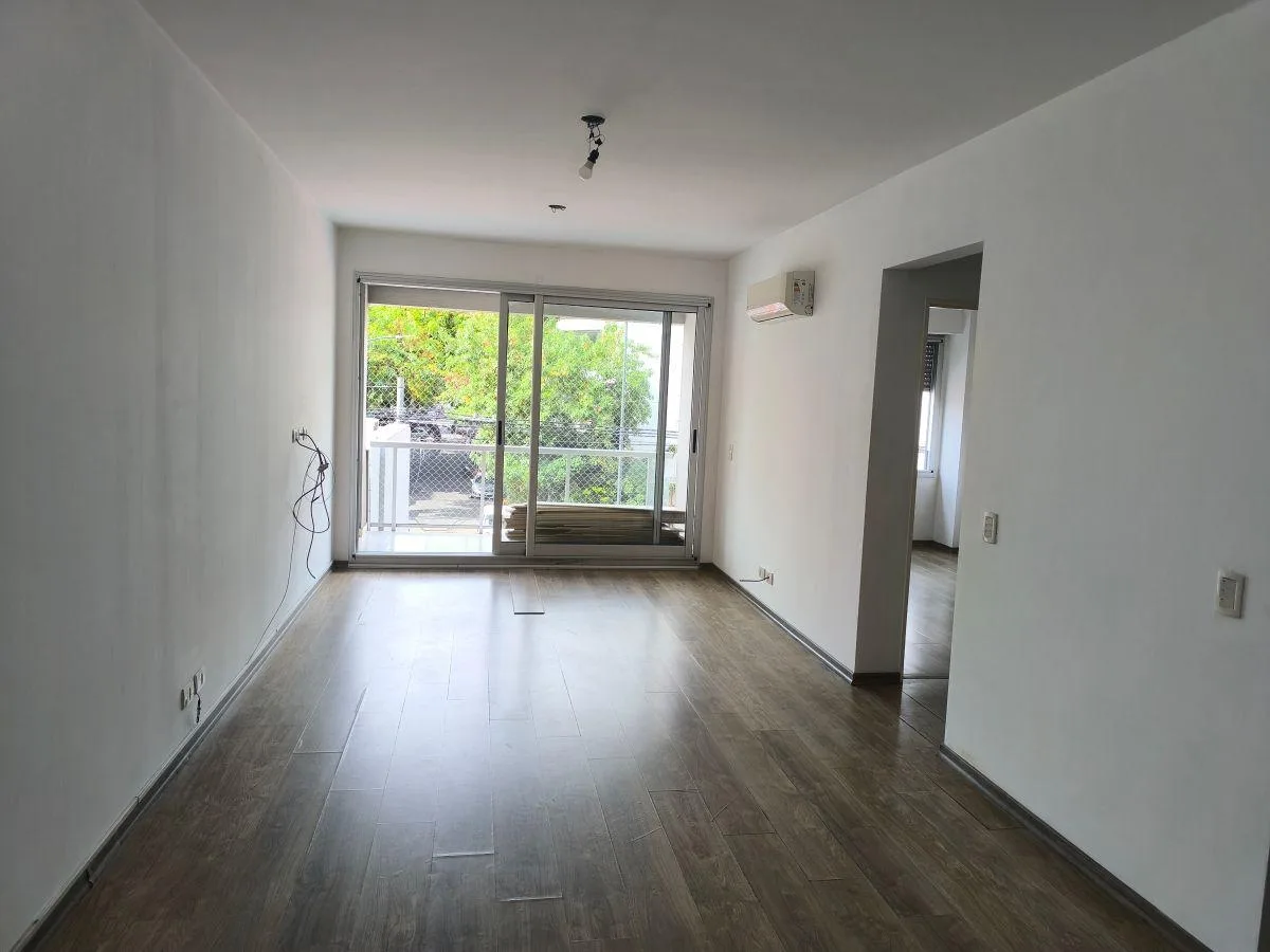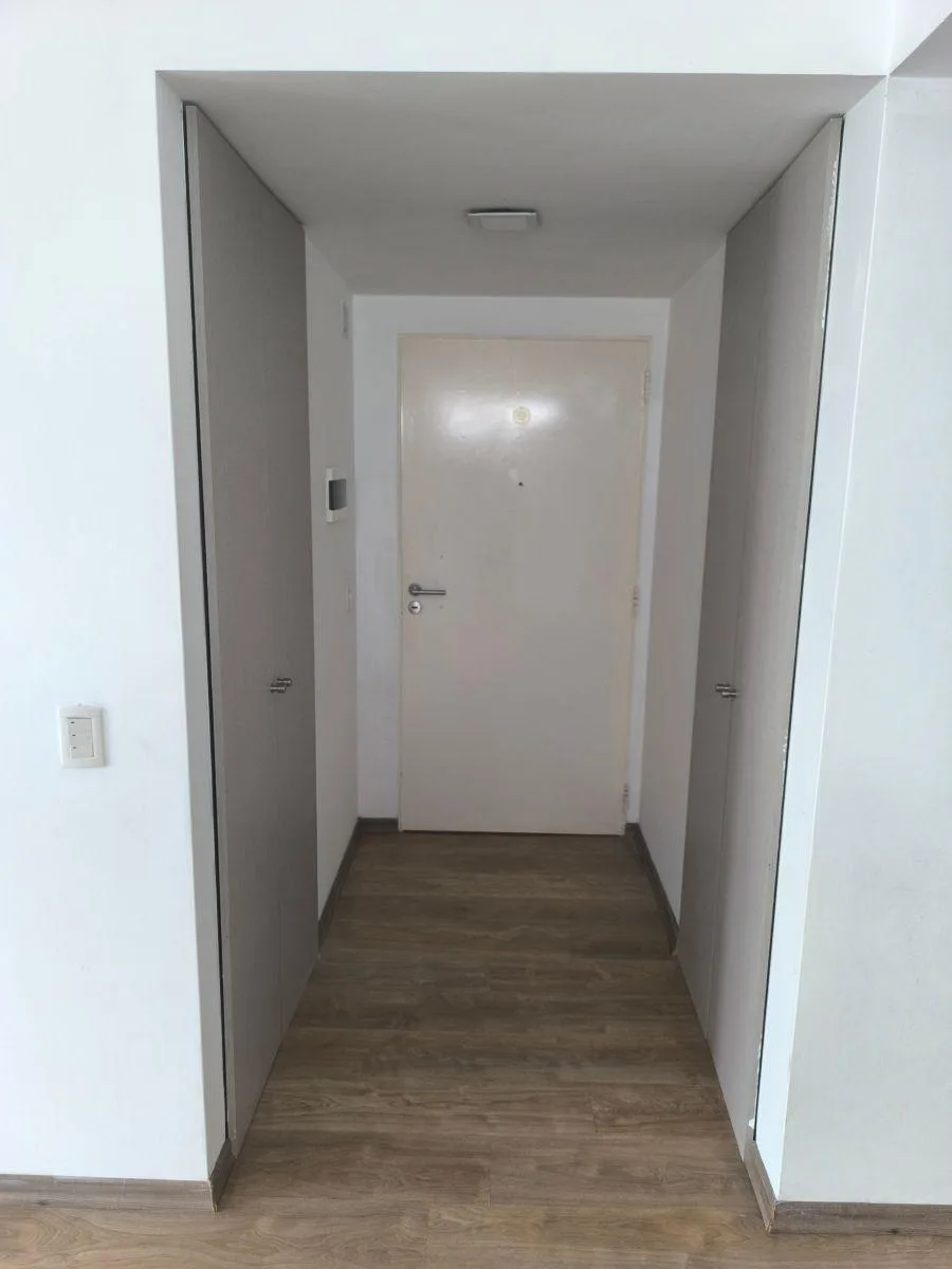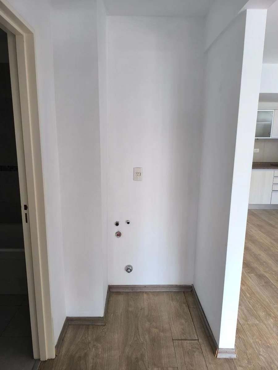 Apartamento de 2 ambientes, de frente para a rua, com varanda. Há espaço para instalação de máquina de lavar (lavarropas). O edifício tem piscina, solarium, salão comunitário e lavanderia, além de totem de segurança. Fica a 3 quadras da estação de trem e a 5 quadras do metrô.