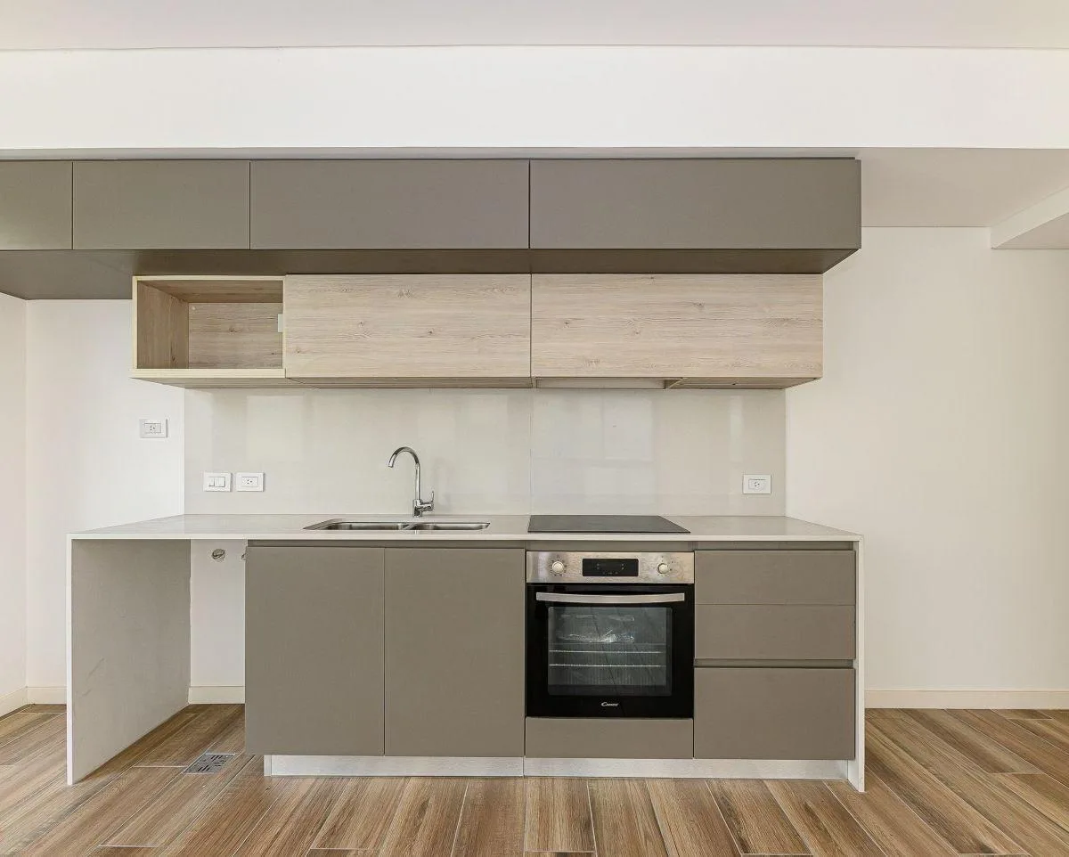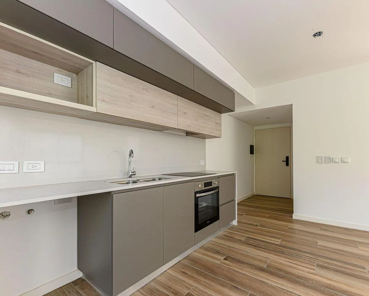 Apartamento novo (nunca habitado) de 2 ambientes em Belgrano, com living e área de jantar integrada à varanda. Possui lavabo, 1 dormitório com closet, banheiro completo e cozinha com armários e conexão para lavadora. O prédio tem 15 andares, 3 unidades por andar, com piscina aquecida, solário, academia, salão de festas e área de churrasco; também há acesso para pessoas com deficiência.