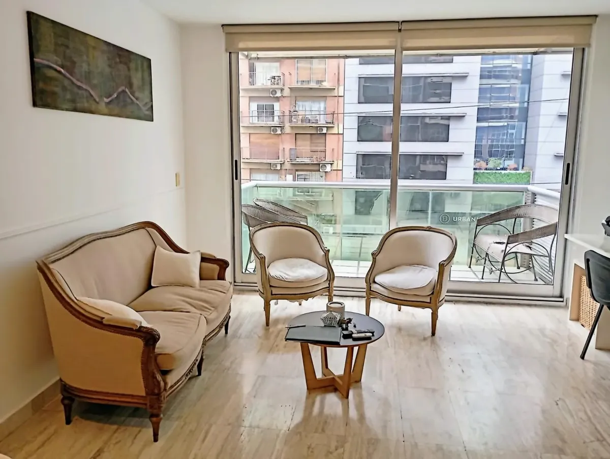 Apartamento mobiliado tipo semipiso em Av. Libertador 5600, em Belgrano. Conta com 1 quarto em suíte, com armário de portas de correr com espelho do piso ao teto e banheiro privativo com banheira e ventilação para o exterior. Possui varanda mobiliada, cozinha completa com forno e fogão elétrico de 4 bocas e geladeira grande, além de utensílios e eletrodomésticos. O imóvel está ocupado até 1º de maio de 2026 e a locação é temporária; o preço pacote é de 1.700.000 ARS, incluindo tudo exceto um lim