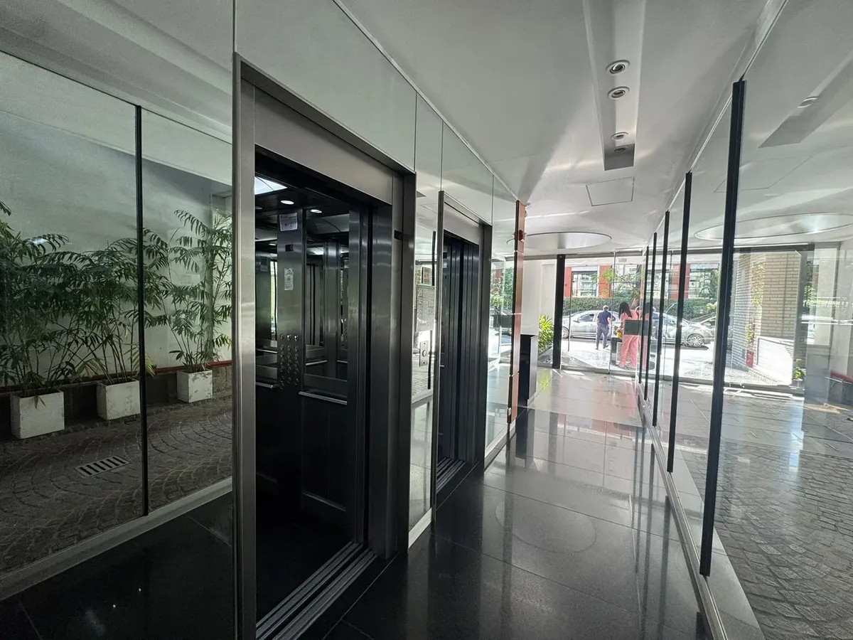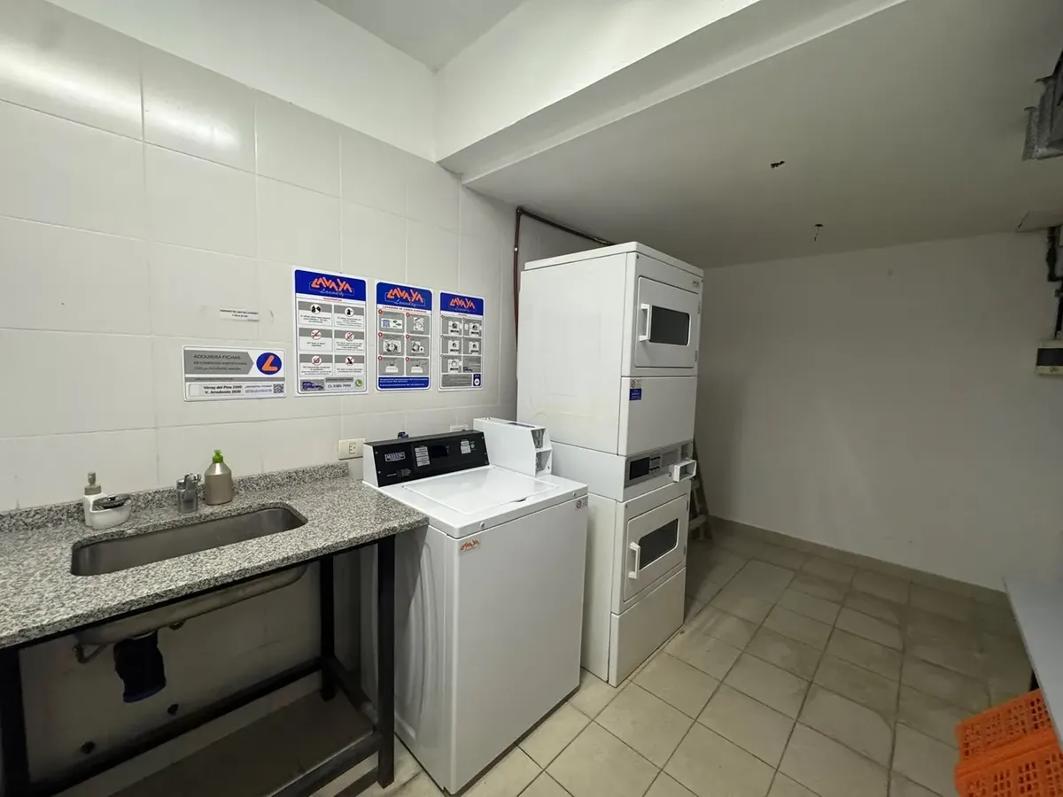 Apartamento de 2 ambientes em Belgrano, com 1 quarto. Possui living com cozinha integrada em conceito aberto, cozinha totalmente elétrica e dormitório com armário. Há banheiro separado por porta divisória, varanda corrida e área de lavanderia externa coberta com conexão para lavadora. O imóvel conta com aquecimento por piso radiante central. O prédio tem terraço com piscina, salão de festas, academia e área de lavanderia, além de encarregado com moradia; locação para profissional. Fica a 2 quadr