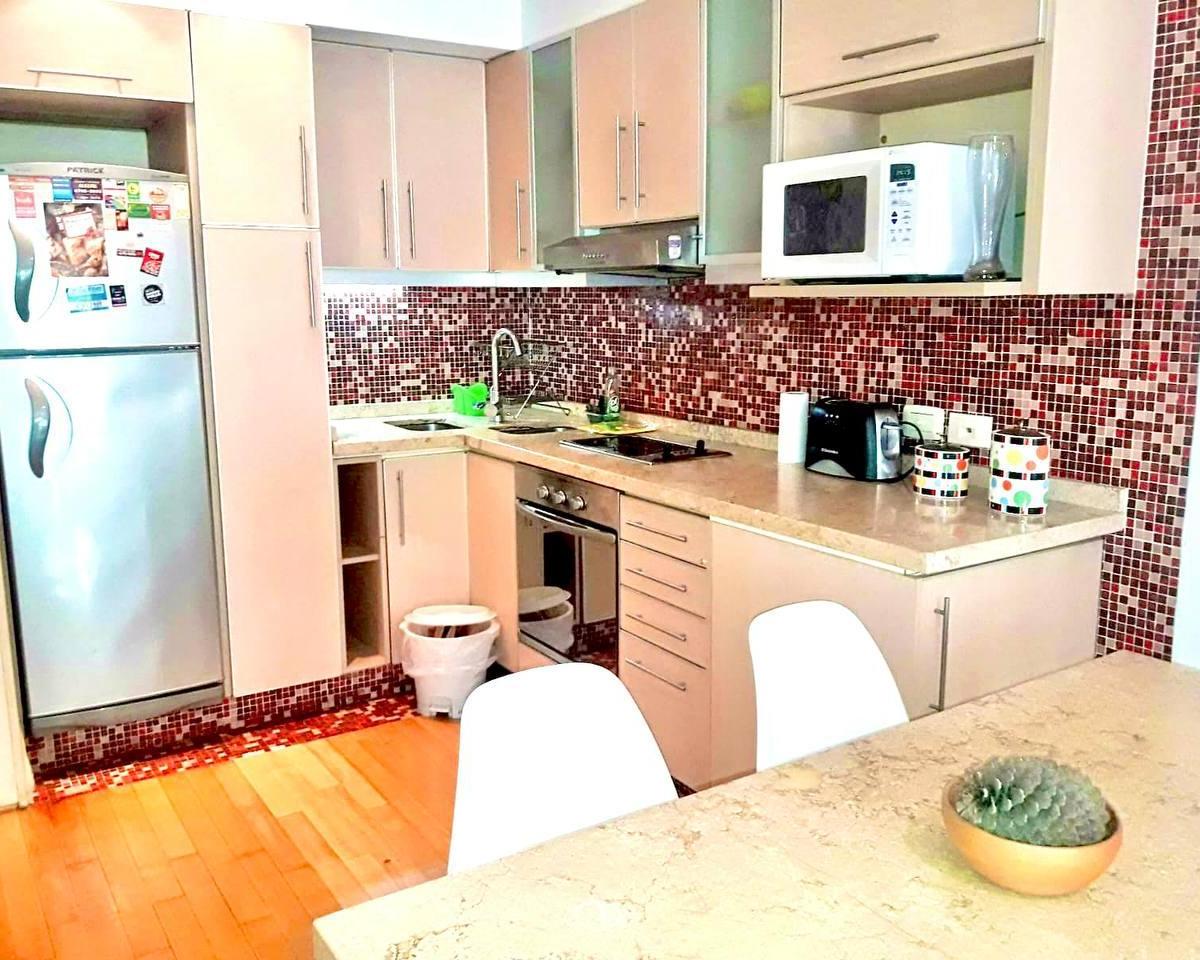 Apartamento em Belgrano com 1 dormitório, 1 ambiente amplo e mobiliado. Cozinha integrada completa com fogão/boiler (anafes) e forno elétrico, com área de jantar. Tem closet, banheiro com banheira, cama de casal, TV a cabo e Wi-Fi, roupas de cama e de banho. Varanda de frente para a rua, com aquecimento por ar-condicionado frio/quente. O prédio tem encarregado permanente, área de churrasco (parrilla), quincho, piscina, solarium e lavanderia (laundry). Energia elétrica, TV a cabo e internet são p