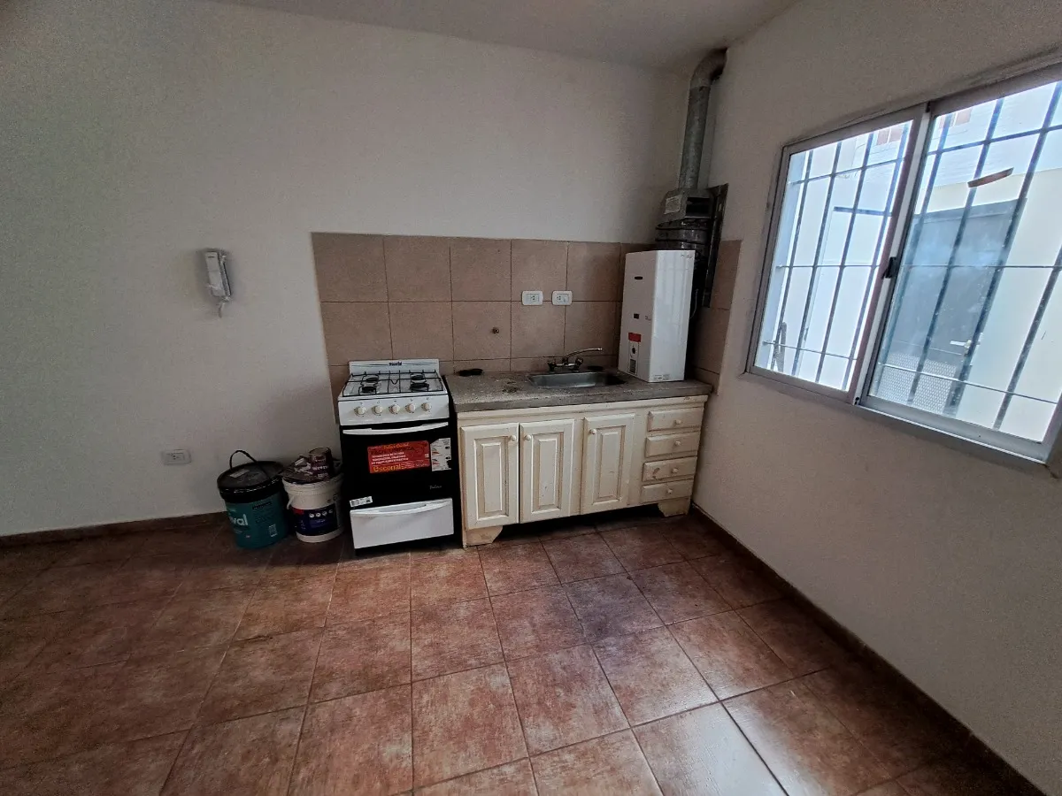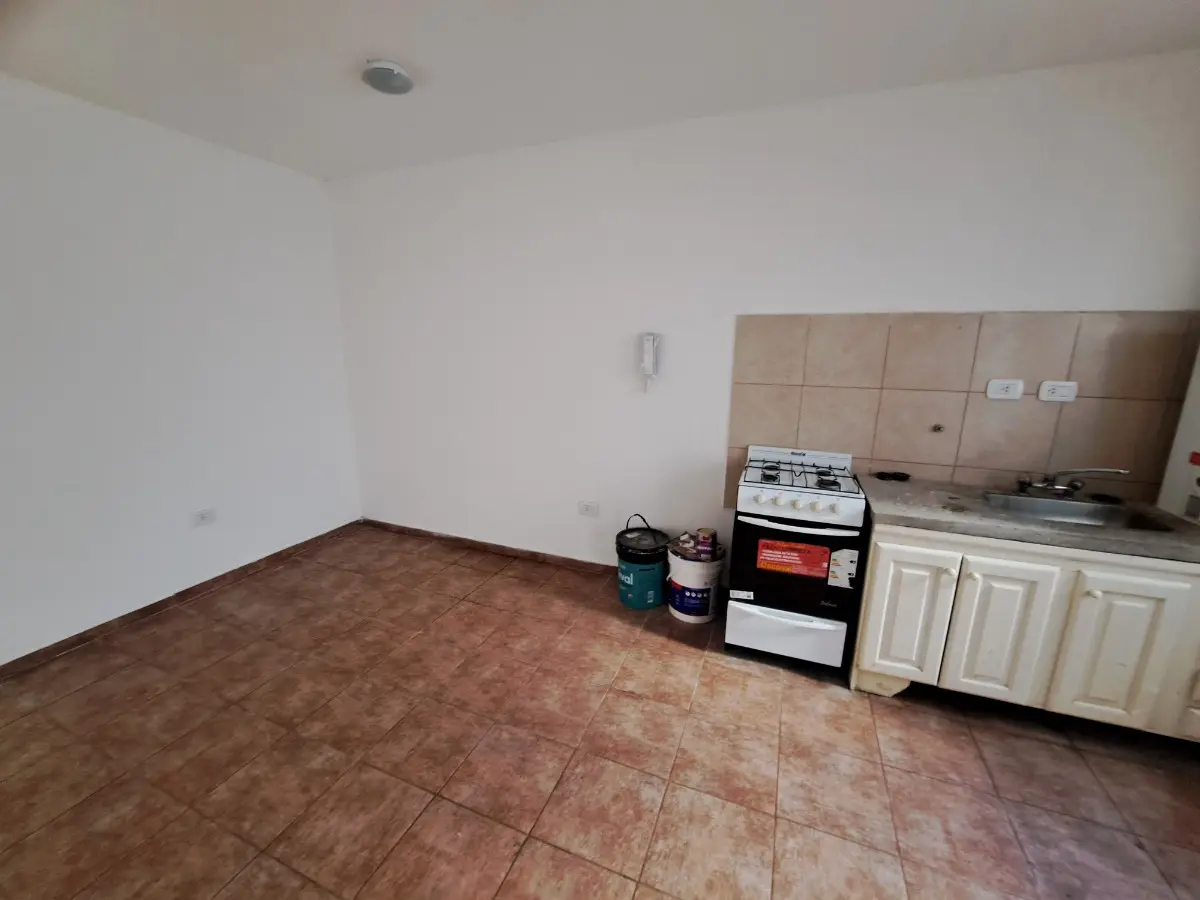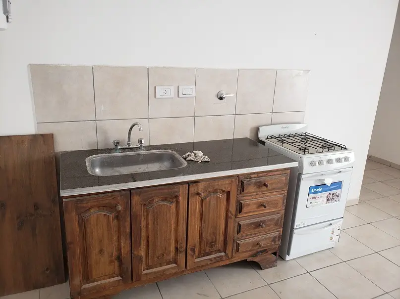 Apartamento em La Plata disponível no térreo, com opções de frente e internas. Possui cozinha com área de refeições equipada com armário na parte inferior e fogão instalado, além de banheiro completo com louças instaladas e revestimento cerâmico. O dormitório tem janela para o exterior e pisos cerâmicos; há pátio próprio, sem jardim. O edifício não tem elevador, segurança, piscina, roof garden, terraço nem academia; o condomínio informado é de 15.000 ARS e não são aceitos animais de estimação.