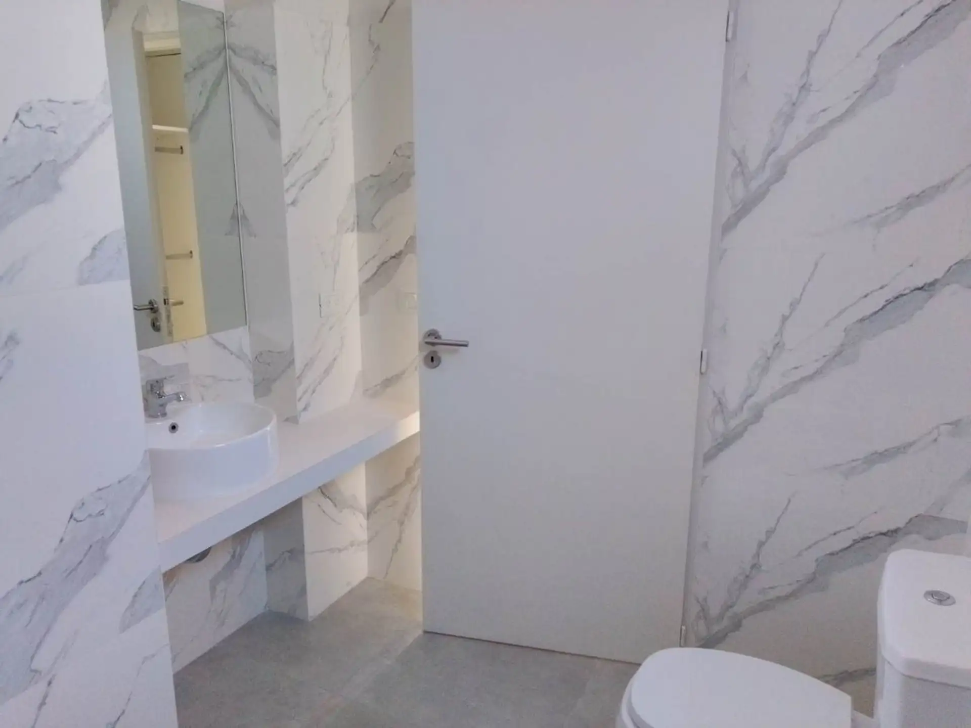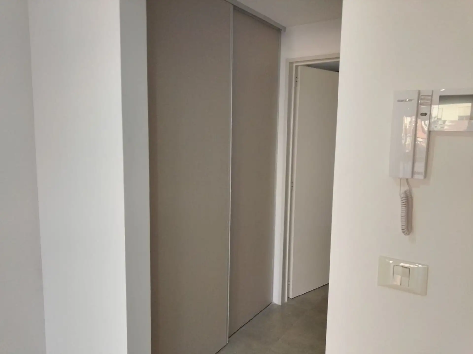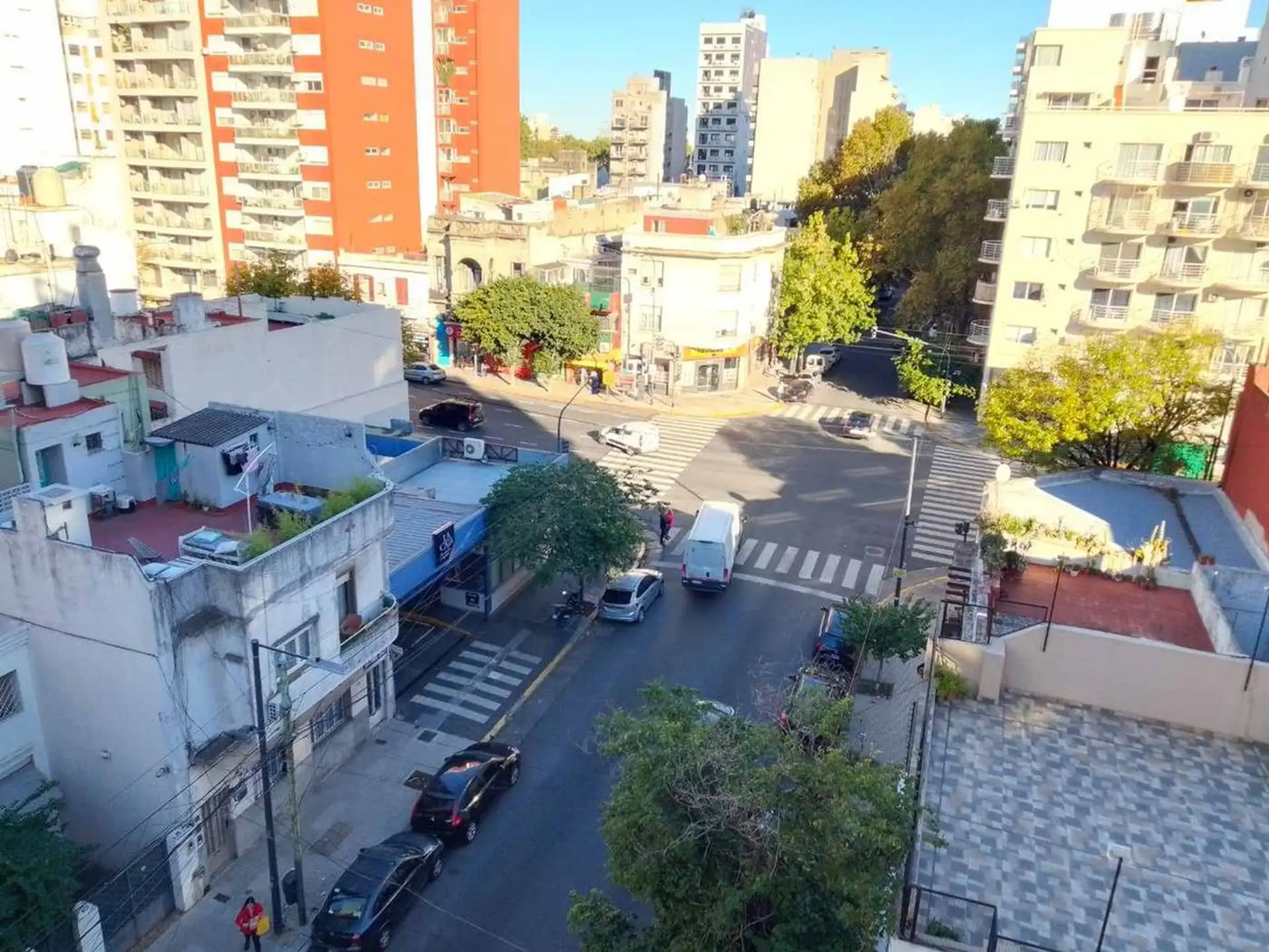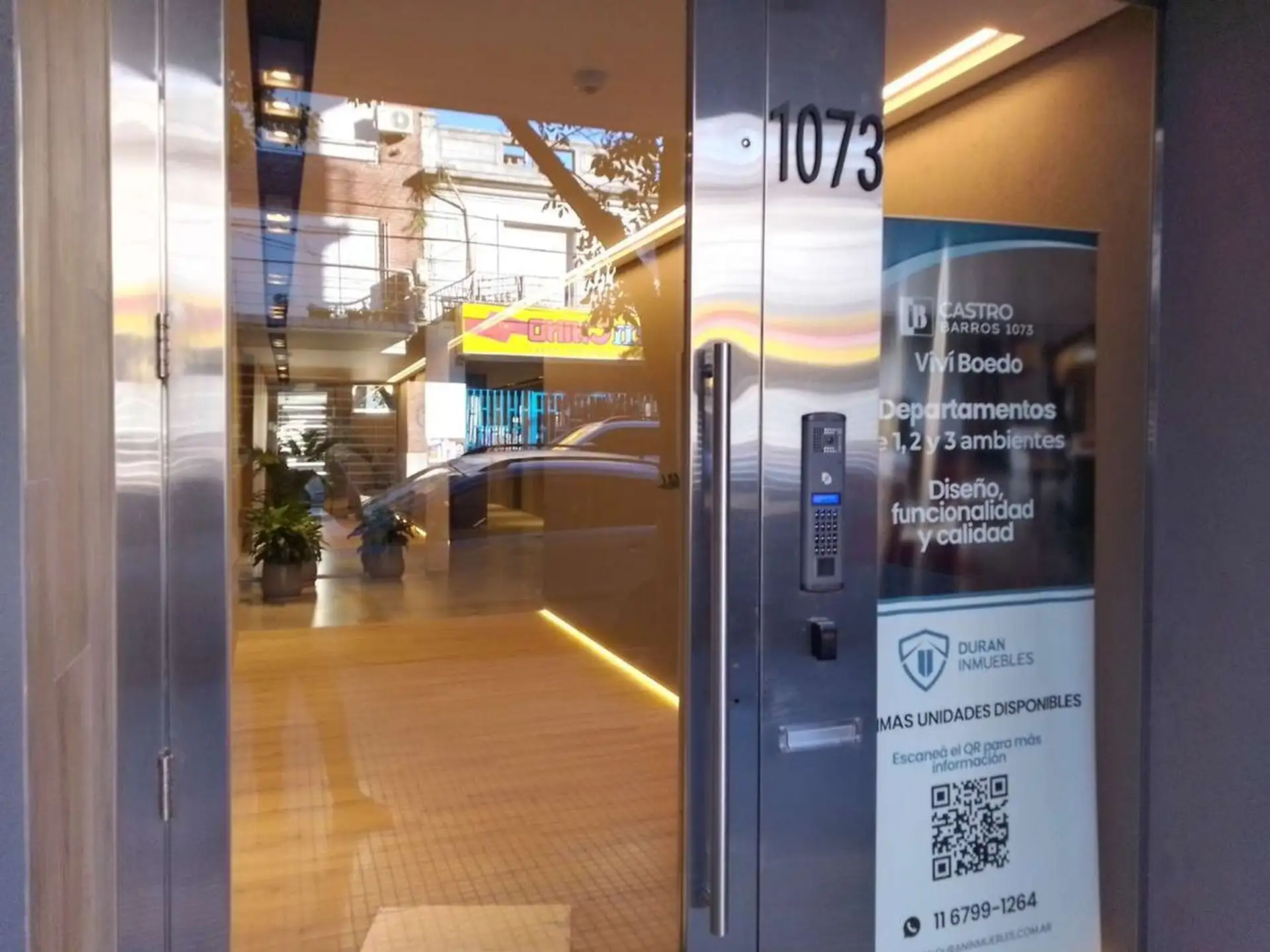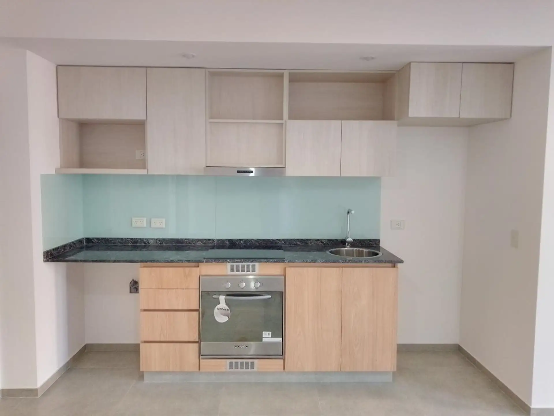 Kitnet (apartamento de um único ambiente) novo, 6º andar, de frente para a rua, com orientação leste, 1 banheiro e amplo balcão com janelas de vidro duplo (DVH). Cozinha com conexão para lavarropas e espaço para geladeira. O prédio tem salão de usos múltiplos para 40 pessoas, com 2 banheiros e pátio externo. O aluguel é por 24 meses, com mês antecipado, depósito de 2 meses e fiança por seguro de fiança; a comissão imobiliária fica a cargo do proprietário, conforme a legislação vigente.