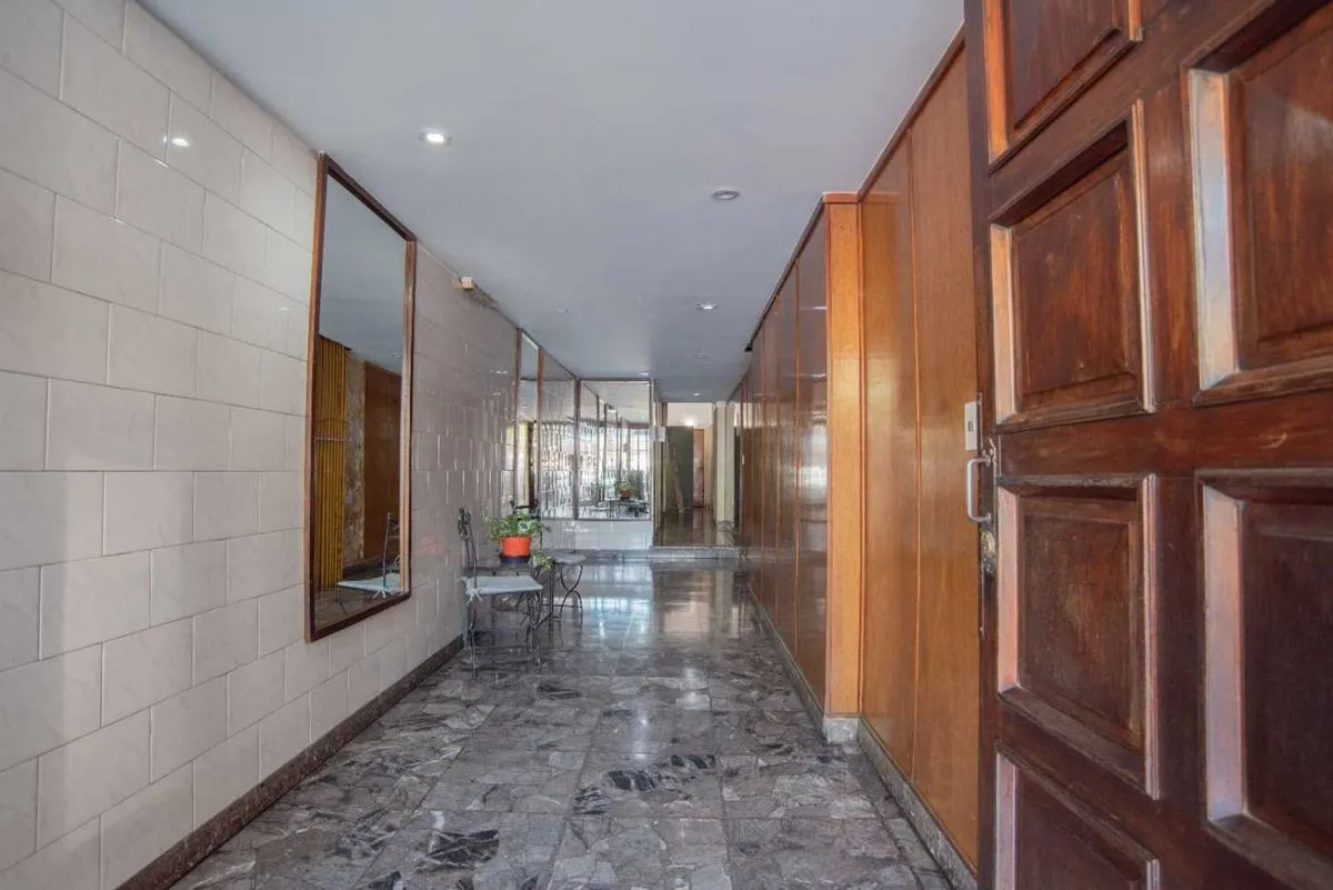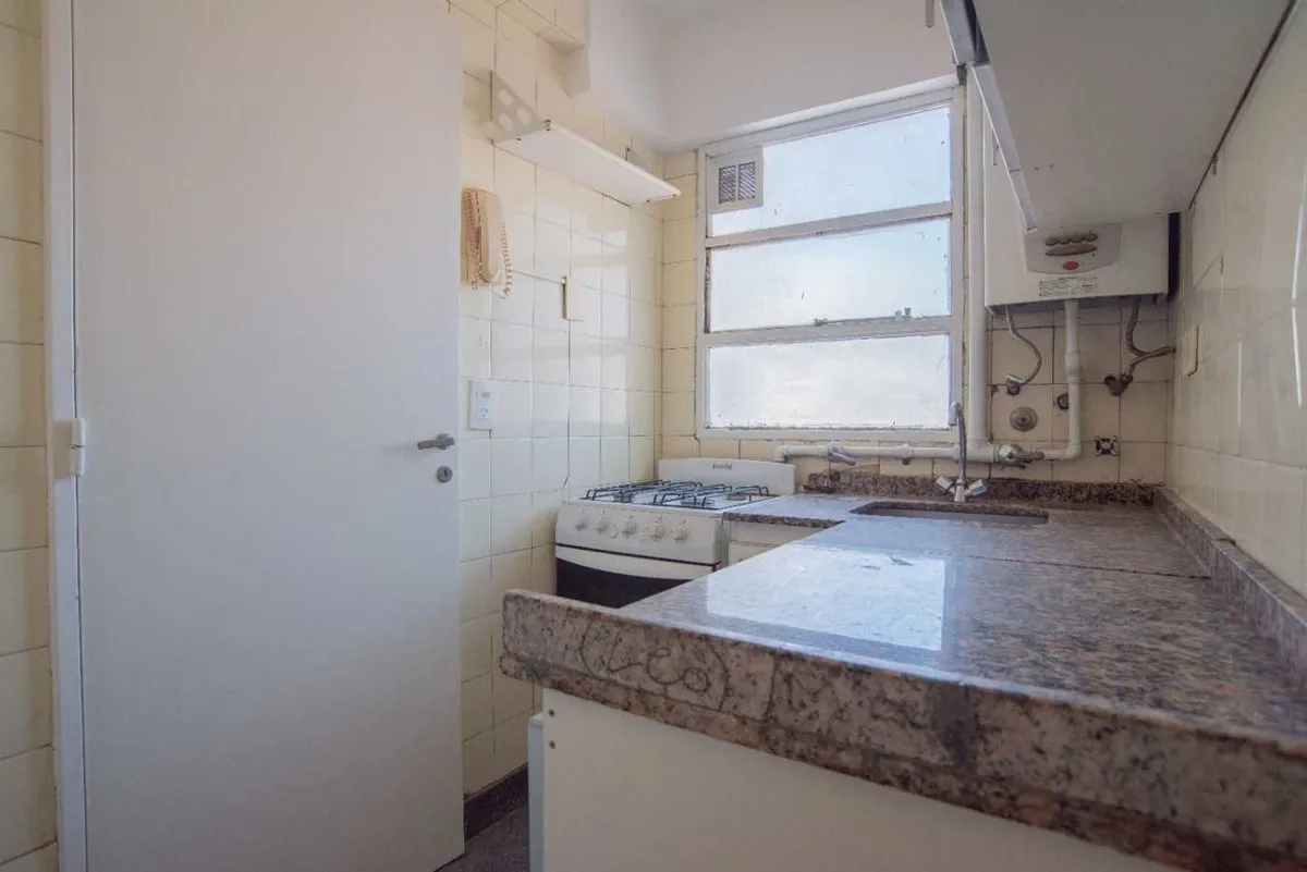 Apartamento de 2 ambientes com 40 m² cobertos, com varanda tipo balcão francês. Piso de parquet nos ambientes. Possui estufas a gás no quarto e na sala, além de ventiladores de teto no quarto e na área sala de jantar/sala de estar. A cozinha é independente, com janela para o exterior e instalação para máquina de lavar roupa. O quarto tem armário embutido e janela. Há 1 banheiro completo e armário adicional no corredor. Contrato de 24 meses com atualização trimestral pelo IPC, com comprovação de