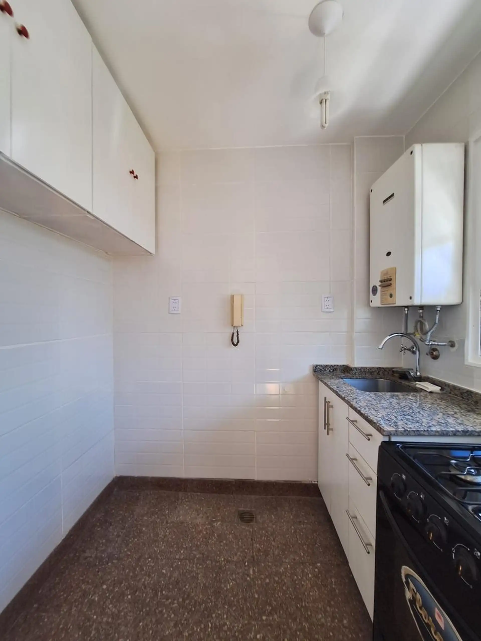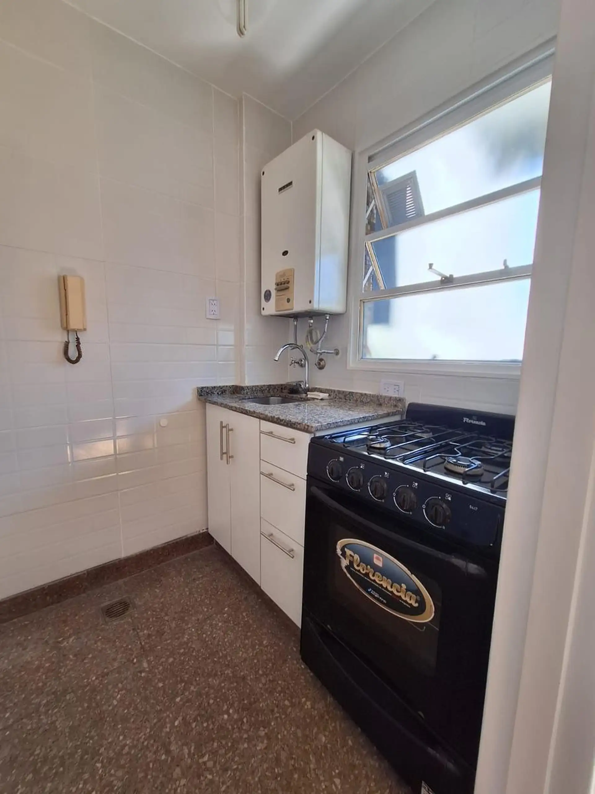 Kitnet de 1 ambiente reformada (a novo), com varanda voltada para a rua. Cozinha independente com instalação para lavarroupa e área de preparo. Locação tradicional com fiança (caución), 1 mês de adiantamento e 1 mês de depósito.