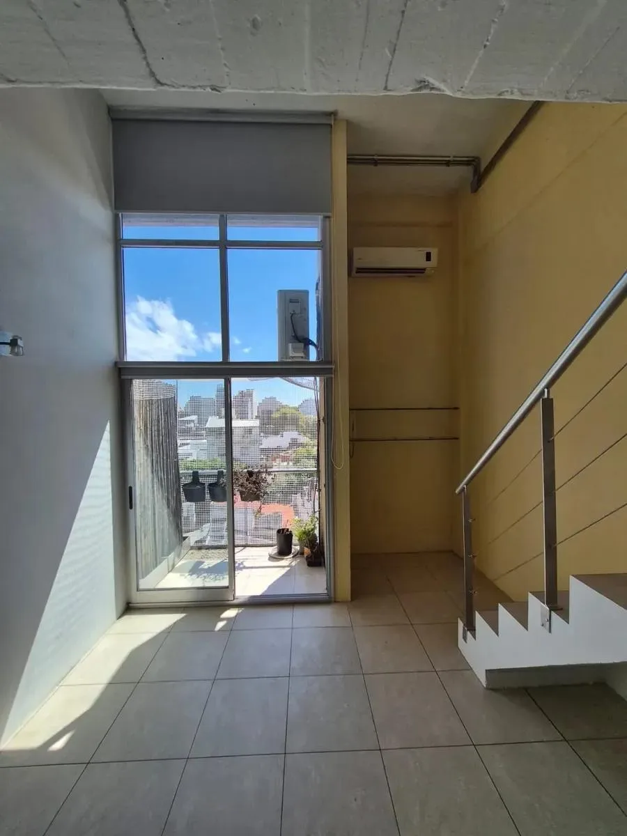 Apartamento de 2 ambientes com 46 m² cobertos e 48 m² totais, no 4º andar de um prédio com 4 pisos, de fundos (contrafrente), com orientação norte. Tem 1 dormitório e 1 banheiro, varanda, ar-condicionado e laundry no edifício. O prédio conta com piscina.