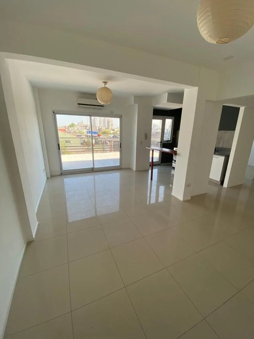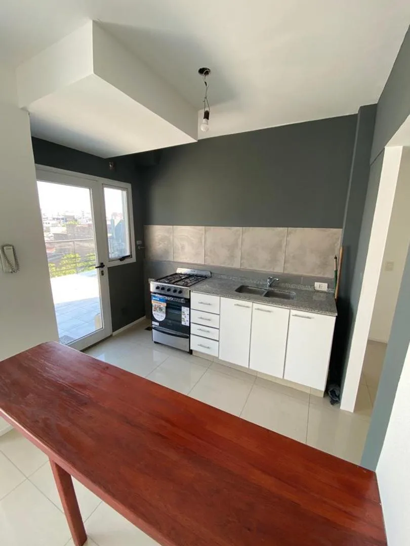 Apartamento de 2 ambientes em Boedo, com balcón terraza de frente para a rua. Planta com living em L, cozinha integrada, banheiro completo com ventilação e dormitório com placard. Inclui vaga de garagem fixa. Varanda/terraço (8,2x3,7), cozinha (2,7x2,1) e dormitório (3x2,8). O imóvel é oferecido alugado, com contrato vigente até dezembro de 2026.