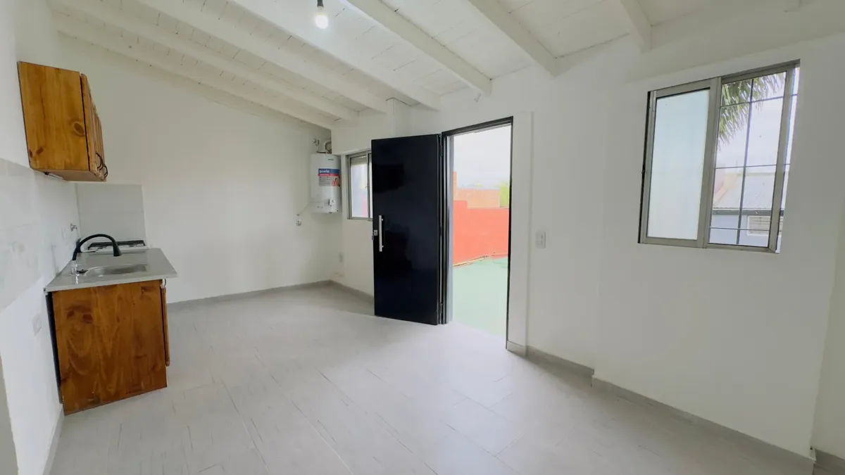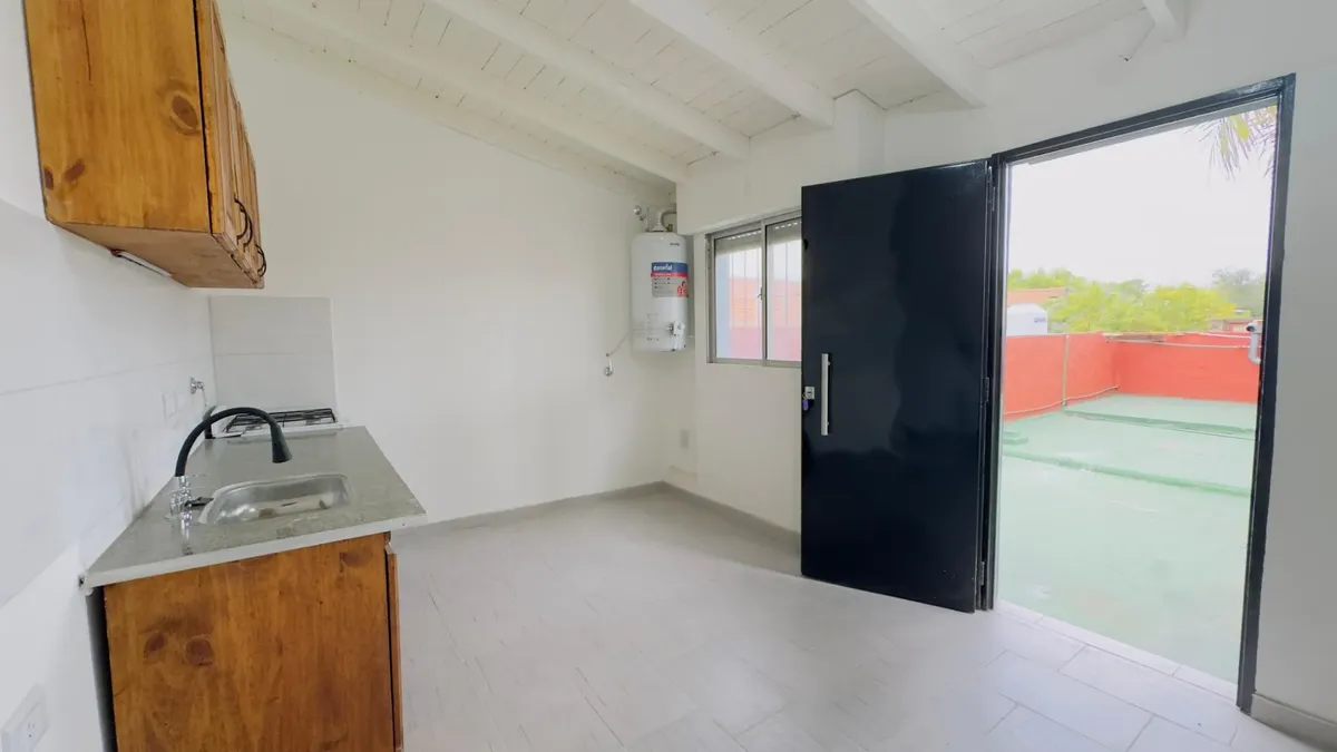 Apartamento no térreo com terraço independente em Boulogne, em zona próxima à Panamericana e a algumas quadras do Shopping Soleil. Possui 1 dormitório, cozinha com alacena, armário sob a pia, torneiras modernas, aquecedor de água (termotanque) e equipamentos de cozinha novos, além de sala de estar e jantar integradas e 1 banheiro. Inclui terraço independente e não tem condomínio. A luz é independente; o gás, a água e o ABL municipal são rateados em 3 partes. Exige seguro de fiança e contrato de