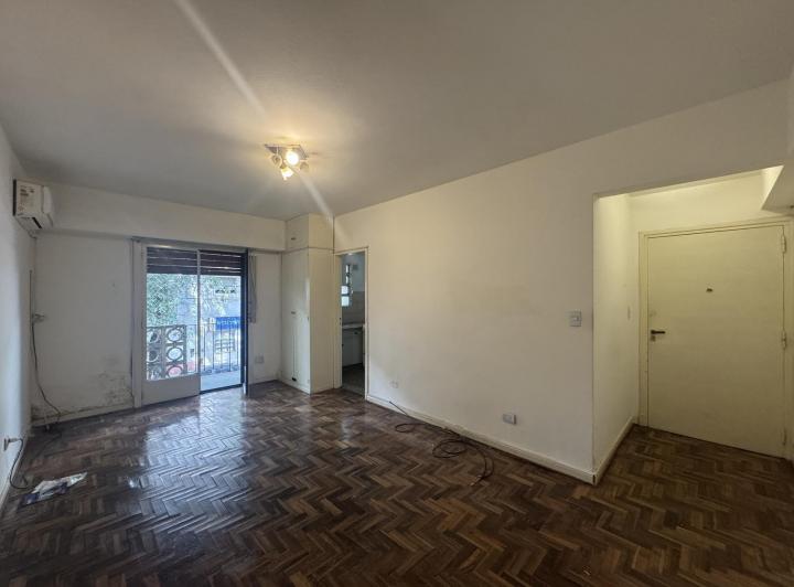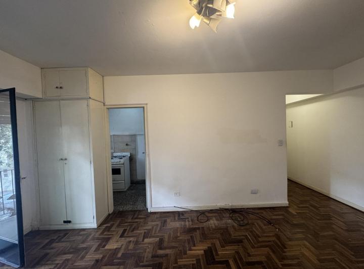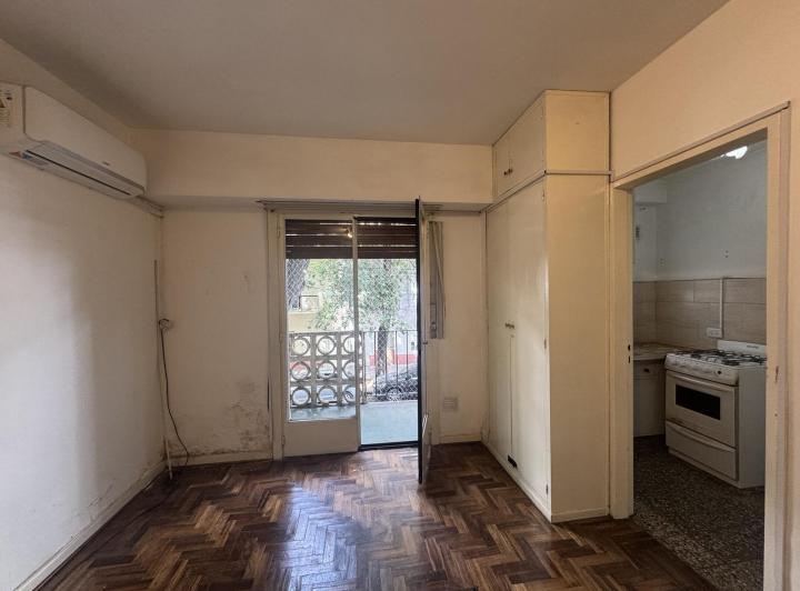 Apartamento de um ambiente com cozinha separada e varanda de frente em Caballito