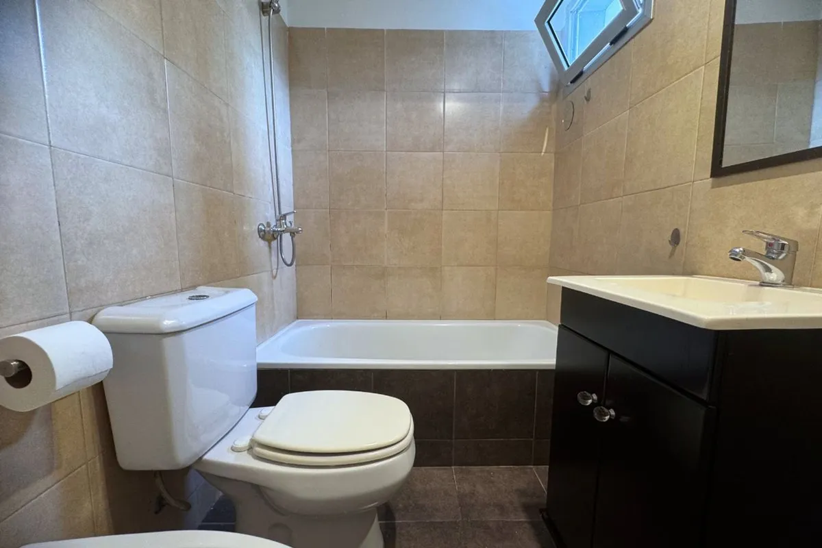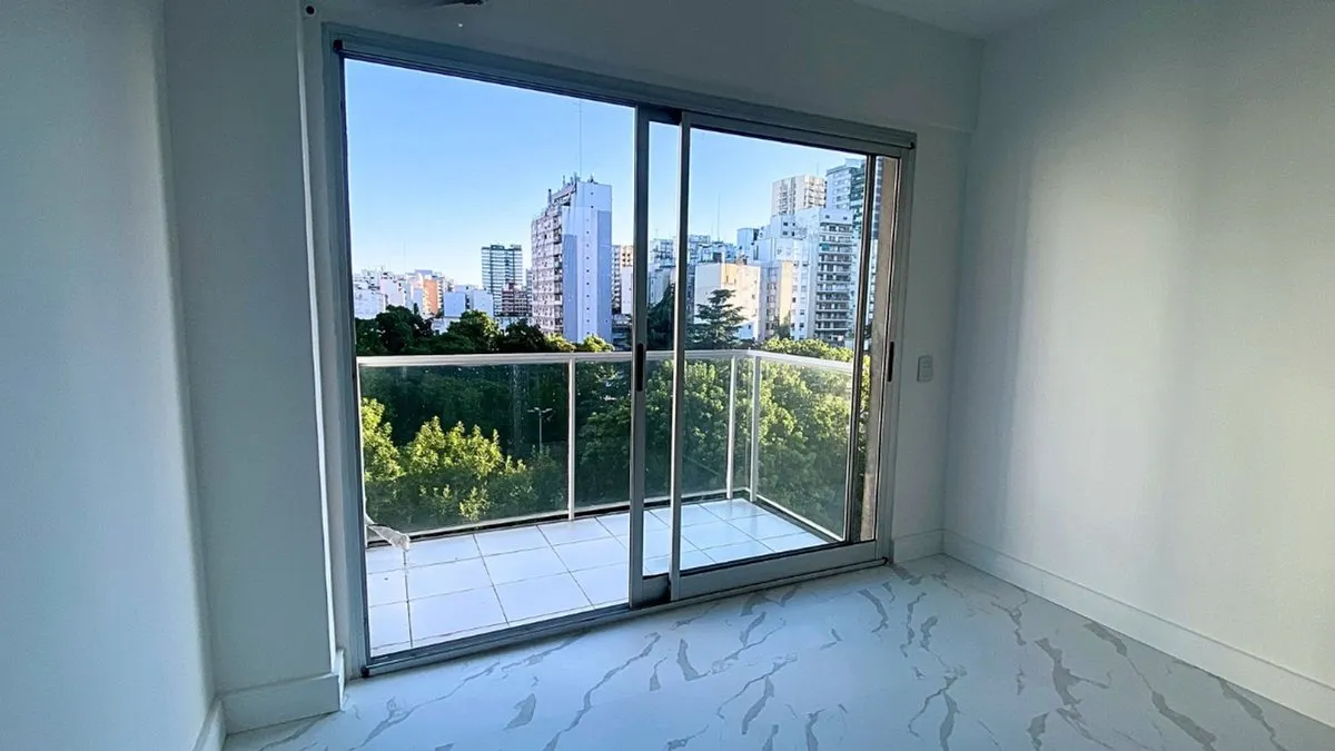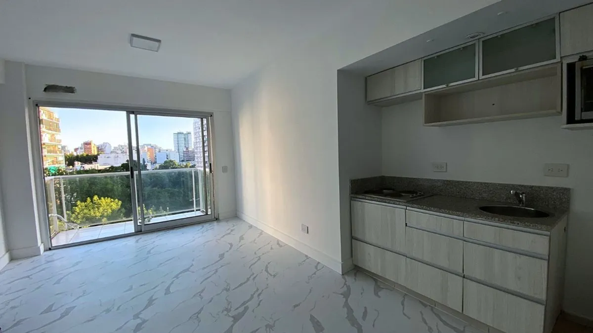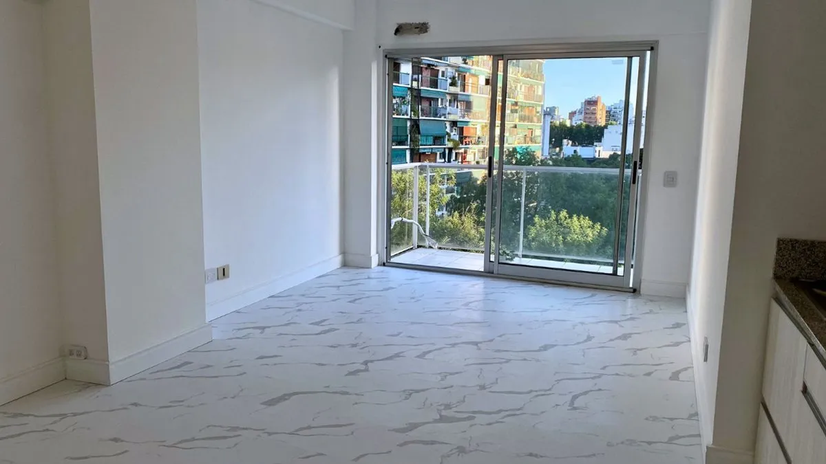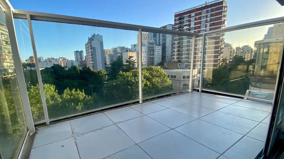 Apartamento de 2 ambientes em Caballito, recém-pintado e em bom estado. Possui living com área de jantar integrada à cozinha, com saída para varanda na frente com guarda-corpo de vidro. Cozinha elétrica com conexão para máquina de lavar (lavarropas); há previsão de instalação para ar-condicionado. O corredor distribui para o dormitório, com placard duplo embutido (uma porta com espelho), e para o banheiro amplo com janela de ventilação natural. O imóvel tem ventilação cruzada, janelas com vidro