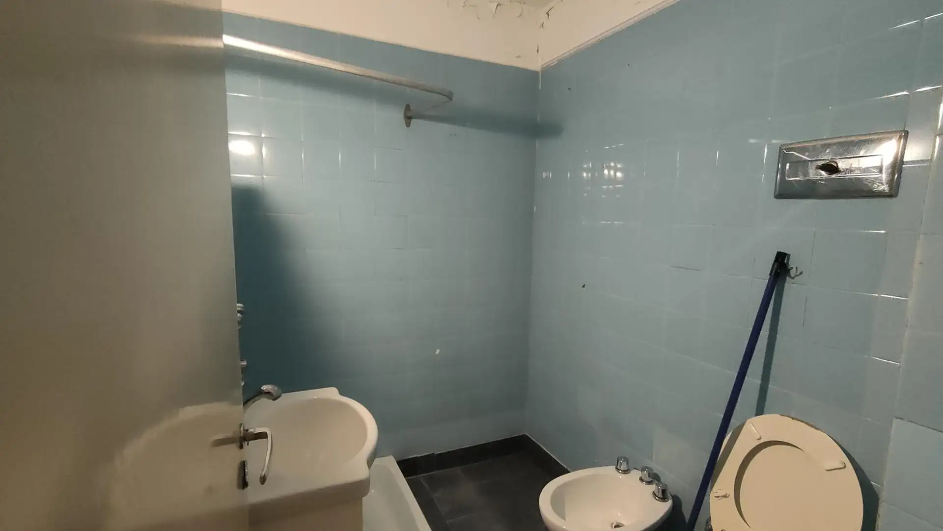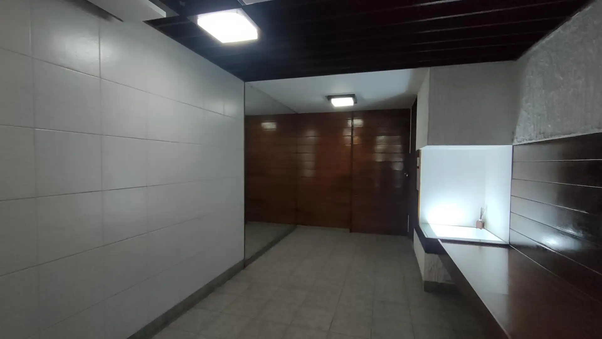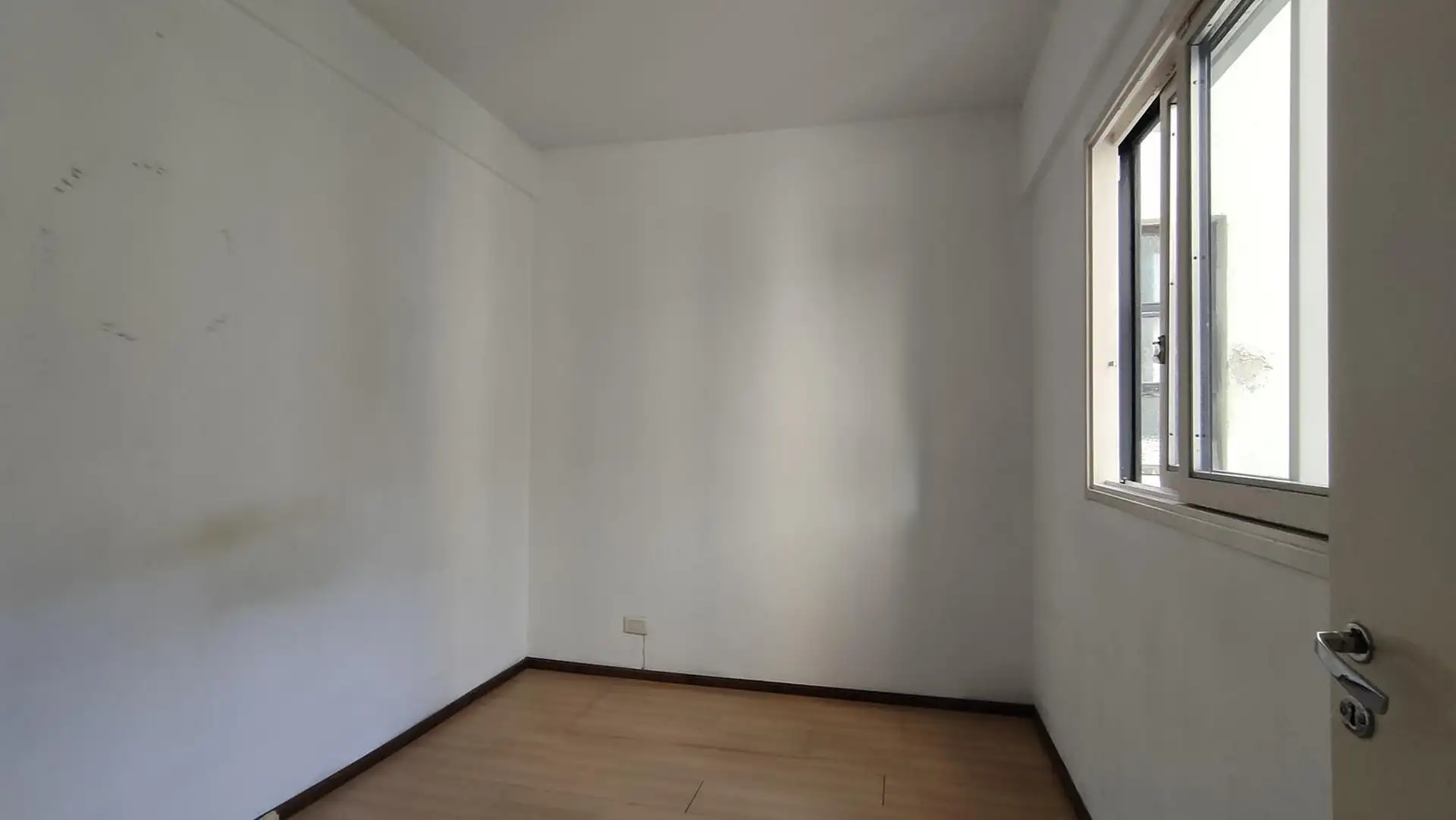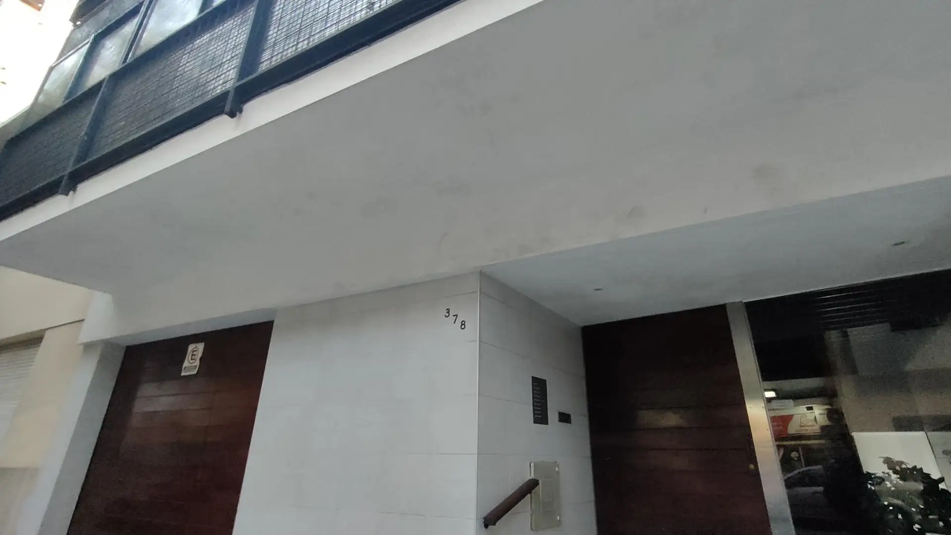 Apartamento de dois ambientes com 1 quarto, com orientação lateral para sul. A unidade tem living e sala de jantar (5,70 x 3,30), cozinha independente (3,30 x 1,60), banheiro (2,30 x 1,55) e dormitório com pequeno armário (3,30 x 2,50). Não aceita animais. Contrato de 2 anos, com reajuste trimestral pelo IPC; fiança locatícia com seguro caución e comprovação de renda. Ley 5115, Art. 1: imóvel não acessível para pessoas com mobilidade reduzida.
