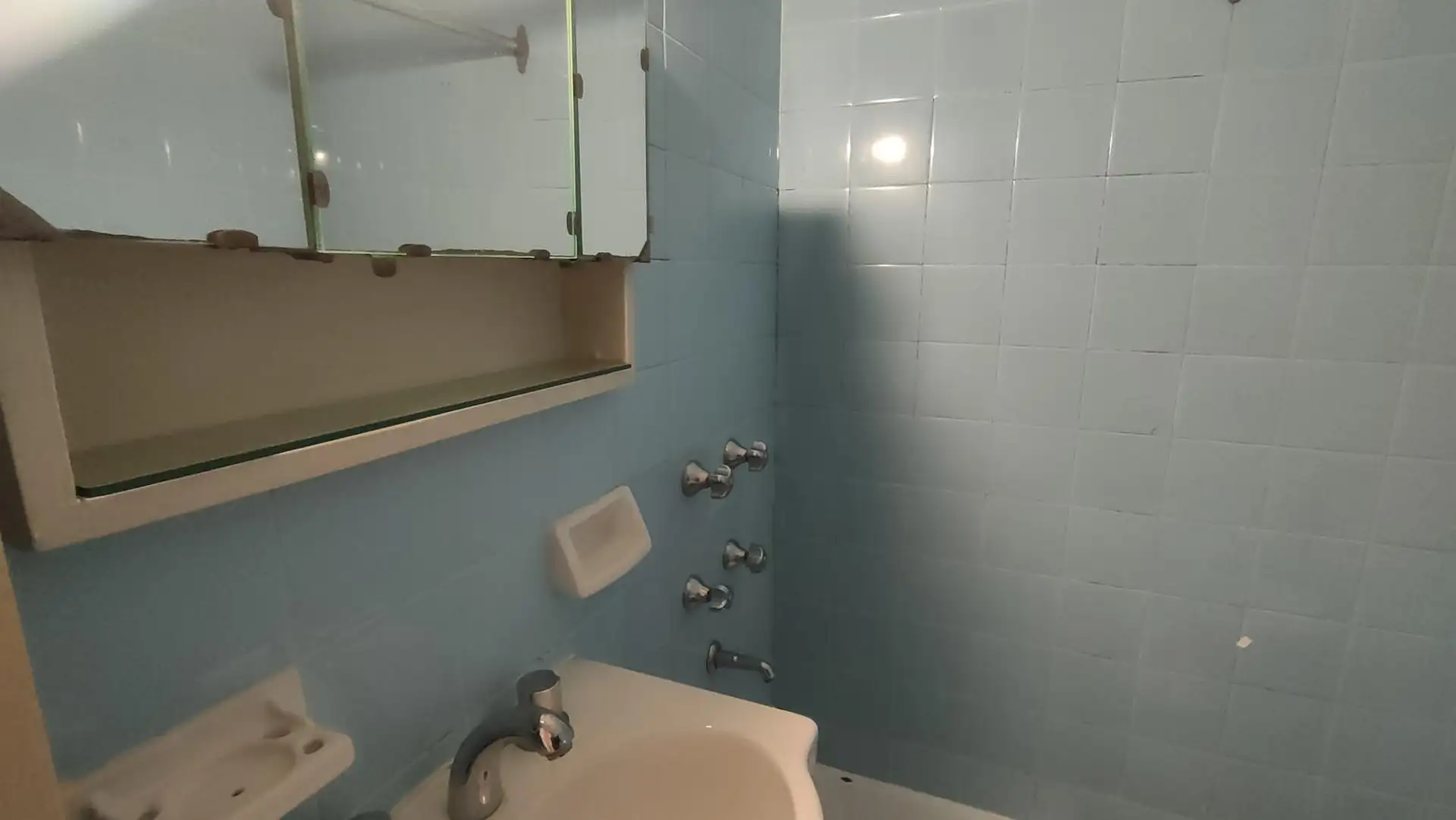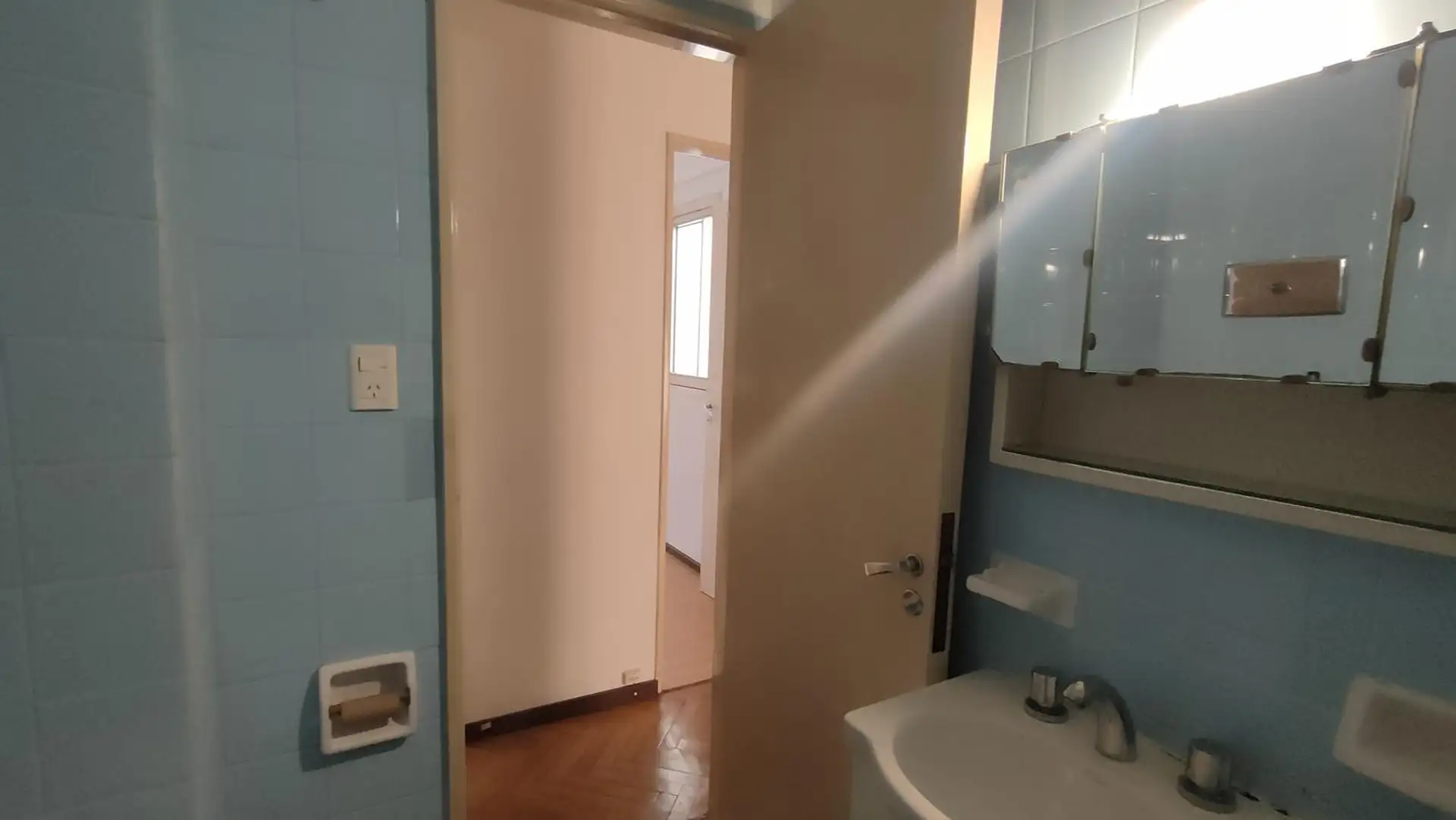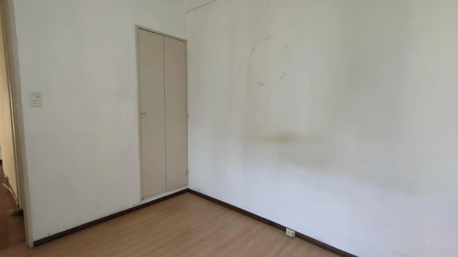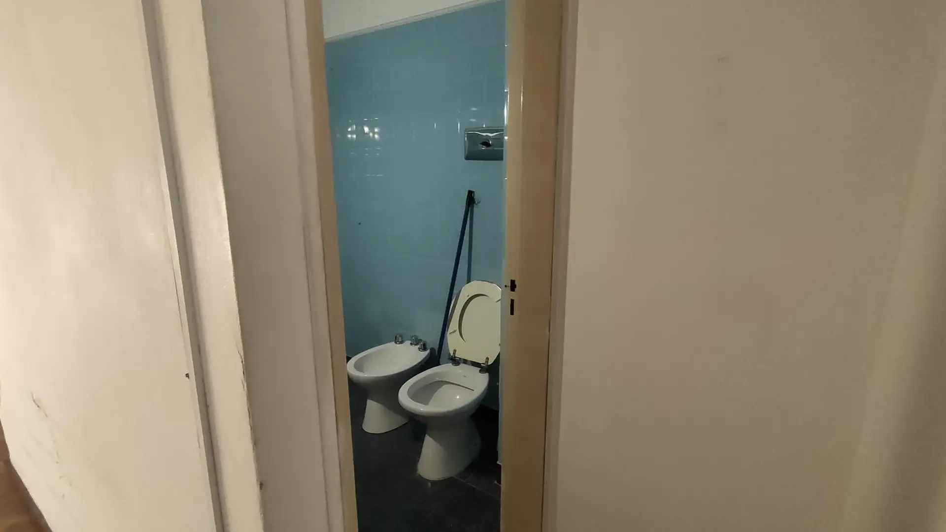 Apartamento de dois ambientes com 1 quarto, com orientação lateral para sul. A unidade tem living e sala de jantar (5,70 x 3,30), cozinha independente (3,30 x 1,60), banheiro (2,30 x 1,55) e dormitório com pequeno armário (3,30 x 2,50). Não aceita animais. Contrato de 2 anos, com reajuste trimestral pelo IPC; fiança locatícia com seguro caución e comprovação de renda. Ley 5115, Art. 1: imóvel não acessível para pessoas com mobilidade reduzida.