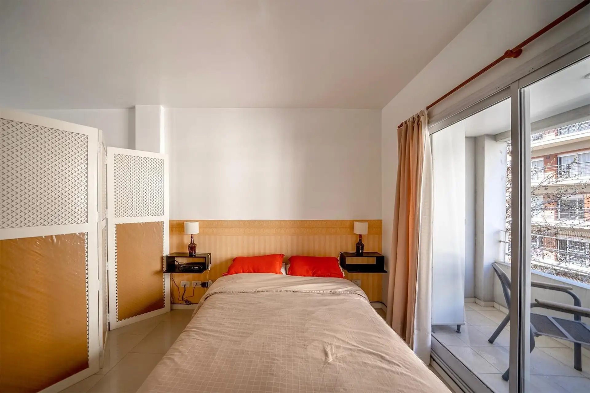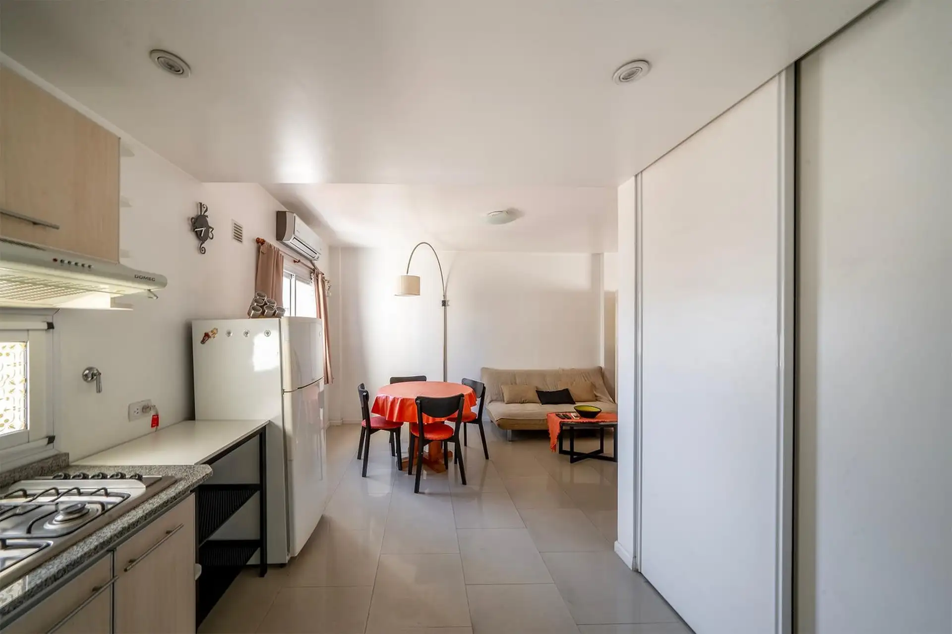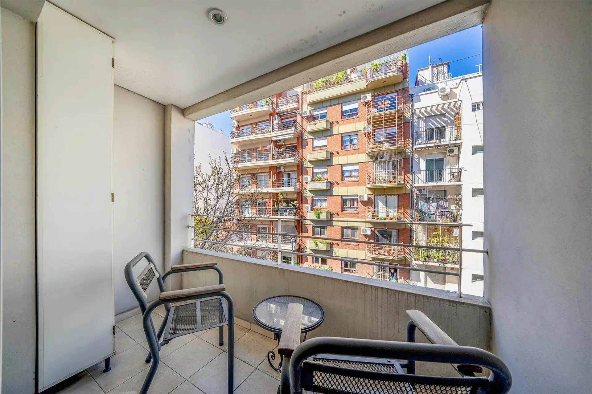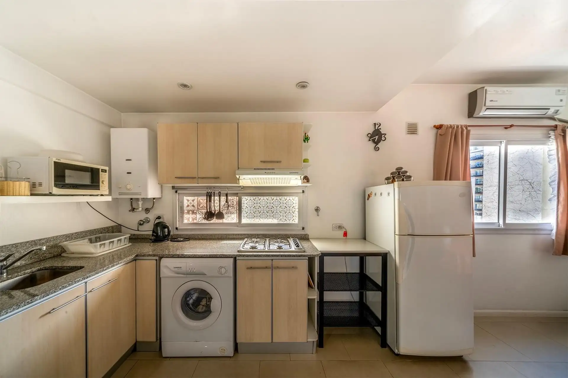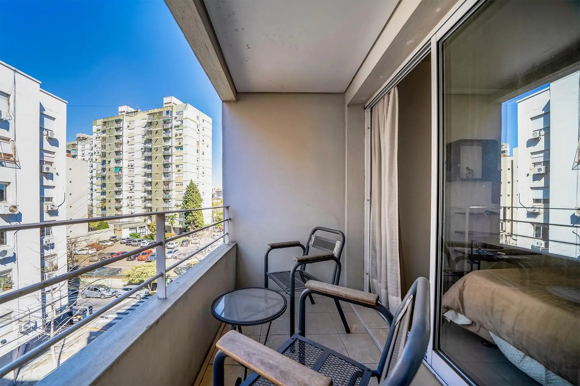 Kitnet (apartamento de um único ambiente) mobiliada para aluguel temporário em Caballito, Buenos Aires. Fica em um prédio na esquina, com varanda. Há ar-condicionado, TV LED e máquina de lavar (lavarropas). O aluguel inclui condomínio, água, ABL e internet, com localização na Rua Ramos Mejía, a 2 quadras das Avenidas Díaz Vélez e Ángel Gallardo e a meia quadra do Parque Centenario.