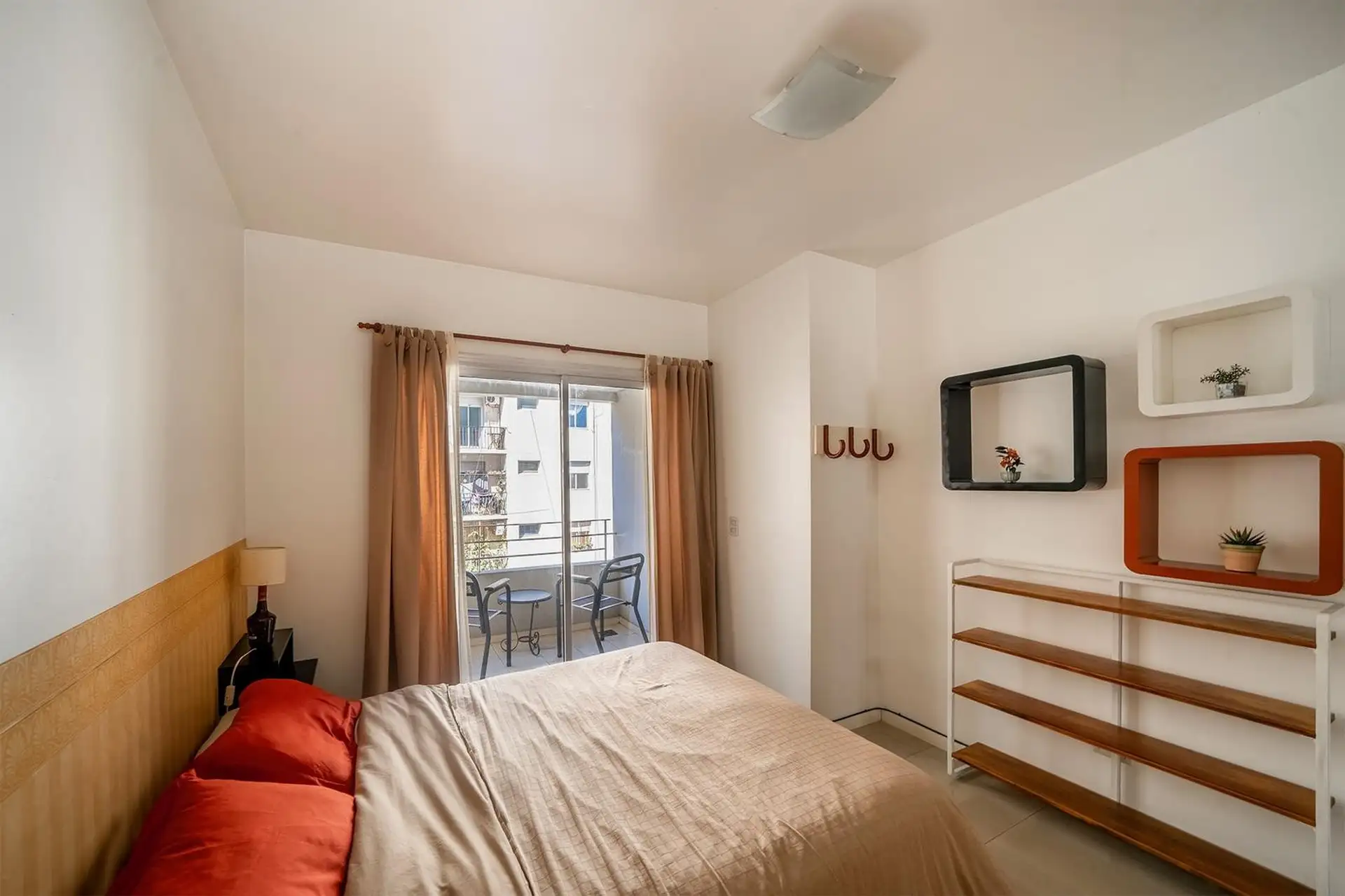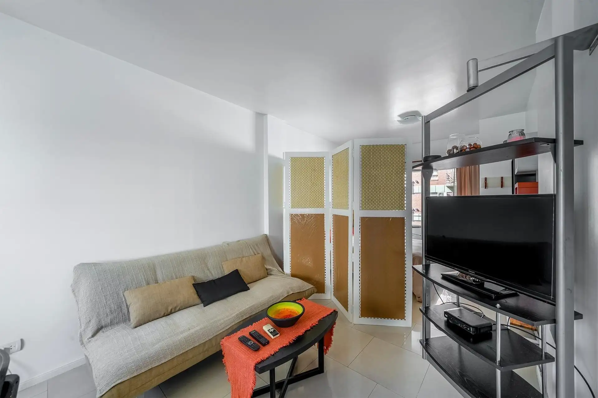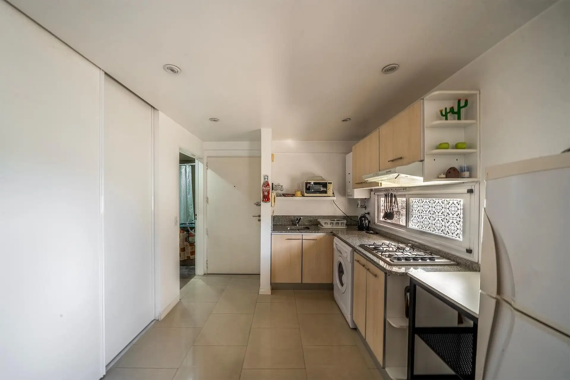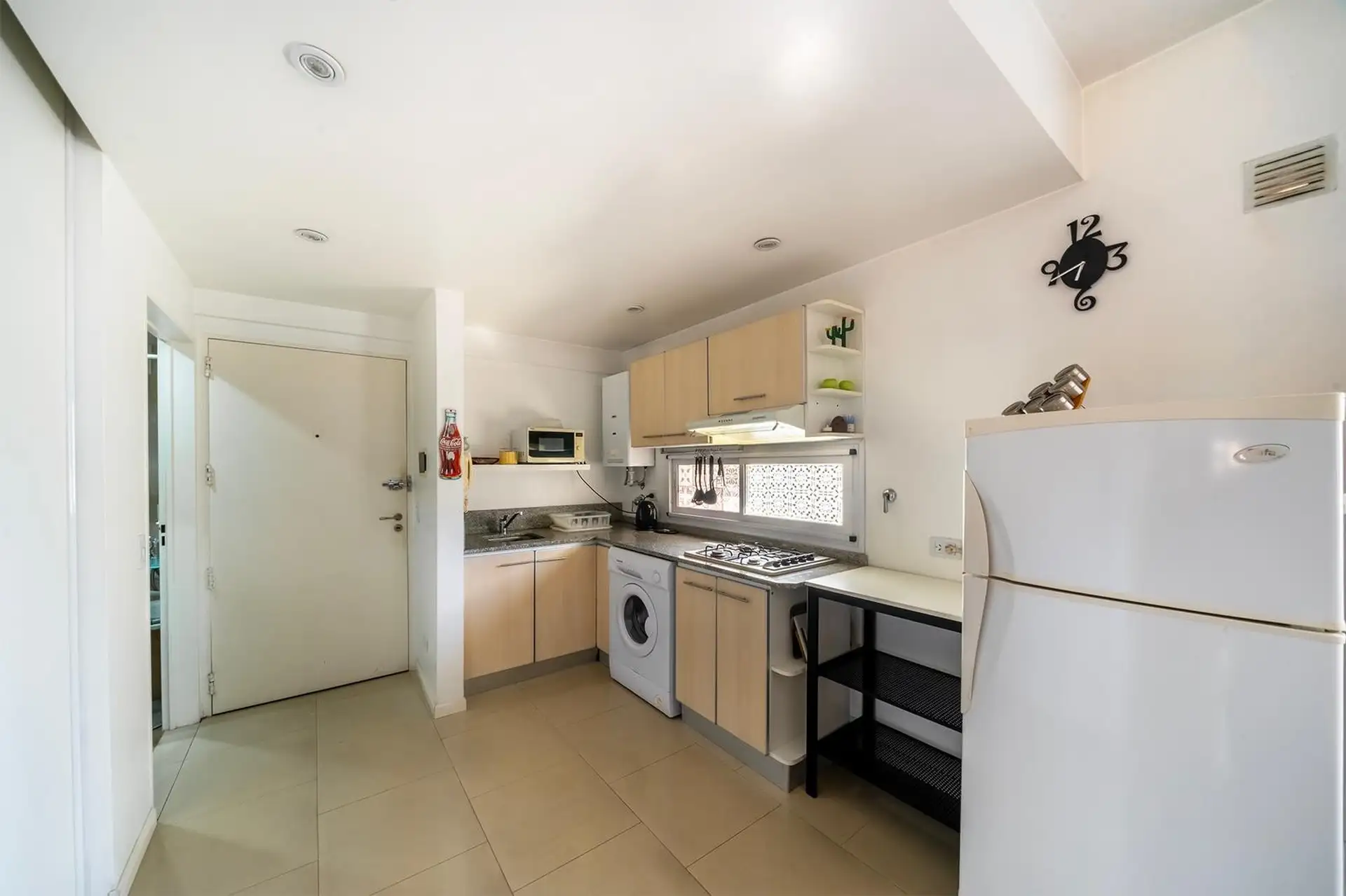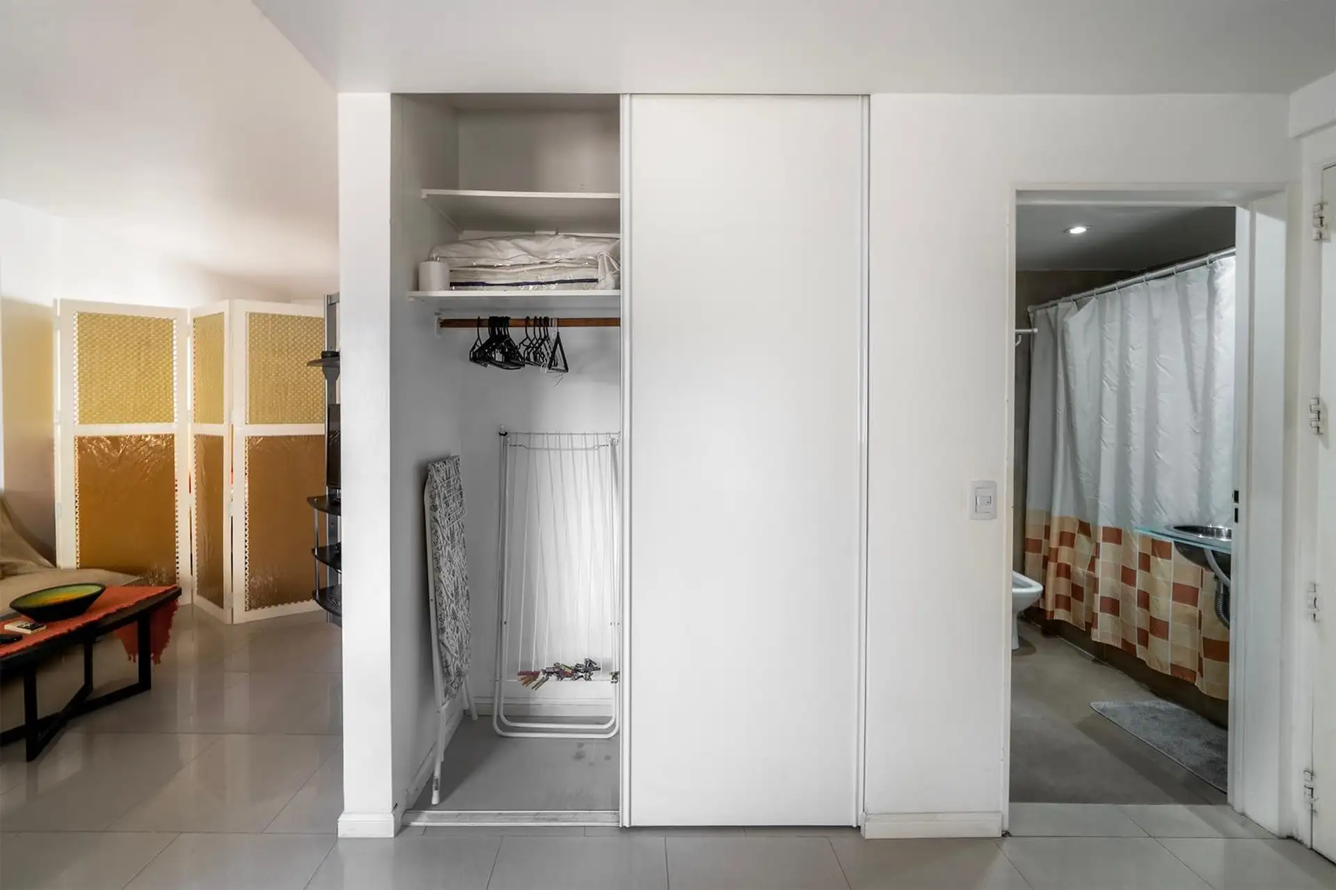 Kitnet (apartamento de um único ambiente) mobiliada para aluguel temporário em Caballito, Buenos Aires. Fica em um prédio na esquina, com varanda. Há ar-condicionado, TV LED e máquina de lavar (lavarropas). O aluguel inclui condomínio, água, ABL e internet, com localização na Rua Ramos Mejía, a 2 quadras das Avenidas Díaz Vélez e Ángel Gallardo e a meia quadra do Parque Centenario.
