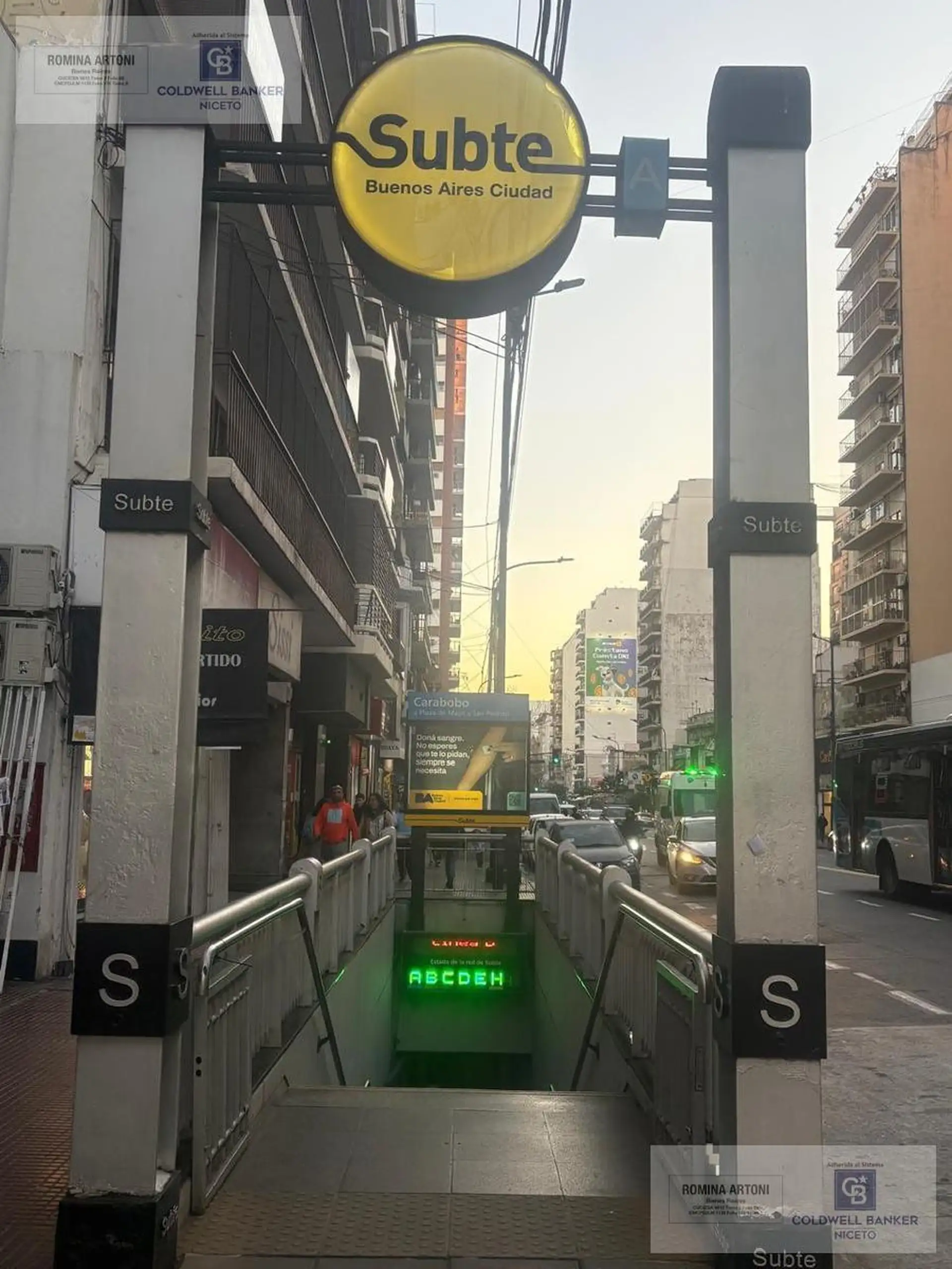 Apartamento de 2 ambientes com 1 quarto no 2º andar, em Caballito. O living, a área de jantar e a cozinha ficam integrados, com janelas voltadas para a rua. A cozinha tem fogão a gás de 4 bocas e forno, além de espaço para geladeira e lavadora. O banheiro inclui bidê e banheira. O quarto fica de fundos e tem espaço para cama de casal e armário com portas de correr. Fica a 2 quadras da estação de metrô Carabobo e a 2 quadras da Av. Pedro Goyena.