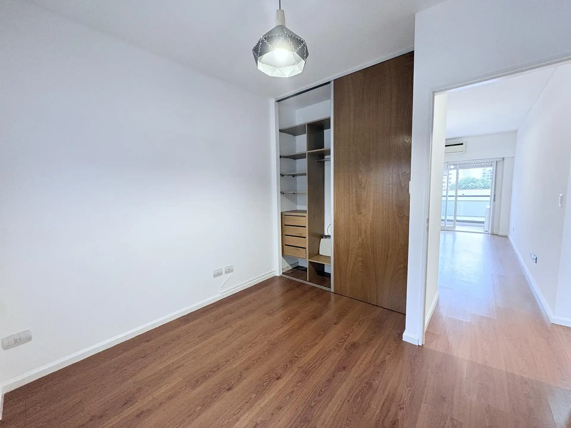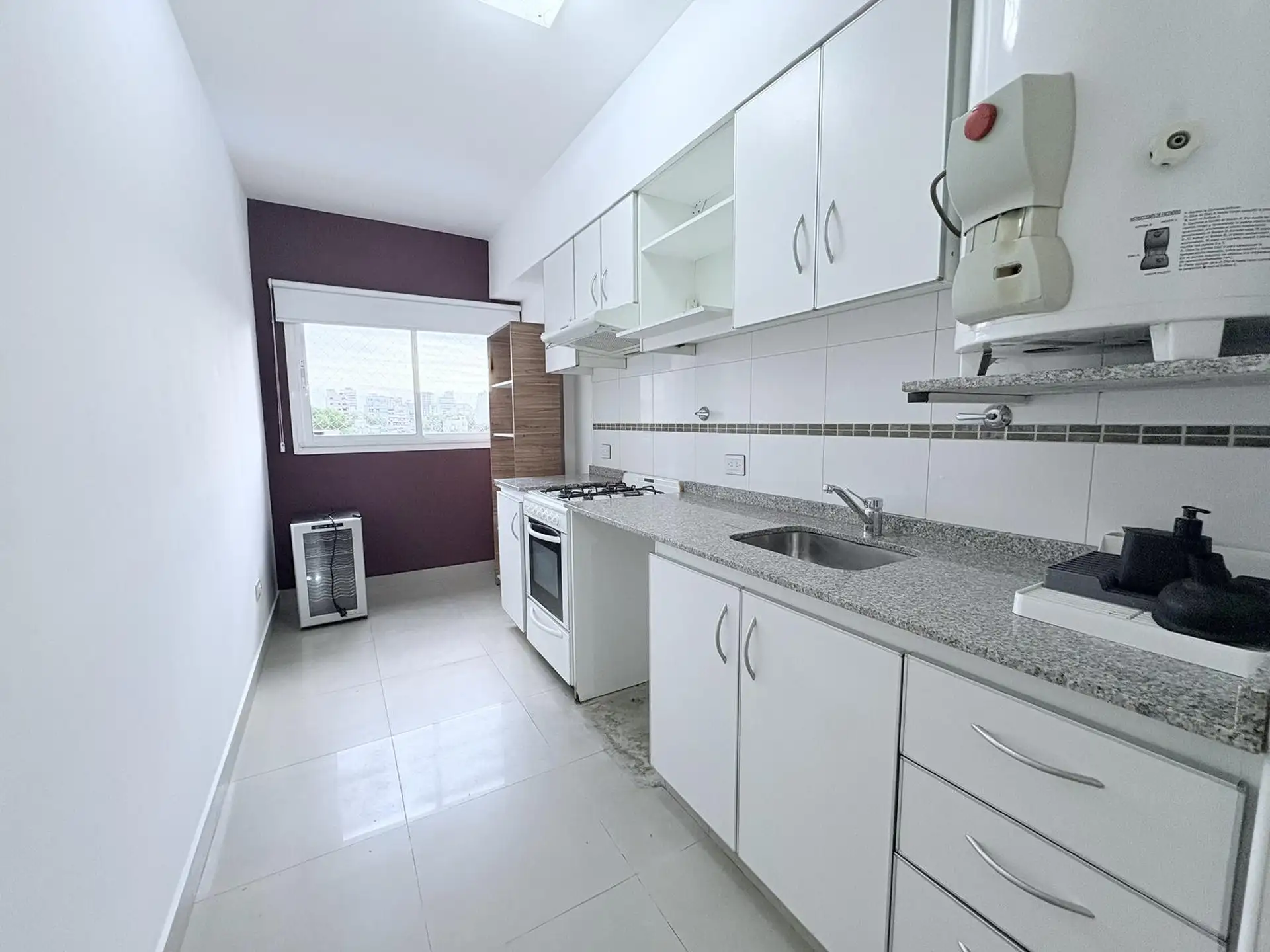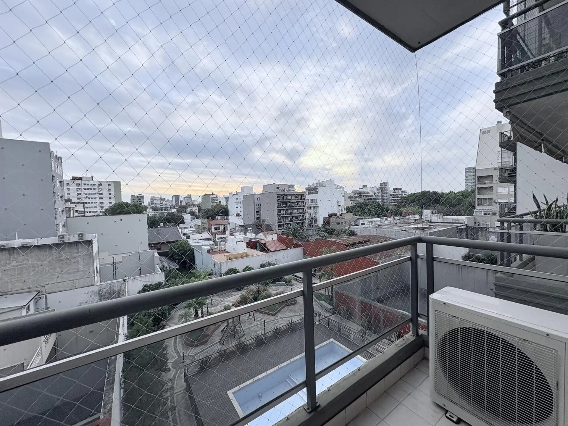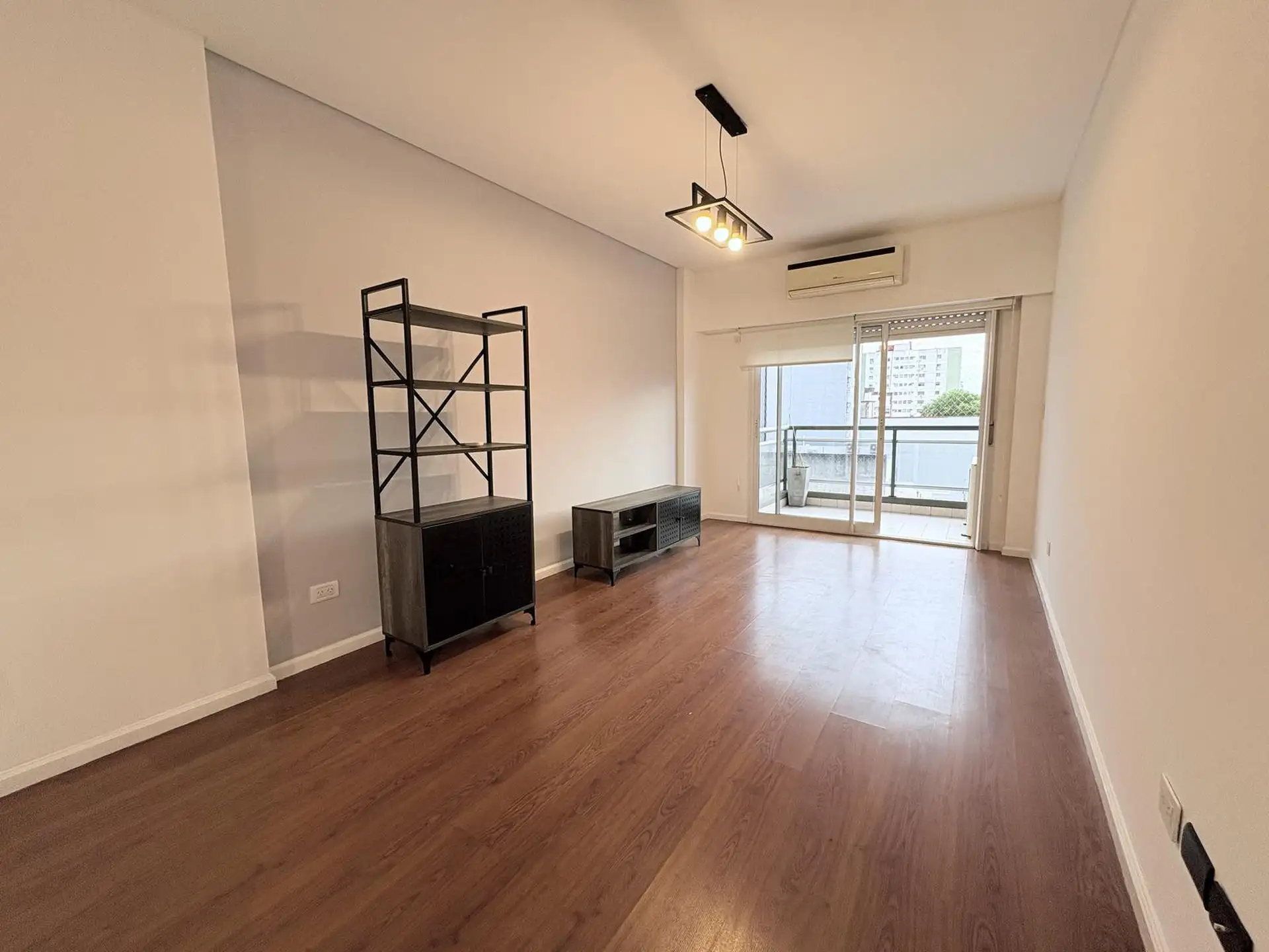 Apartamento de 2 ambientes em Caballito, com dormitório de 3x3 m e sala de jantar de 5x3 m com acesso a varanda com vista para o miolo de quadra. Cozinha separada equipada com fogão a gás com spar e aquecedor a gás, com espaço para máquina de lavar roupa. Foi recém-pintado, tem pisos flutuantes, ar-condicionado nos dois ambientes e janelas com persianas e black-out. Inclui vaga de garagem coberta e o prédio oferece salão de festas, piscina, área de churrasco, setor infantil e vigilância por tóte