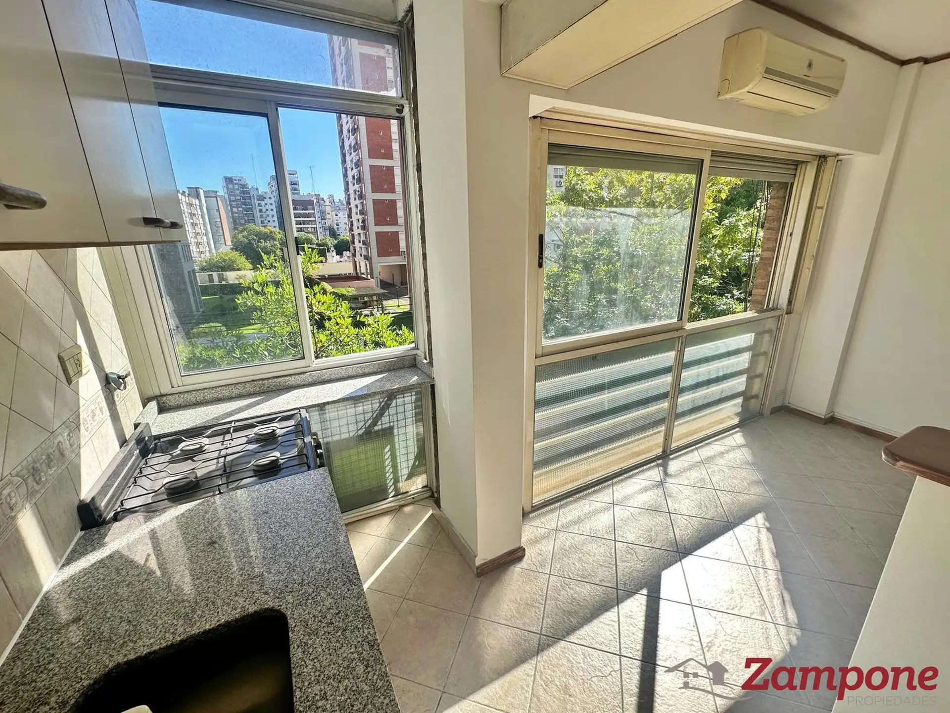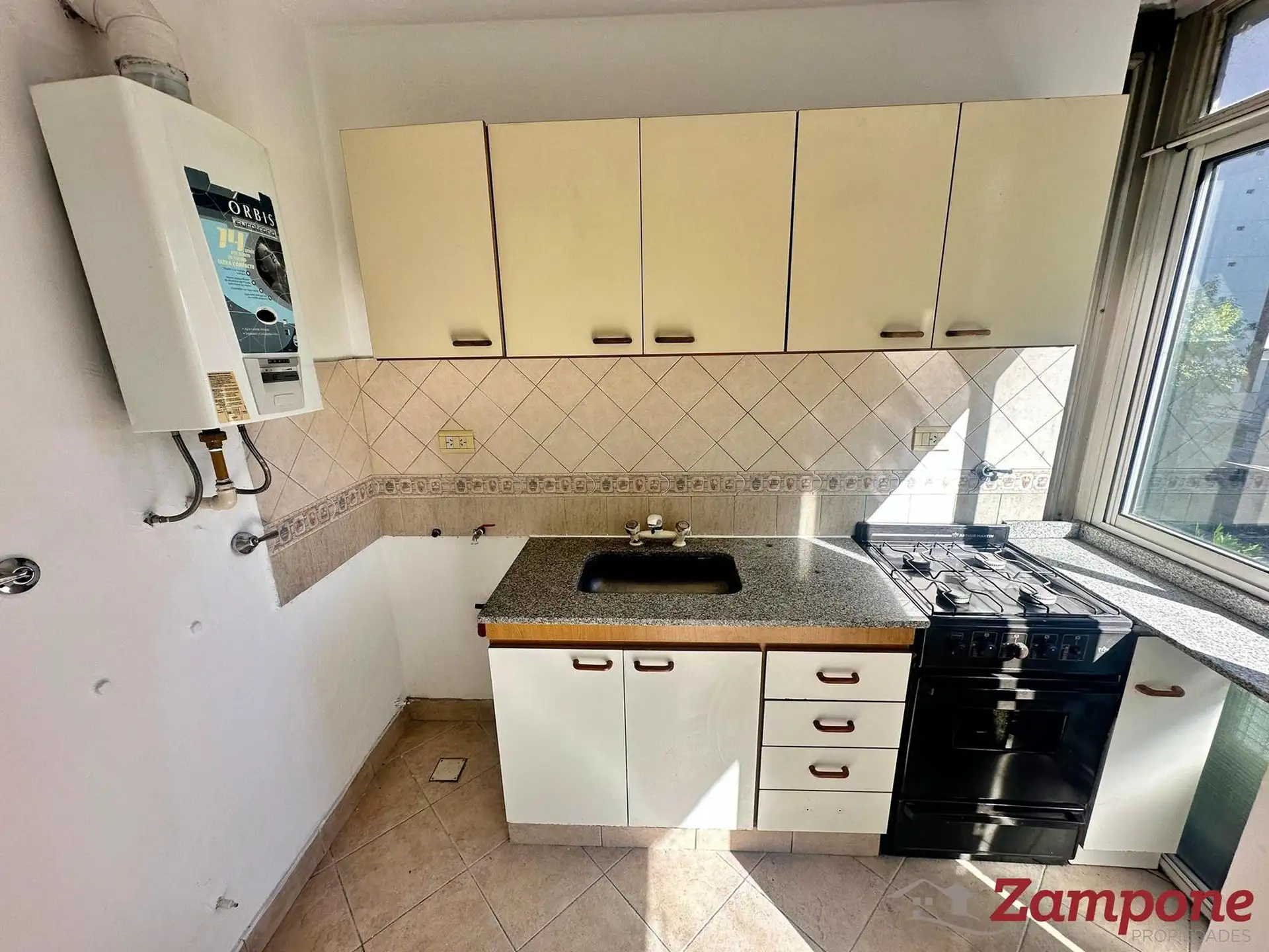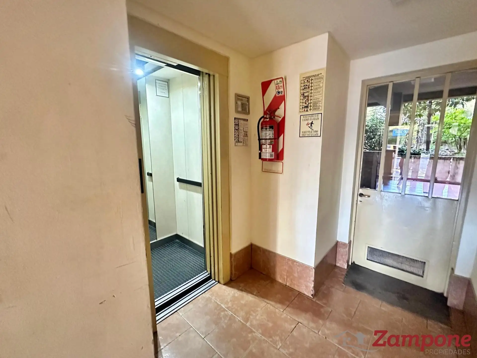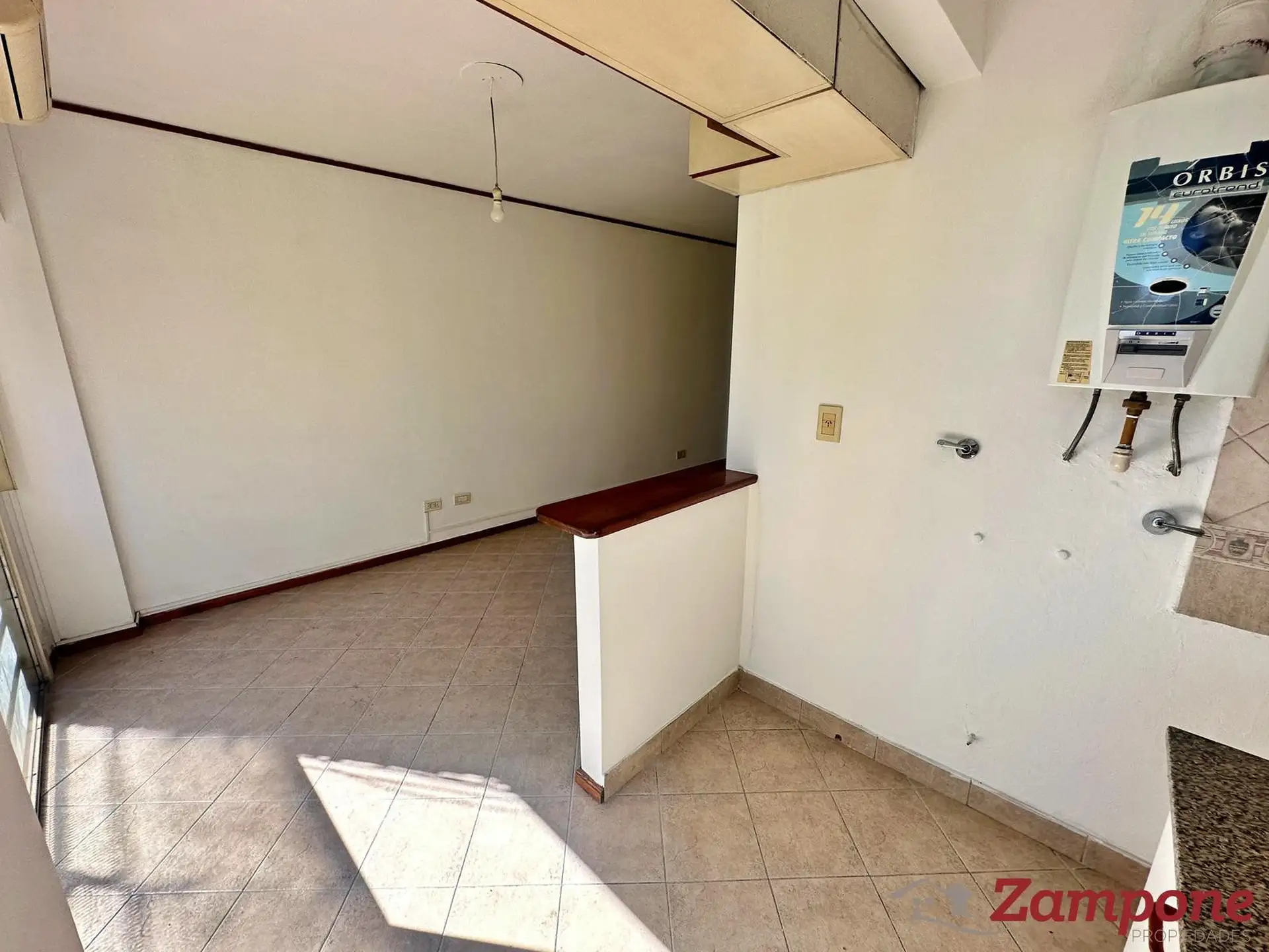 Apartamento em Caballito com 1 quarto, entrada pela sala de estar e jantar. Fica no piso alto, de frente para a rua, com varanda francesa e janelas com vista aberta. Inclui ar-condicionado frio, painel aquecedor elétrico, cozinha integrada com fogão, calefón e janela, além de conexão para lavadora de roupas e banheiro completo. O prédio tem elevador, terraço de uso comum e nove andares com três unidades por piso. Condomínio de $ 144.400 por mês (março); ABL de $ 11.500 e AYSA de $ 22.600.