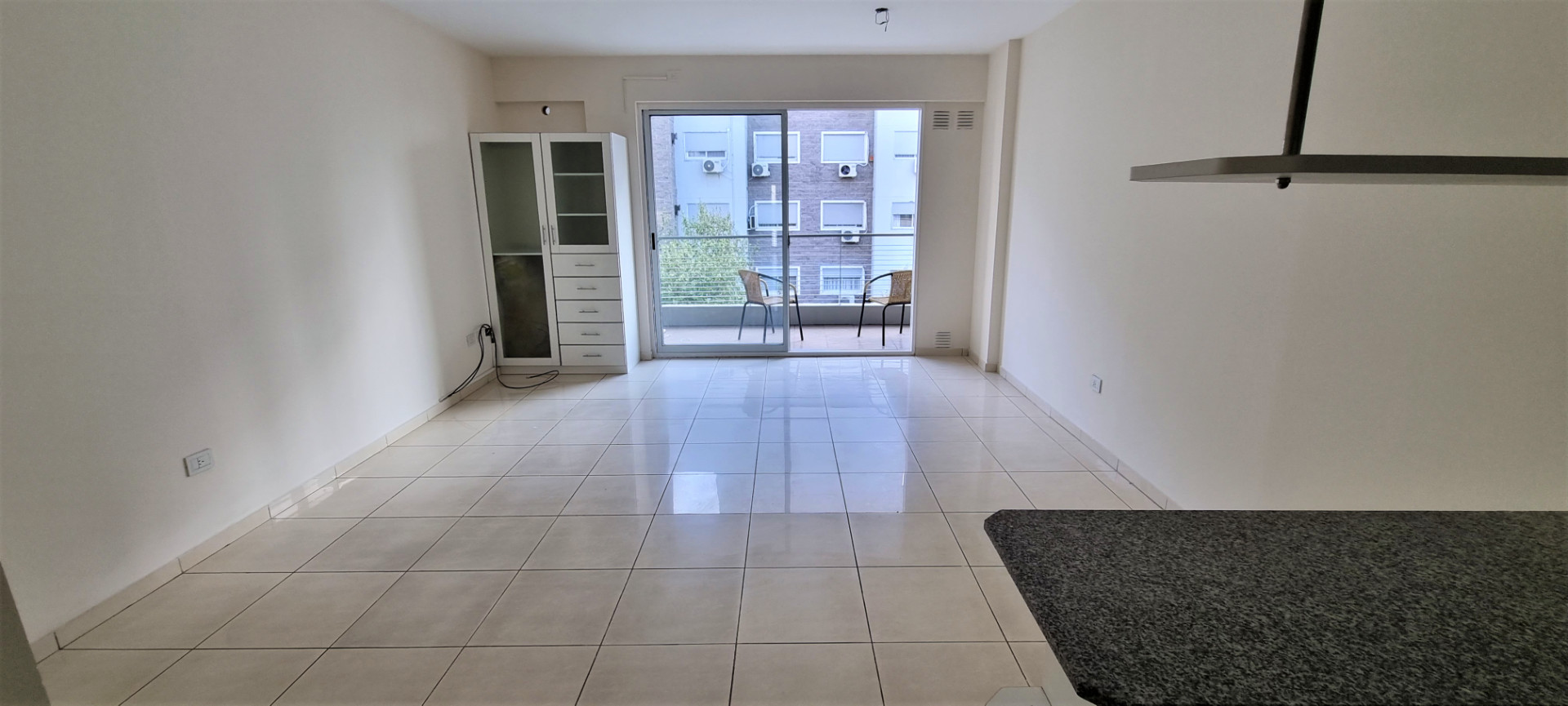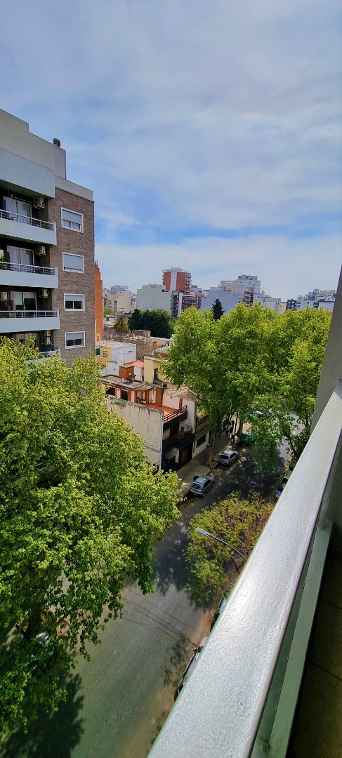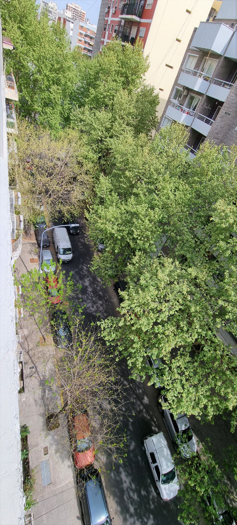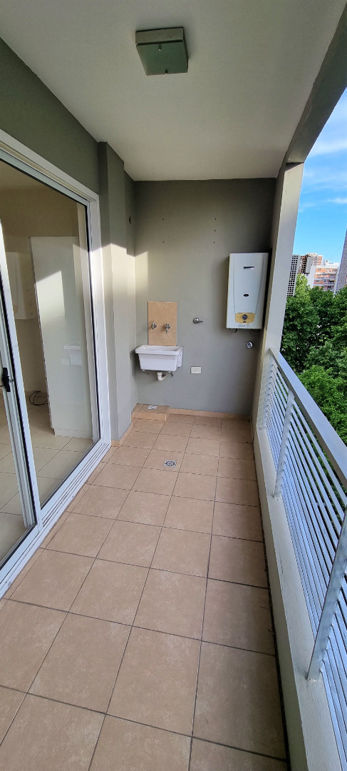 Apartamento de 2 ambientes com 51 m² no 7º andar, de frente para a rua, em semipiso. Tem varanda com área aterrazada e área de lavanderia. Inclui cozinha integrada ao estar-jantar, com armários planejados, cortina de enrolar no dormitório e instalação a gás, com serviços individuais e janelas com ventilação cruzada (oeste e leste). O prédio tem elevador automático com frequência variável e cabina espelhada; a vaga de garagem é opcional. Fica a metros do Subte "A", entre as estações Carabobo e Pu