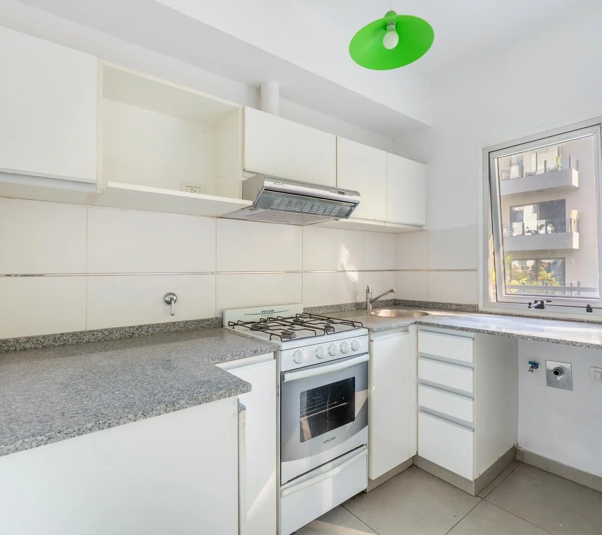 Kitnet em Caballito, de frente para a rua, com varanda e vista aberta. Fica no terceiro andar, com ventilação cruzada. Possui ar-condicionado? não está informado. A unidade está em estado praticamente novo, em prédio moderno com poucos anos de idade, de 8 andares e 4 unidades por andar. O edifício tem elevador, zeladora e terraço comum acessível. Para locação: 1 mês de adiantamento e 1 mês de depósito em garantia. O condomínio e os serviços ficam a cargo do inquilino (Metrogas, Edesur e ABL), co