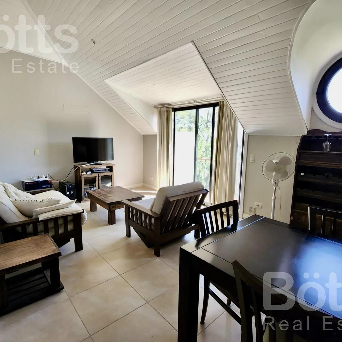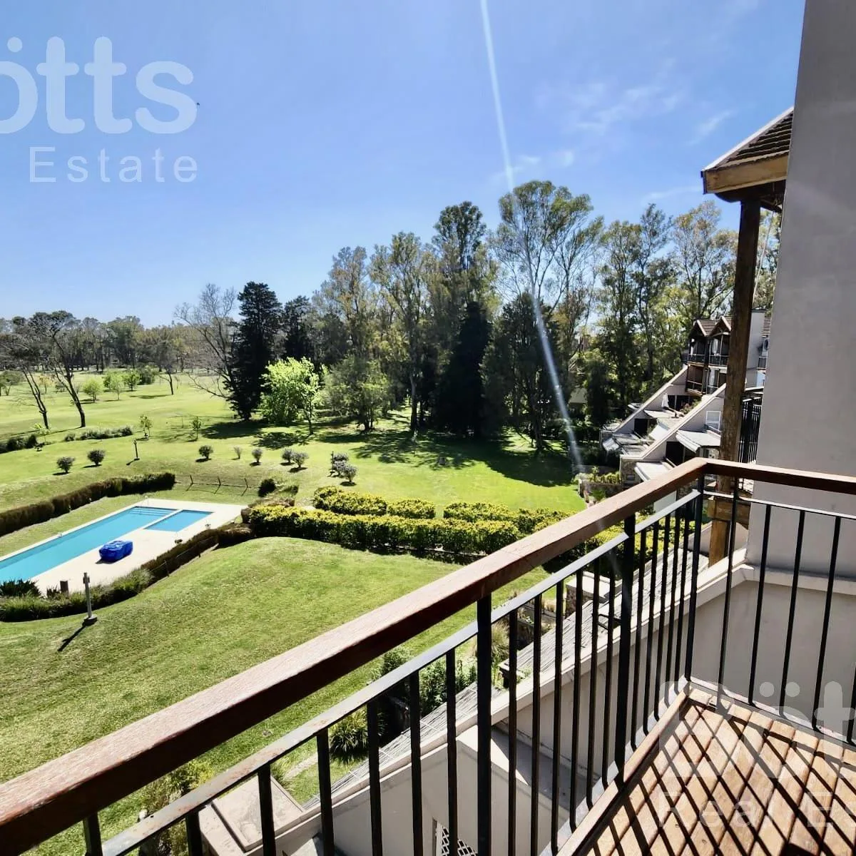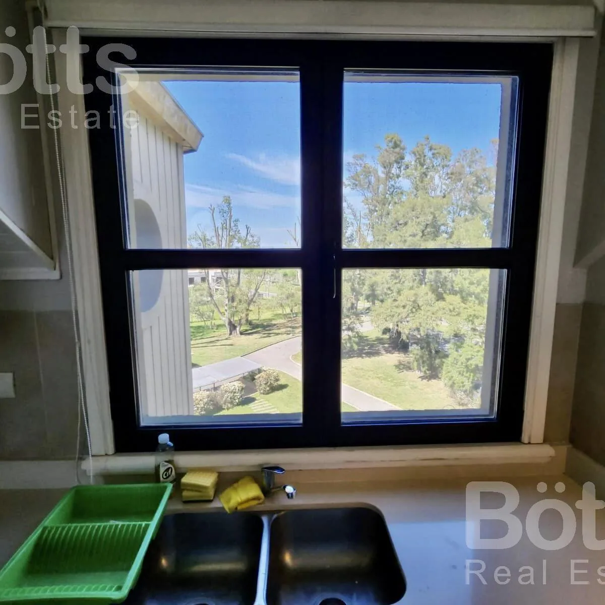 Apartamento mobiliado de 2 ambientes no 4º andar, com vista para a piscina e para o Golf. Tem 1 dormitório em suíte com espaço de armazenamento, cozinha semi-integrada à área de estar e jantar e varanda tipo terraço. Há aquecimento por piso radiante individual, além de vaga de garagem e depósito. O condomínio informa lavanderia e acesso às áreas do complexo La Reserva, incluindo campo de Golf, restaurant, quadras de tênis e clubhouse. Condomínio: $210.867; BBT (cabo) $44.000; Eden (luz) $44.789;