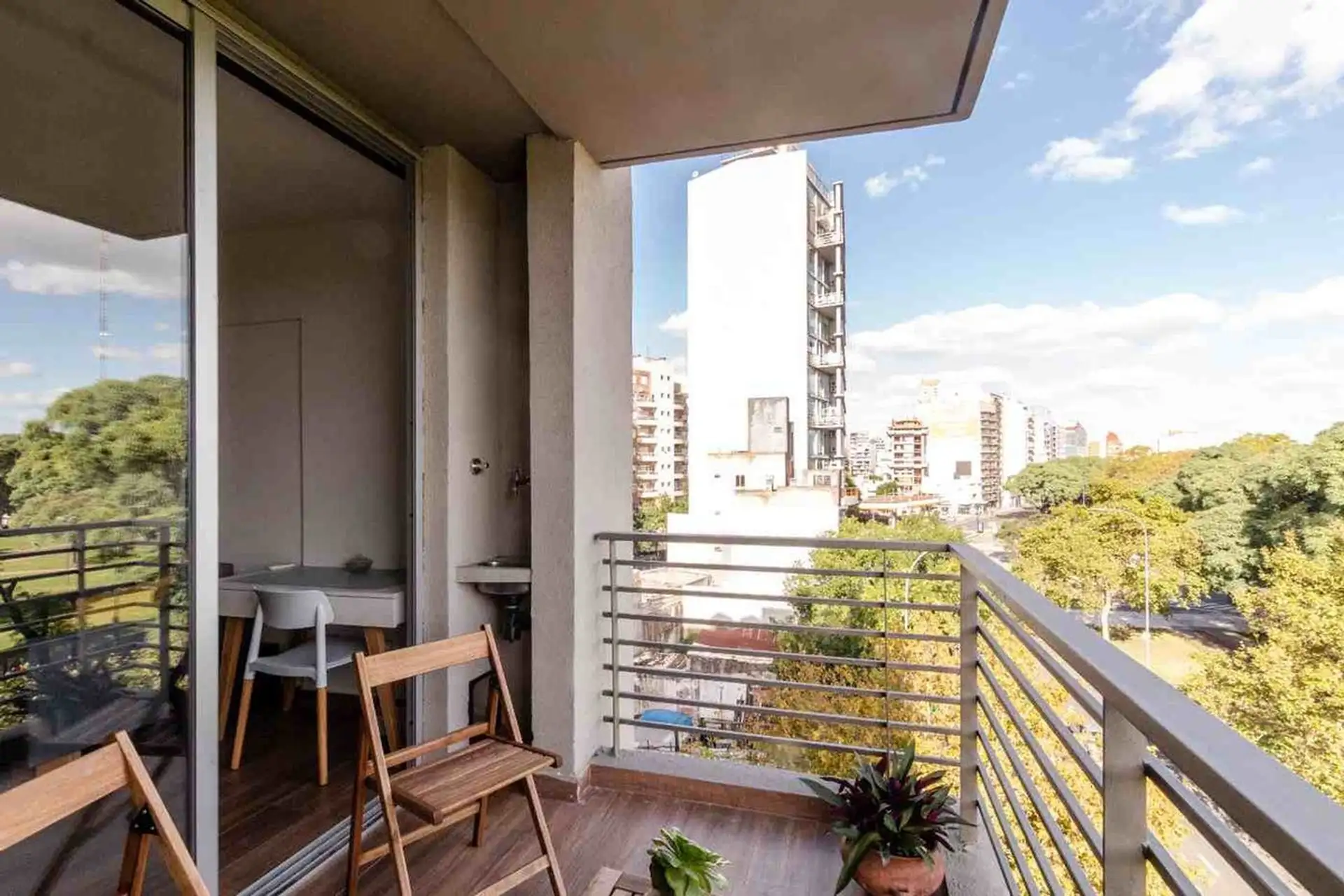Apartamento de 2 ambientes com 56 m² totais no 5º andar, de frente para a rua, com varanda semienterrada e churrasqueira individual. Não mobiliado. Living com cozinha elétrica em conceito aberto, com saída para a varanda; 1 banheiro completo com banheira e 1 quarto voltado para os fundos. Aquecimento por piso radiante elétrico com controle individual por ambiente e água quente central. No prédio há equipe de limpeza e há vagas de garagem disponíveis para aluguel (a consultar). Fica em Chacarita,