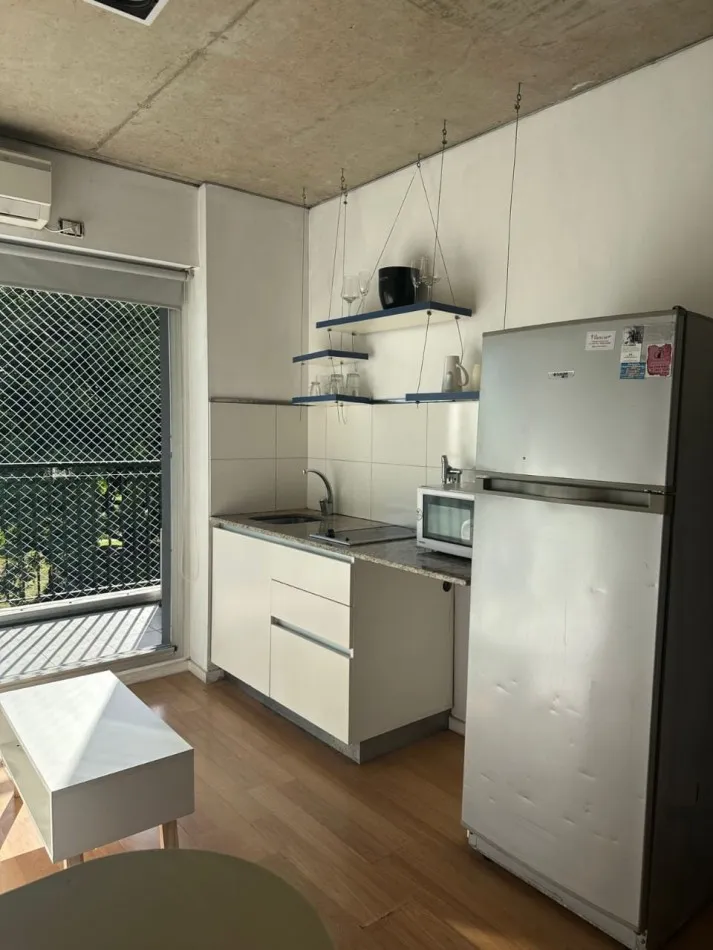 Kitnet mobiliada para aluguel em Chacarita, 35 m², no 4º andar, de frente para a rua, com vista aberta para o Parque Los Andes. Cozinha equipada com cooktop elétrico, forno elétrico, micro-ondas e geladeira com freezer; banheiro completo. O prédio oferece academia no 20º andar, piscina e parque, salão de usos múltiplos para eventos de até 100 pessoas, coworking, sala de cinema, laundry, bicicletário e segurança 24 horas com câmeras. Condomínio de 220.000 ARS inclui ABL e água; aluguel de 700.000