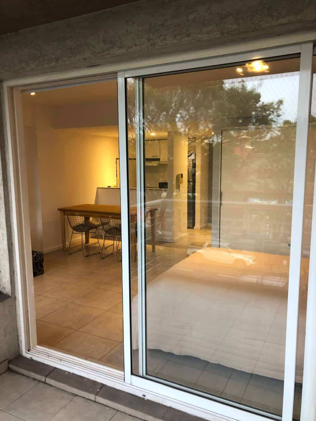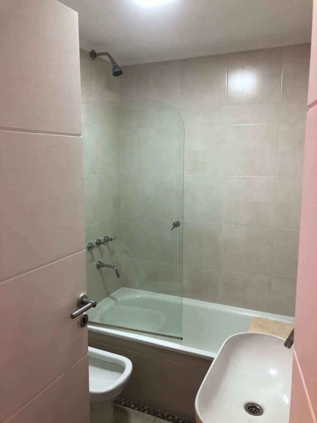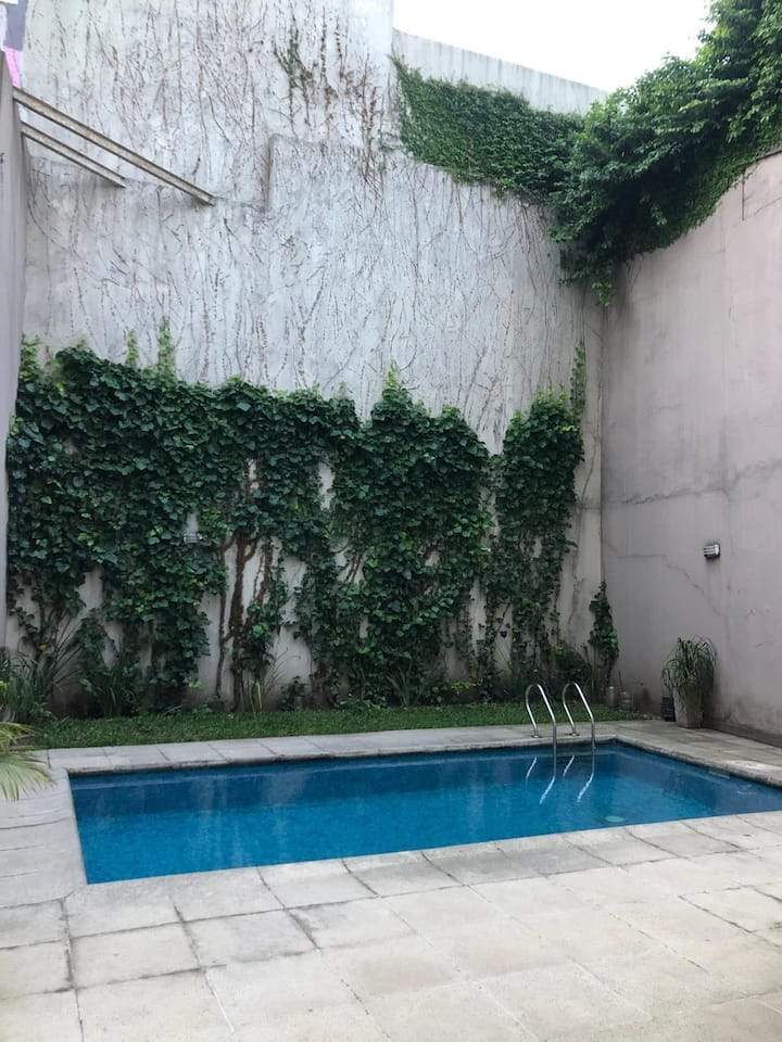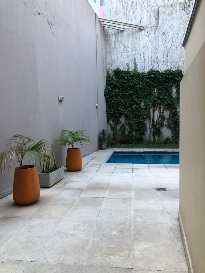 Apartamento tipo kitnet em Chacarita. O imóvel fica a 600 metros da Estação Ferroviária Federico Lacroze e a 2,1 km da Movistar Arena. Tem cama de casal e sofá-cama com carrinho e duas camas (colchões), além de ar-condicionado frio/quente. A cozinha inclui geladeira, forno e micro-ondas, além de chaleira elétrica e máquina de lavar.