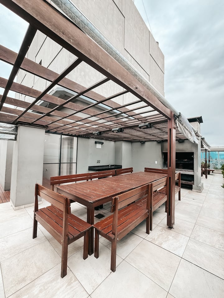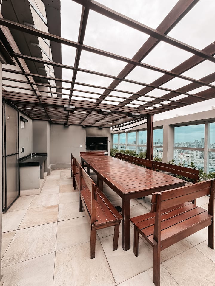 Apartamento em Chacarita com 1 quarto. O prédio tem piscina e academia.