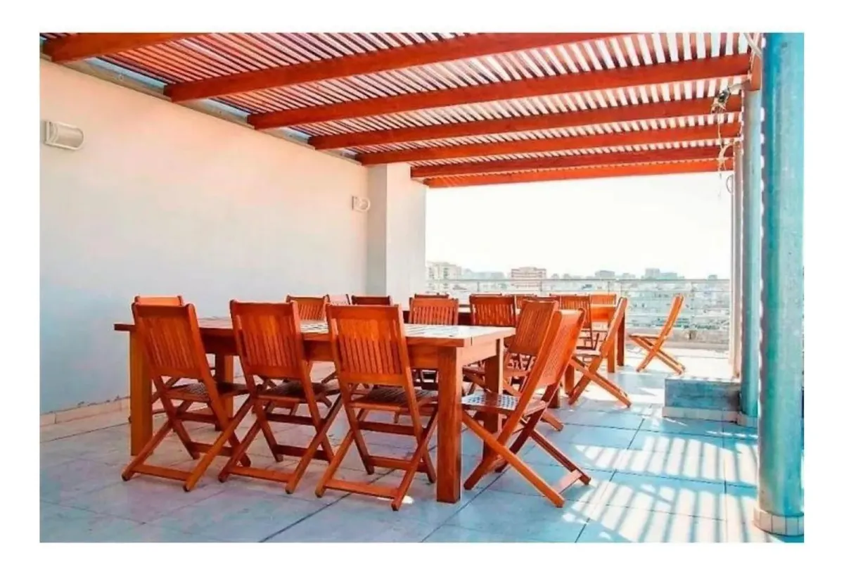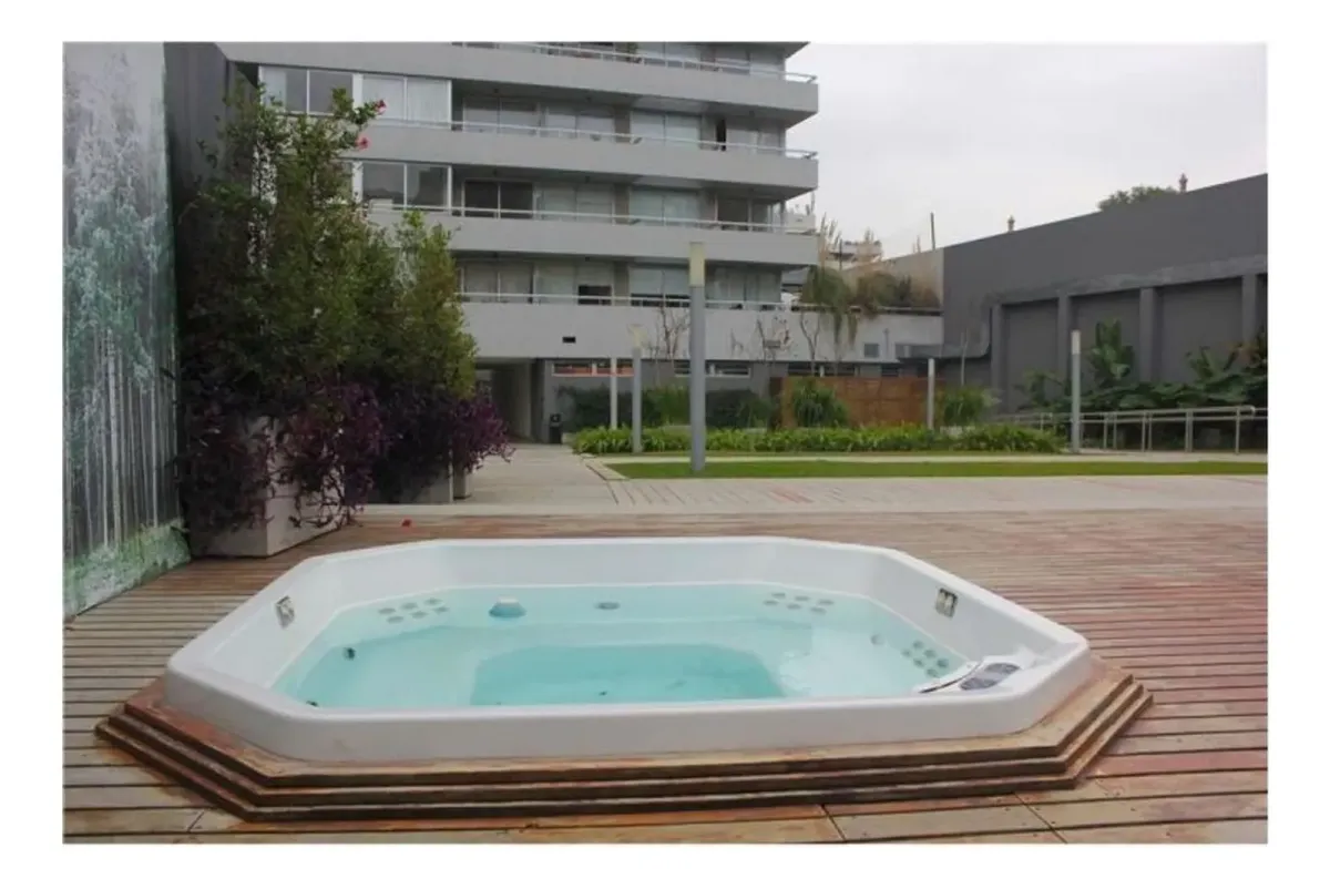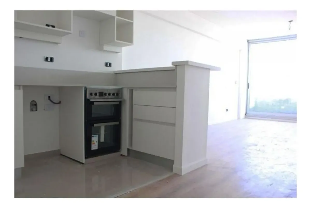 Kitnet de 50 m² totais para alugar em Chacarita, em um complexo de quatro edifícios denominado La Musa Torre White Stars, com entrada pela Av. Córdoba 6267. O apartamento tem ambiente com janela e acesso a varanda de frente para a rua, cozinha semintegrada com cooktop elétrico vitrocerâmico e espaço para lavadora ou lavadora de louças, e banheiro completo. Possui piso laminado tipo madeira e split frio/calor. O complexo inclui microcine, dois ginásios, pilates, spa, salão de festas com tratament
